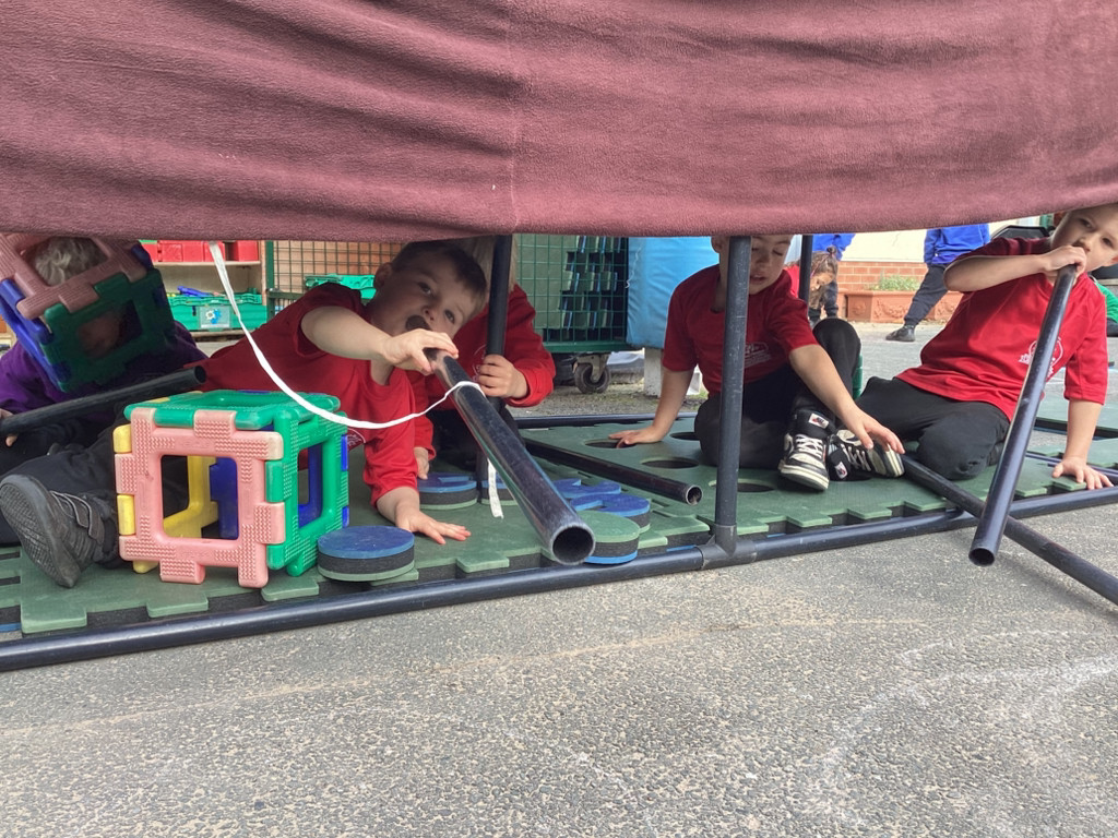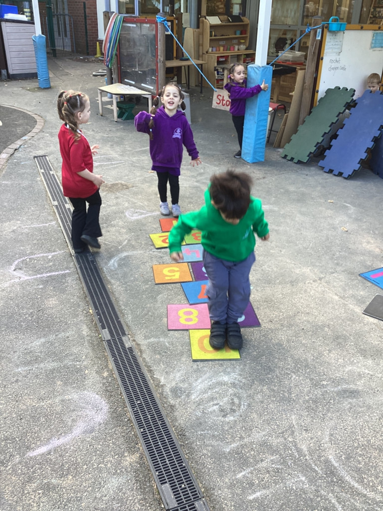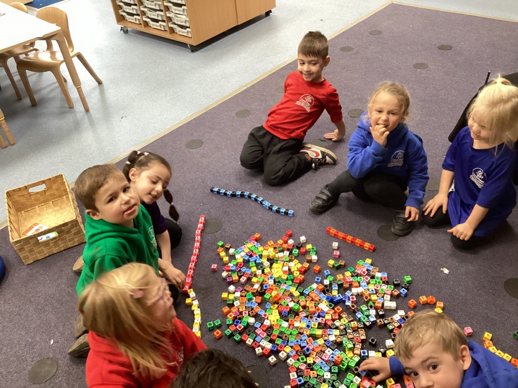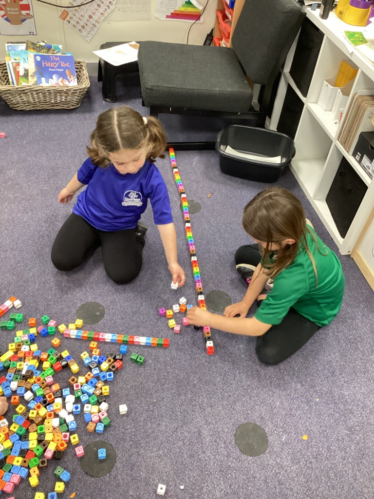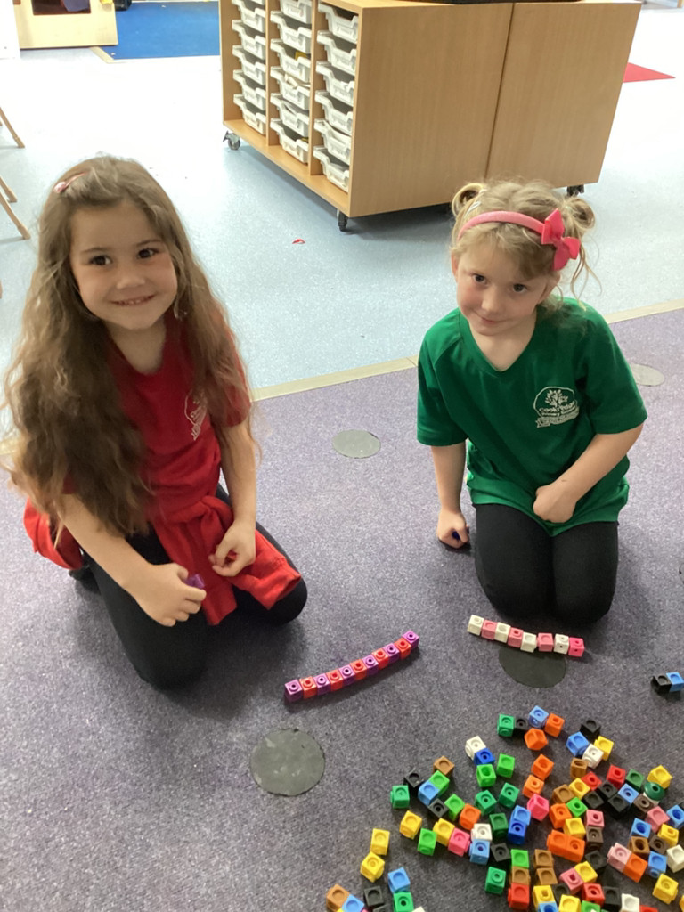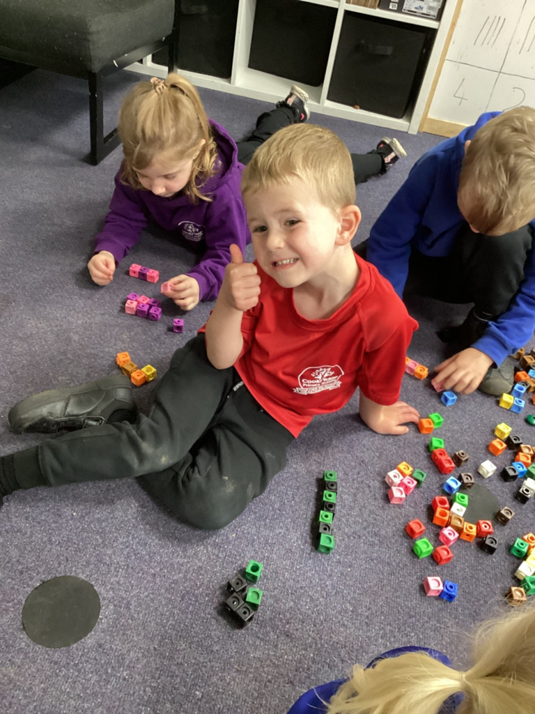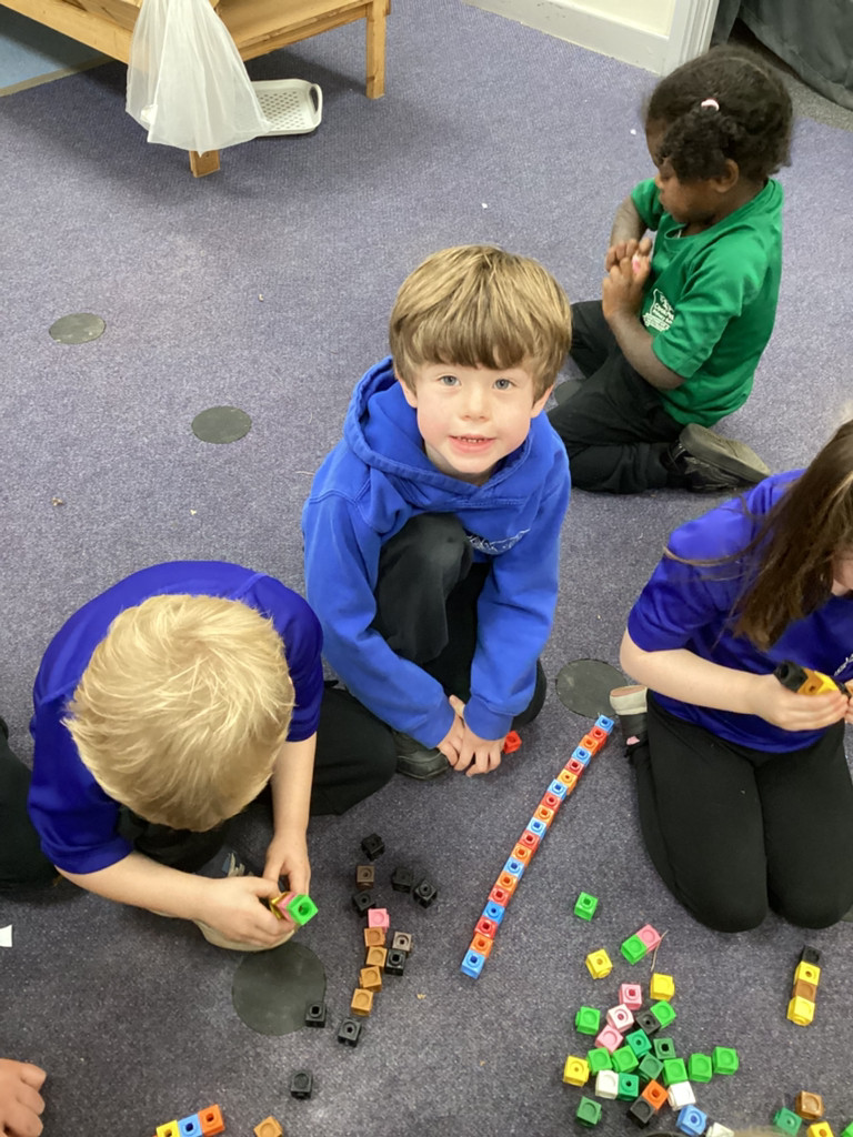 Our Maths sessions have been a lot of fun as we were out investigating different repeating patterns. The children have loved exploring the concept of patterns with physical resources such as beads and cubes as well as spotting patterns in stories and representing patterns with movement and music. We acted out the story of ‘We’re Going On A Bear Hunt’ and spotted lots of repeated AB patterns (swishy, swoshy, swishy, swoshy) which we had a lot of fun performing around the playground.