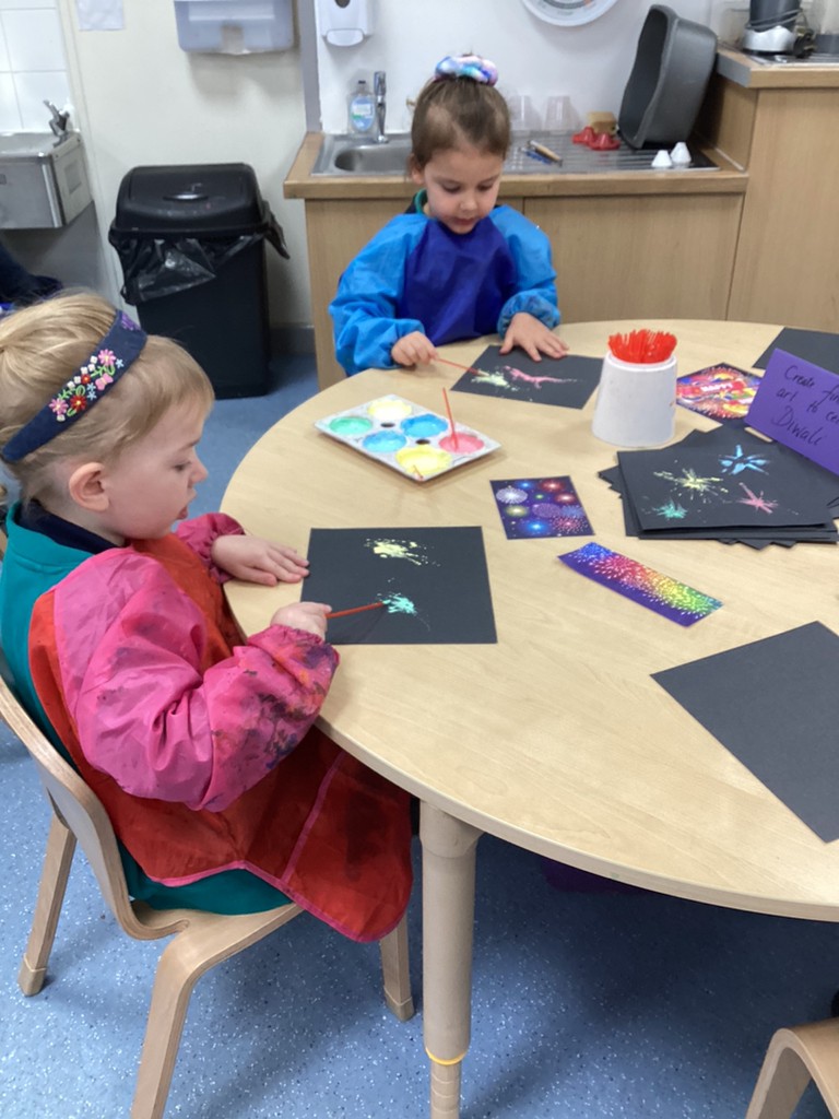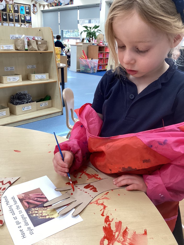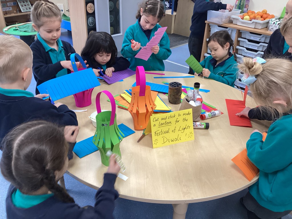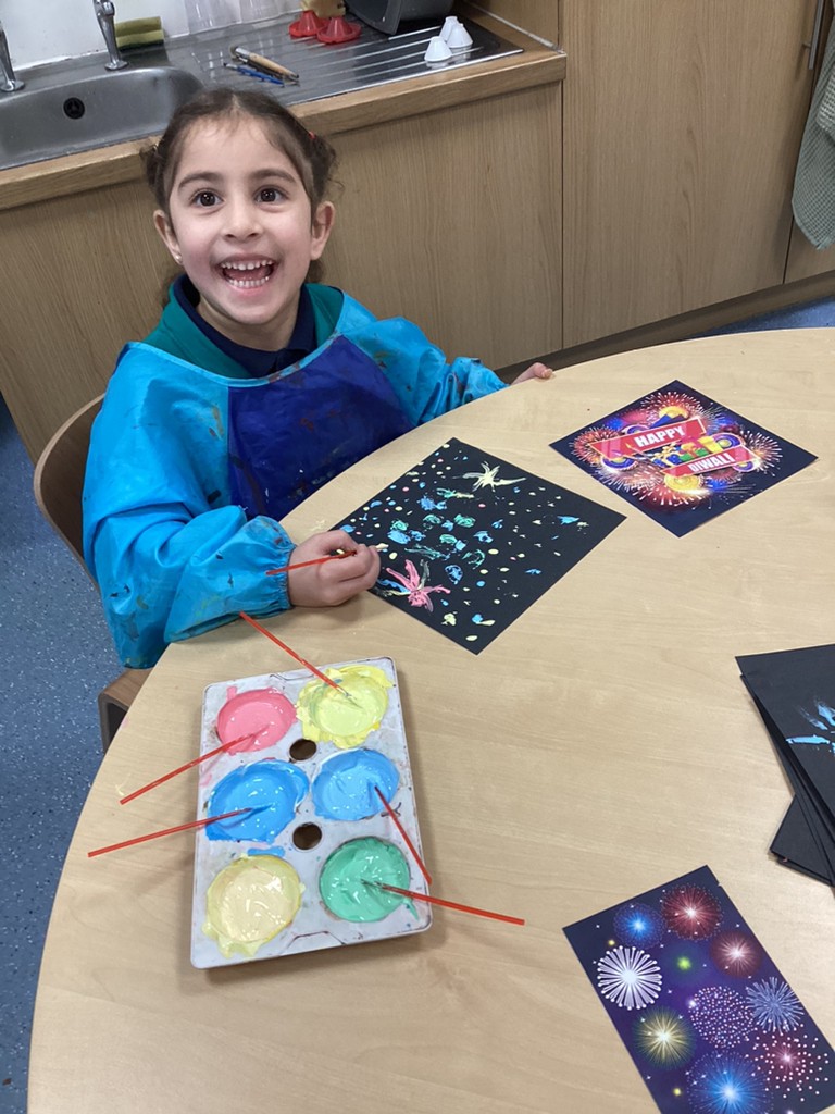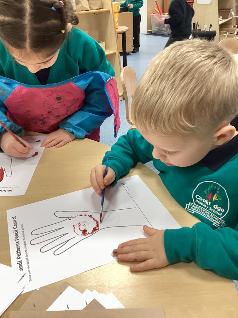 This week has also seen us learning a bit about the festival of Diwali (which this year is being celebrated at the weekend on November 12th). We have learned how Hindus celebrate this ‘festival of lights’ with candles and lanterns in the home so made our own lanterns to bring home. Some children also chose to have a go at mehndi hand art patterns (on paper at least!) and by using natural materials such as leaves, petals and seeds to make the rangoli patterns that are traditionally used to decorate and bring good fortune of homes that celebrate Diwali. Perhaps unsurprisingly, the most exciting part of our Diwali celebrations was the opportunity to help make and eat traditional Indian sweets that are often shared at this special time of year in the Hindu faith.