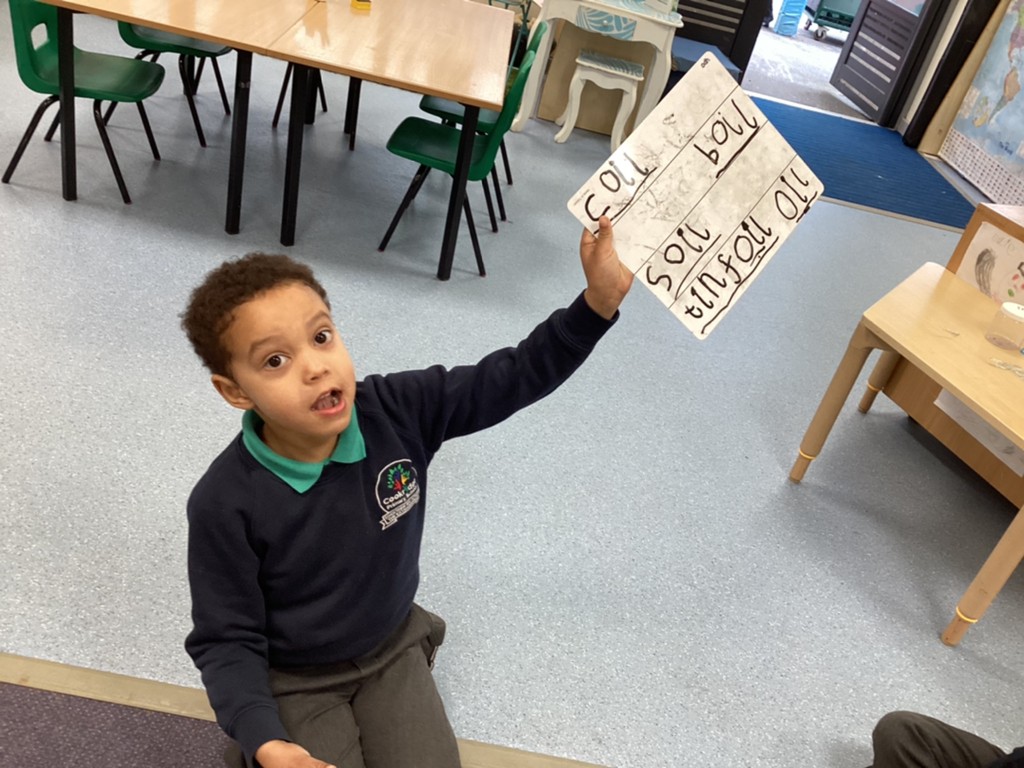 Phonics has seen us learning and applying the phase 3 phonemes ‘oi’ ‘ow’ and ‘ear’. Children have written some fantastic sentences using these phonemes and played games to practice reading words containing these new sounds.
