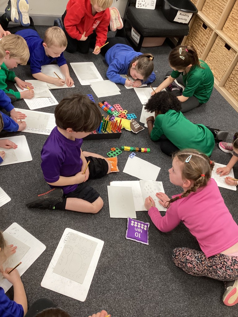 In our Maths sessions we’ve been investigating the numbers 9 and 10. The children have explored different ways to represent and compose these numbers as well as practise of careful counting strategies to count these larger numbers.