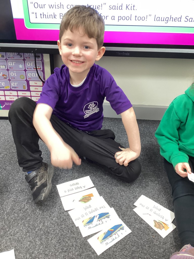 Phonics sessions this week have introduced the ‘oa’ (boat) ‘oo’ (moon) and ‘oo’ (book) phonemes. The children have enjoyed getting chance to practise hearing, reading and writing with these sounds.