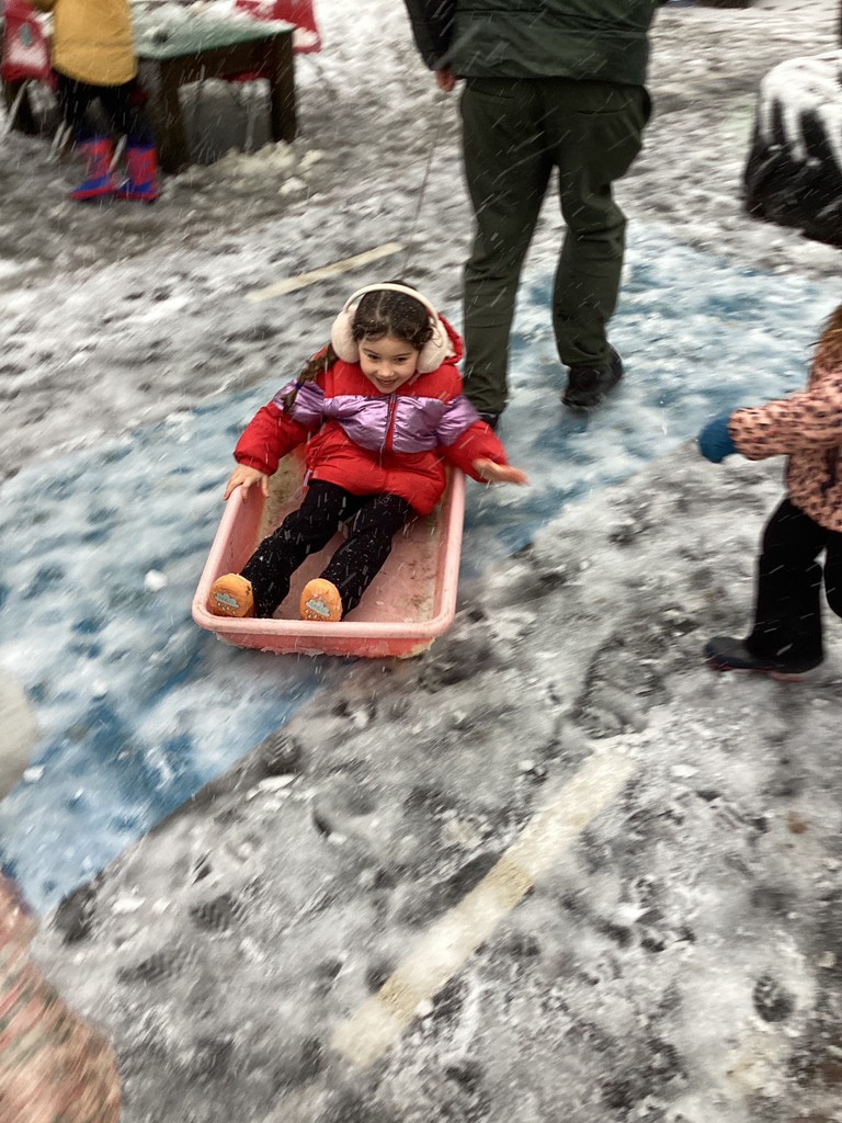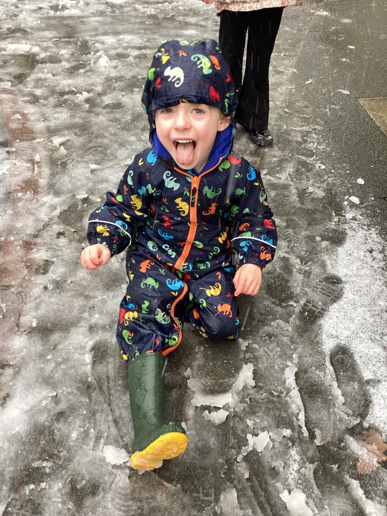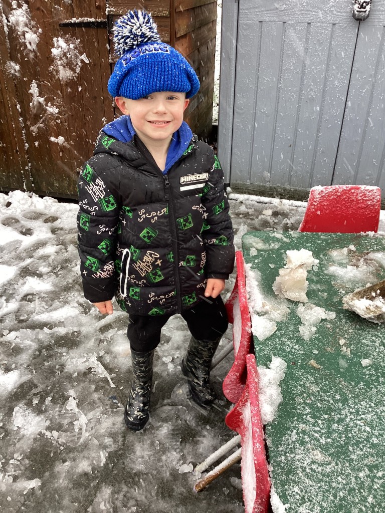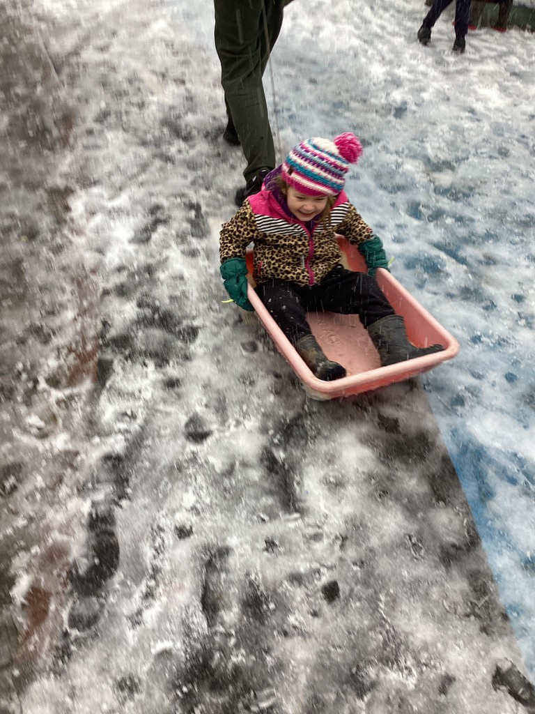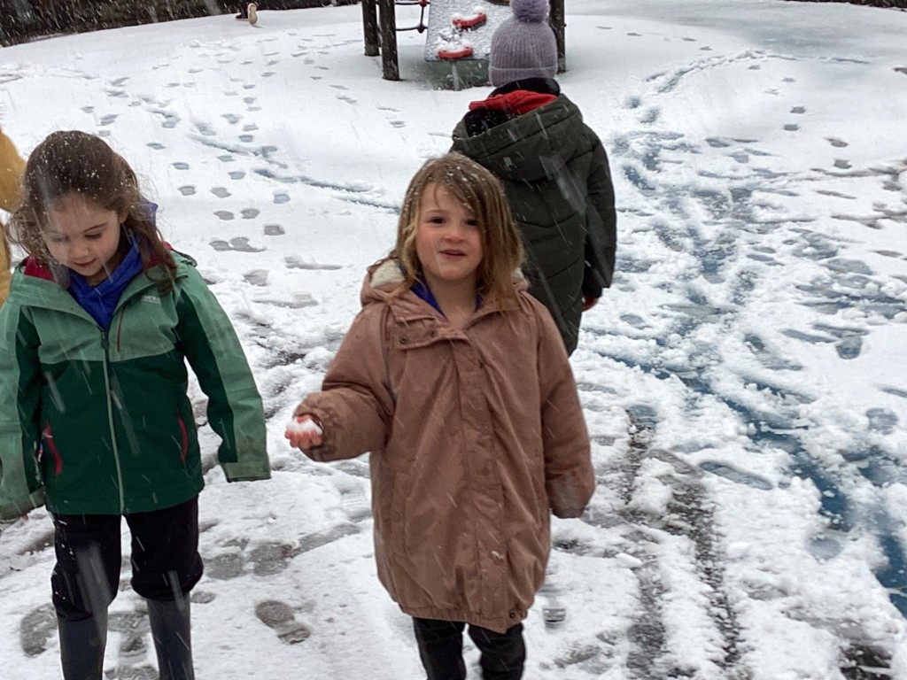 Of course, Friday has brought with it snow which delighted and excited the children. In our outdoor areas the children relished the opportunity to play in the snow, making snowballs, snow piles (it was a bit wet for snowmen!) and speedy sledge rides around the track!