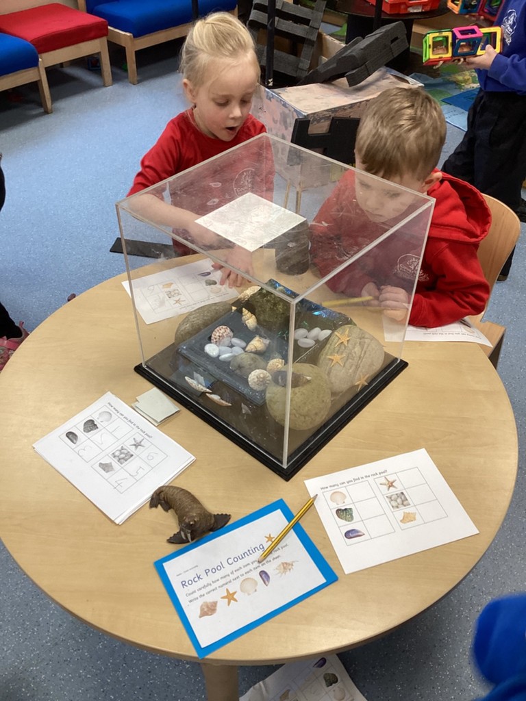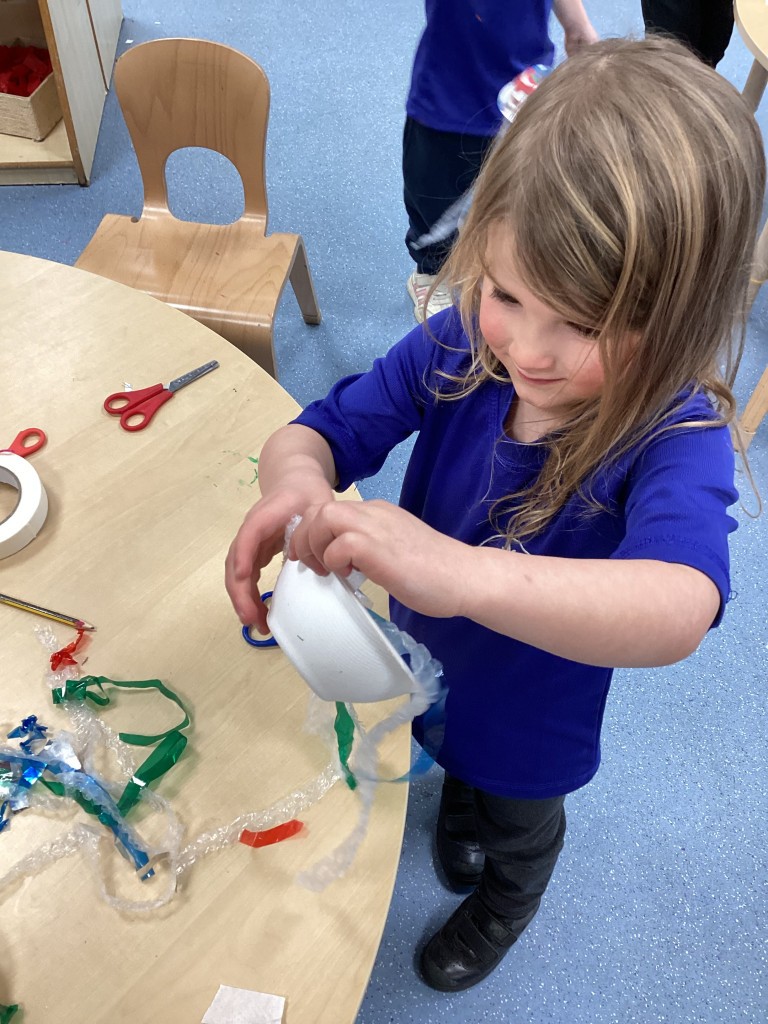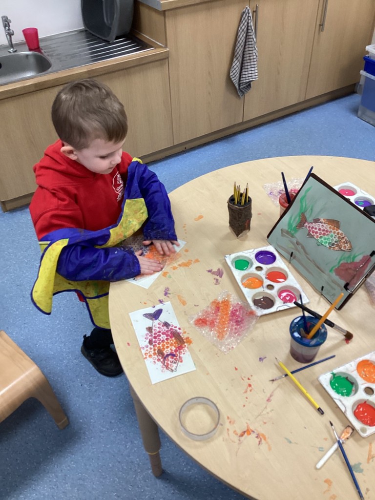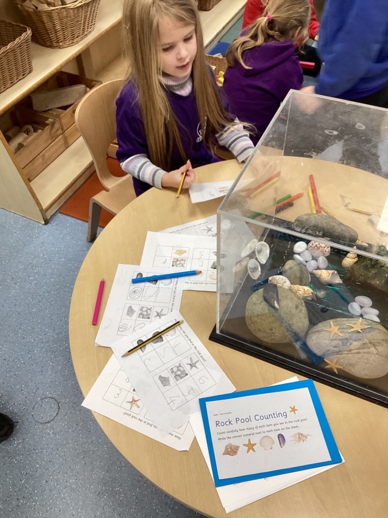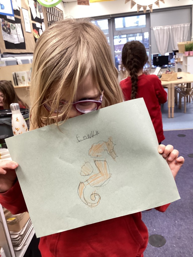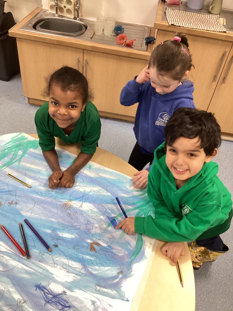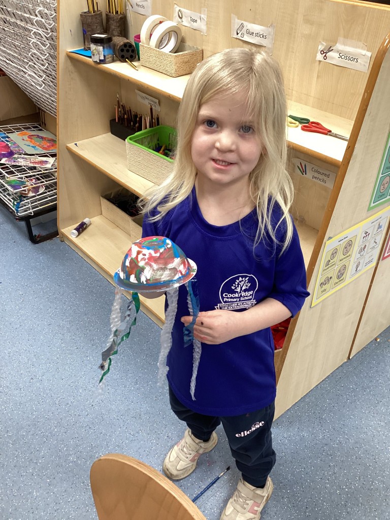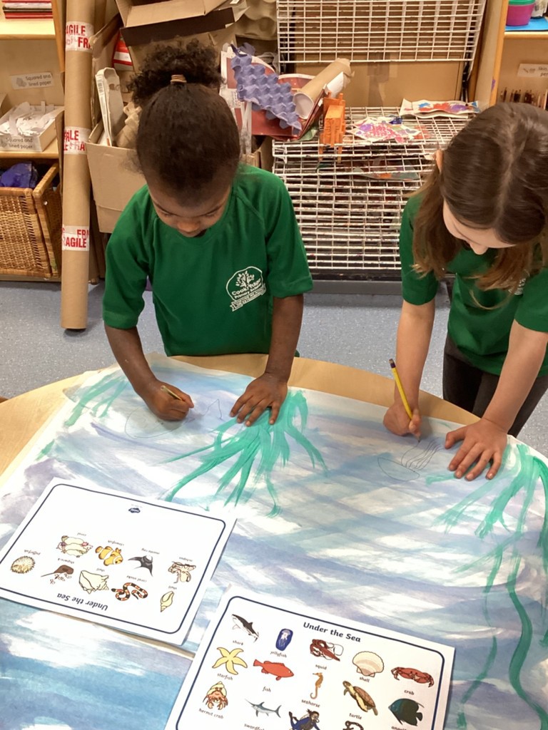 What a fun week in Reception to cap off a fantastic half term. Our Amazing Animals topic has brought us to the seas and oceans of the world and all their many inhabitants. The children have loved our topic sessions this week, in which we have compared the different ocean habitats and how the animals vary in different locations depending on the ocean temperatures. We also had a fascinating look at the Blue Whale, with the children thrilled to learn so many interesting facts about the largest creature on Earth. There have been lots of lovely art activities this week with children drawing undersea creatures, painting fish with bubble-wrap patterns and creating their own jellyfish! Reception even got it’s very own rockpool this week, with the children challenged to carefully count the different starfish, shells and pebbles positioned inside it.