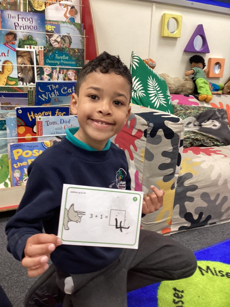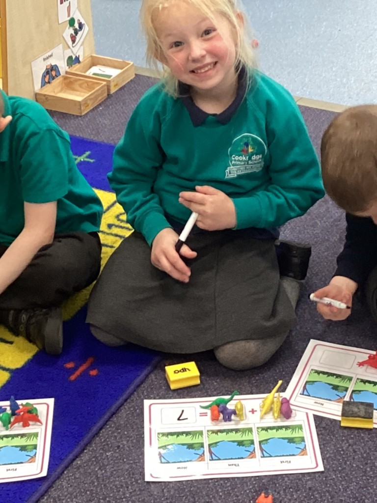 In Maths this week, we have been working on adding two numbers together to make a total. The children have enjoyed exploring this concept in varying ways and are all becoming so much more confident with numbers as the weeks go by.
