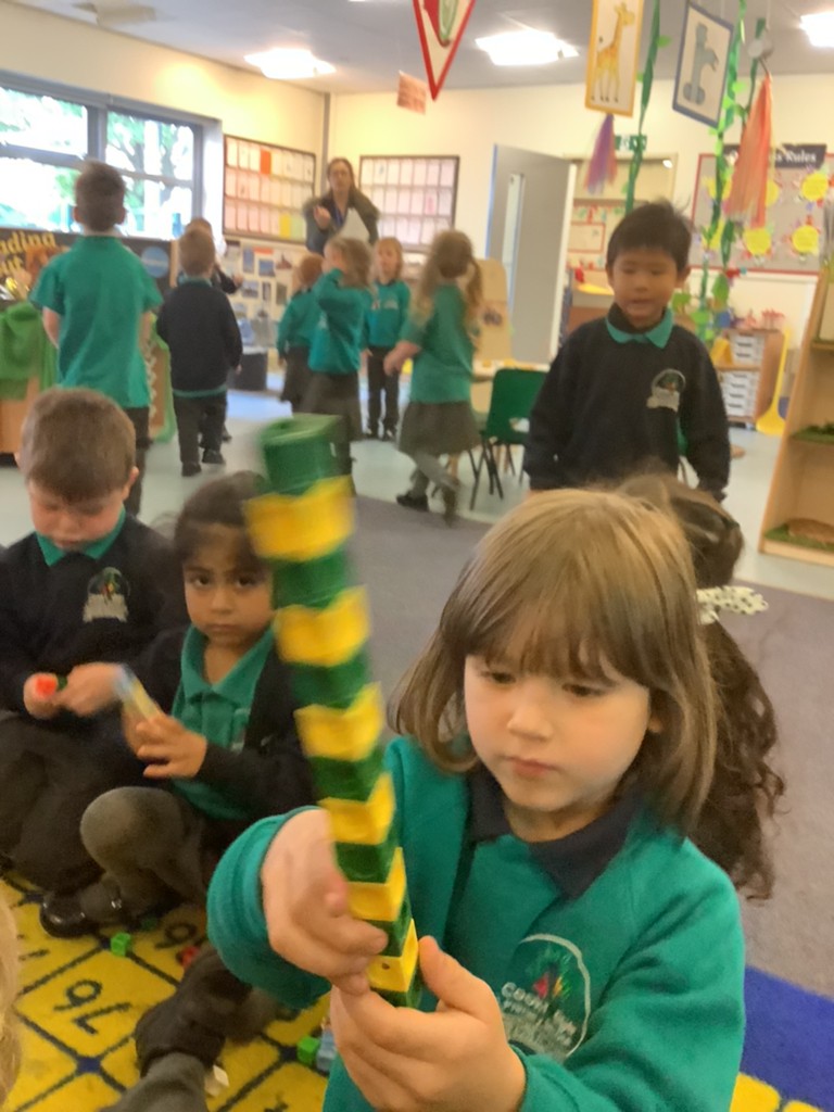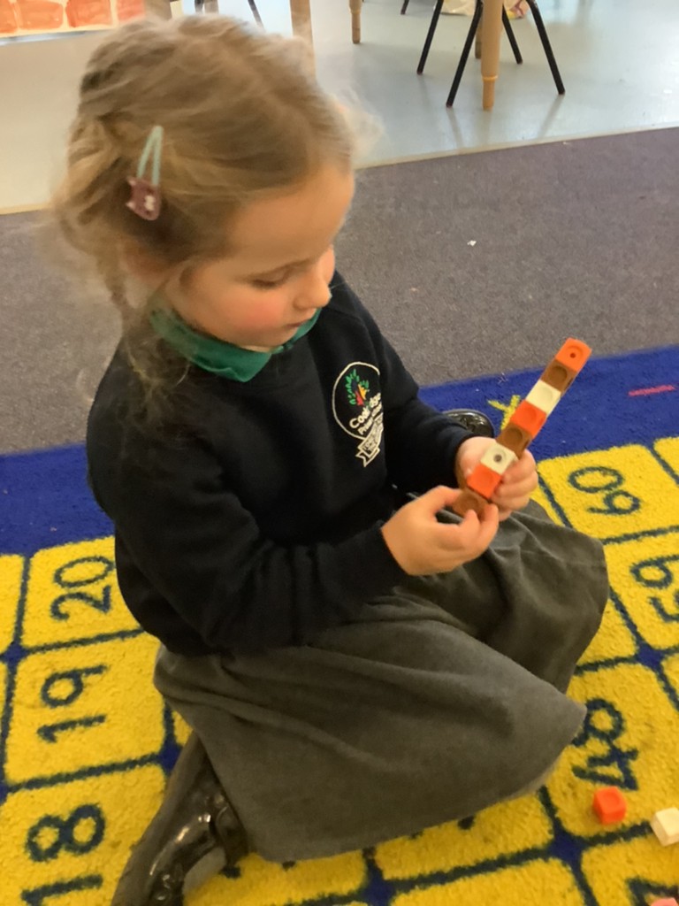 In Maths this week we’ve been investigating repeating patterns in a variety of ways. The children have looked for and continued patters as well as creating their own patterns with all sorts of materials, inside and out.