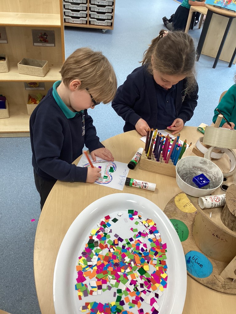 Elsewhere in the classroom, the children have enjoyed playing in our new home corner, making cards for Mothers Day and drawing pictures of churches after talking about buildings in our local area.