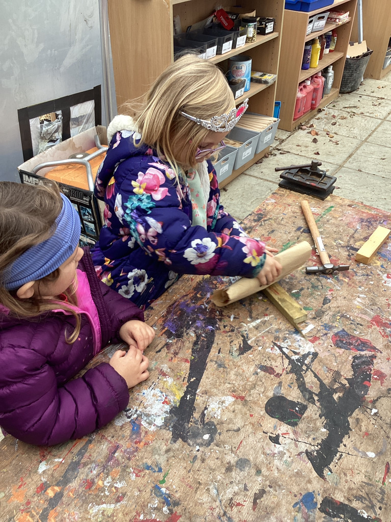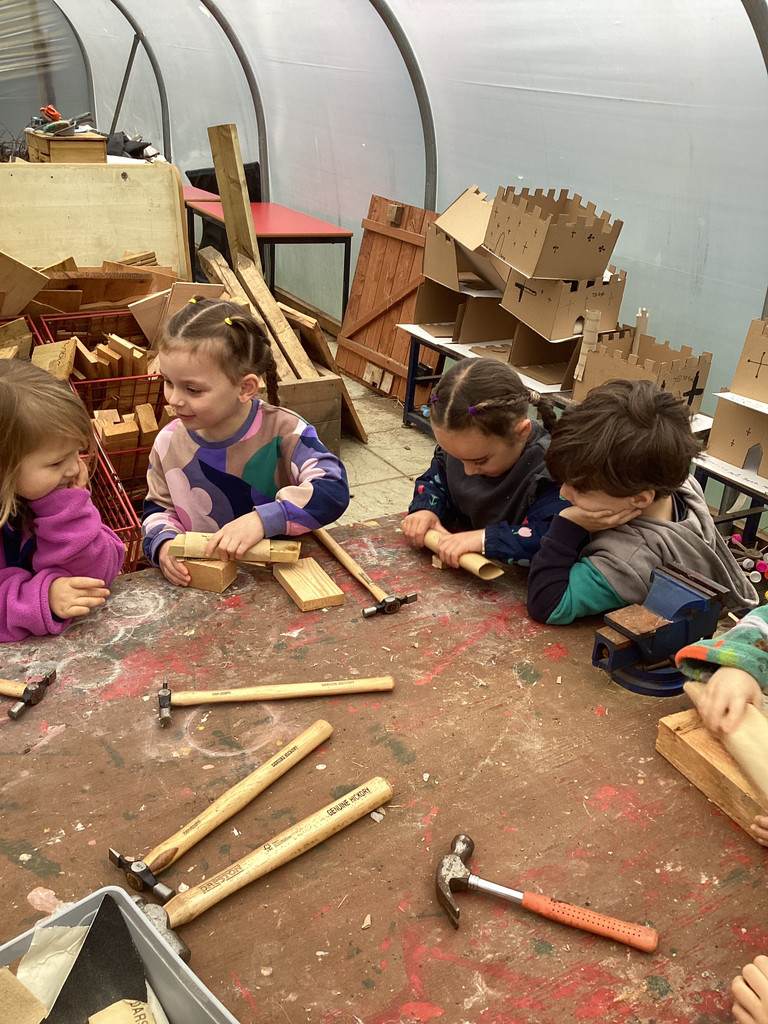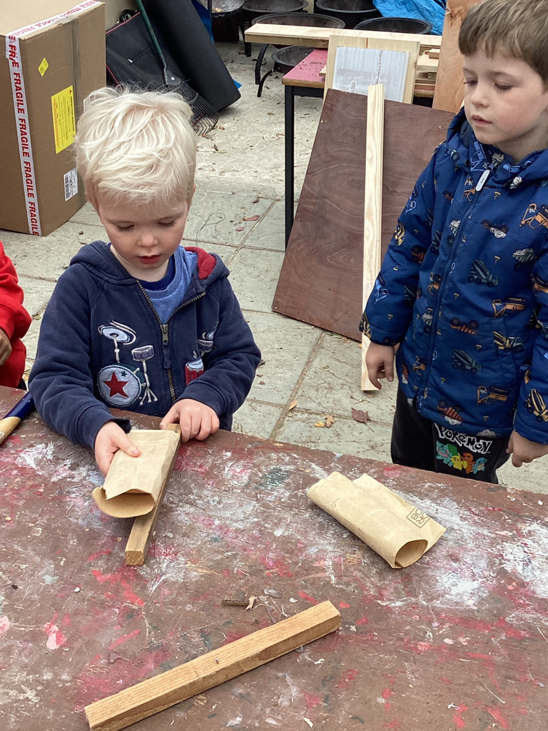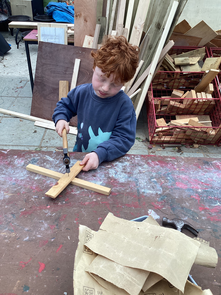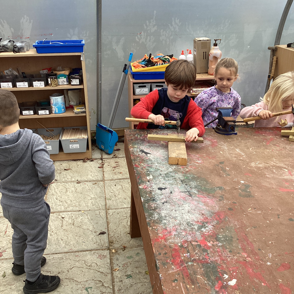 On Tuesday, the children greatly enjoyed time with Mr Joy in the polytunnel where they were able to build on their hammering and sanding skills to join pieces of wood together.