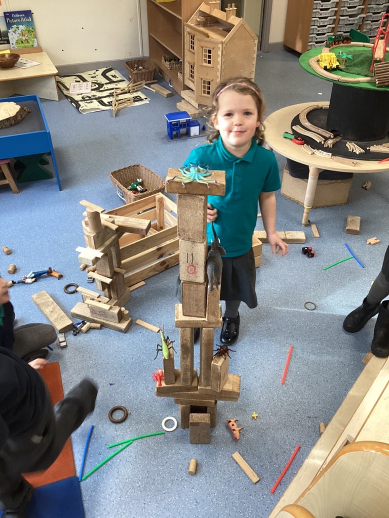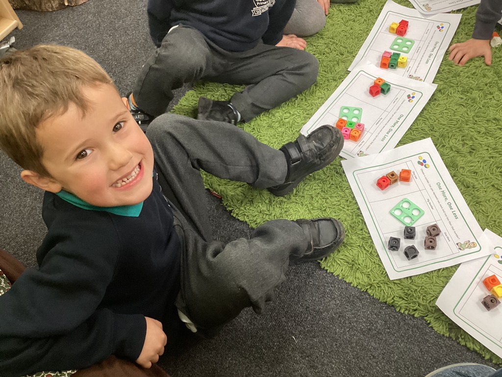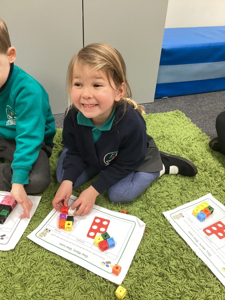 Phonics sessions this week introduced the new phonemes r, h and b, with the children challenged to read and write words and sentences using these letter sounds. This week, Maths saw the children exploring the concepts of 1 more and 1 less in different way: building towers; buying ‘buns’ and counting out beads.