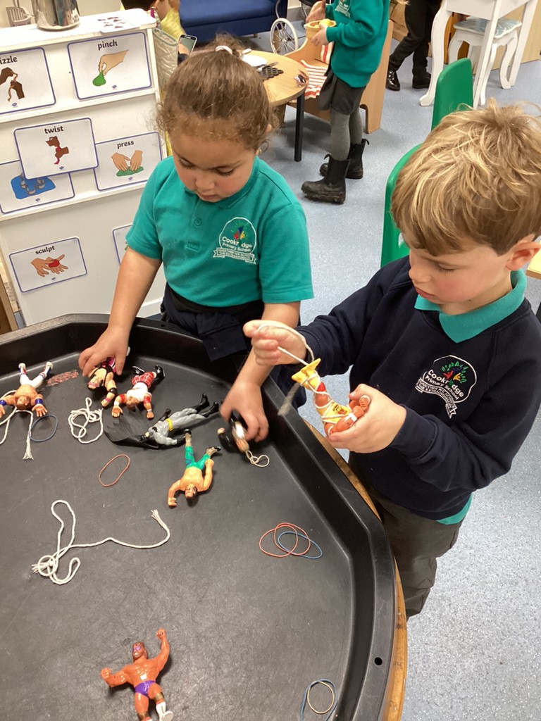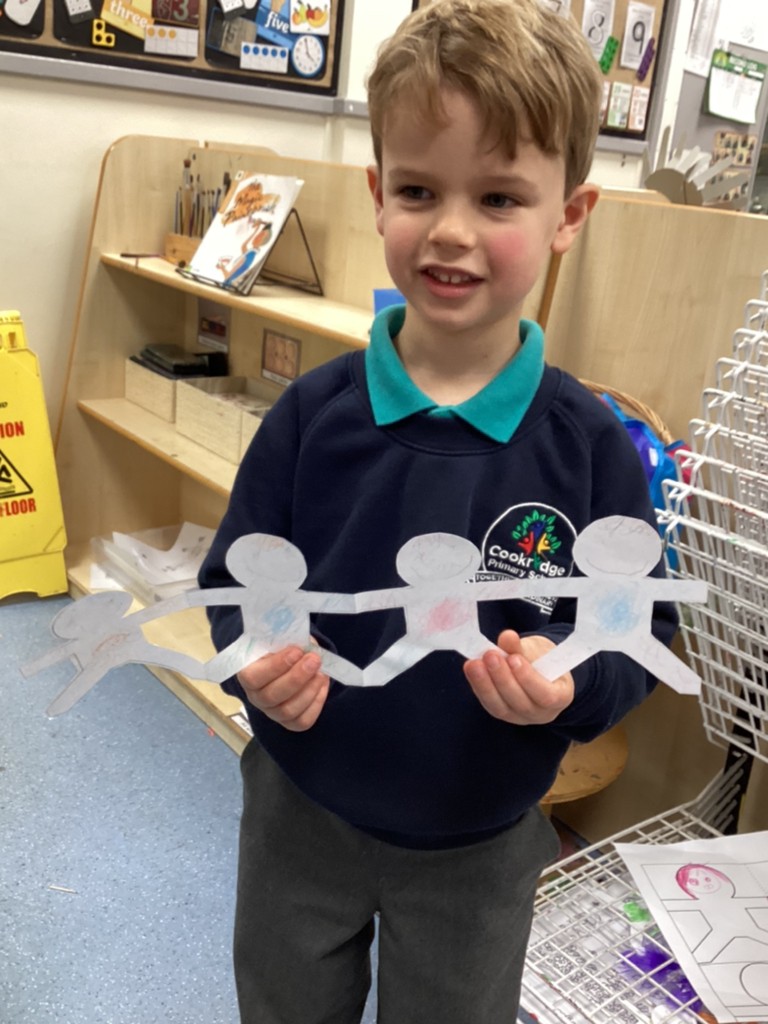 Our topic of Toys has found children inspired by books about toys such as ‘Paper Dolls’ and ‘Traction Man’. The children enjoyed having a chance to make their own paper dolls and were encouraged to decorate each individually and give them all names. Whilst others chose to tell ‘Traction Man’ tales in the role play and construction areas.