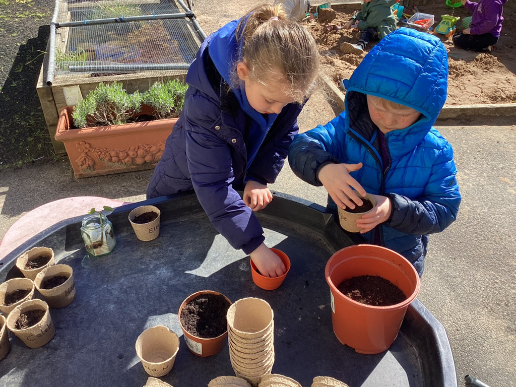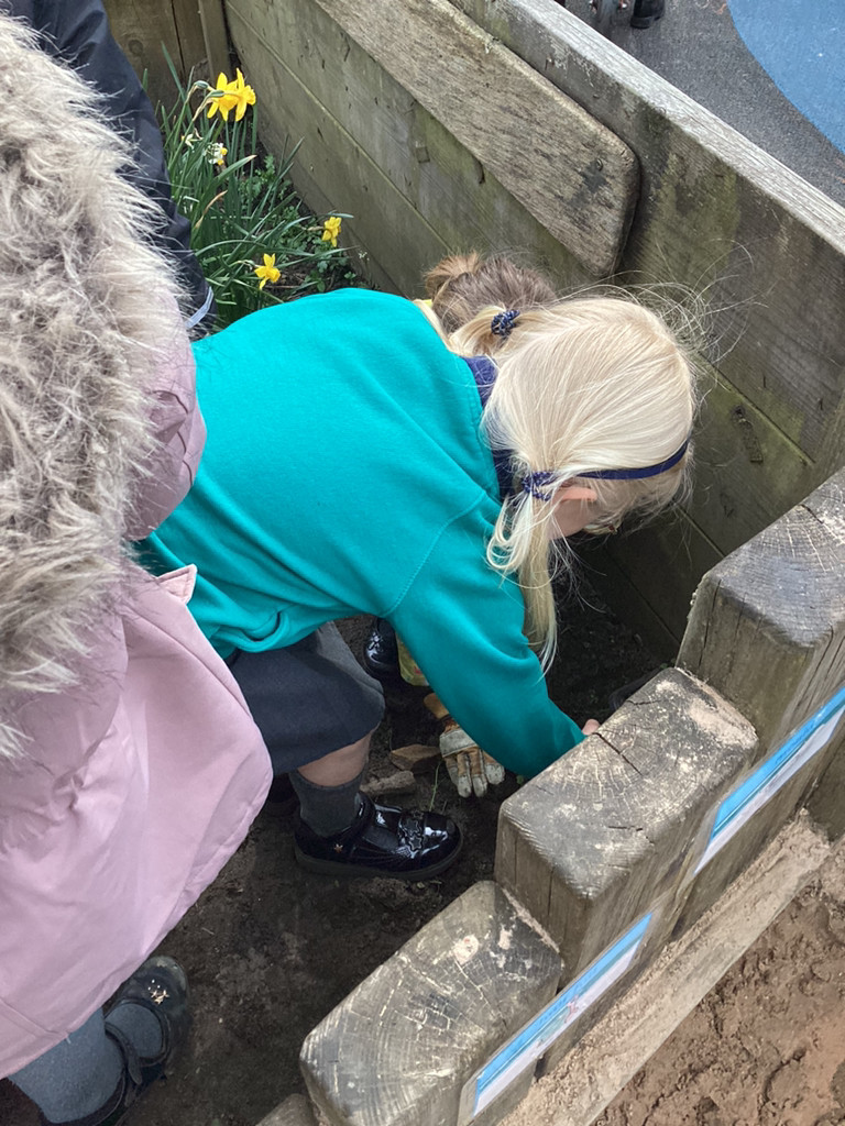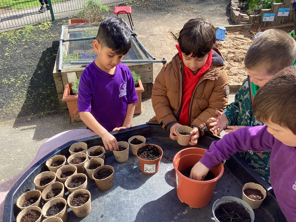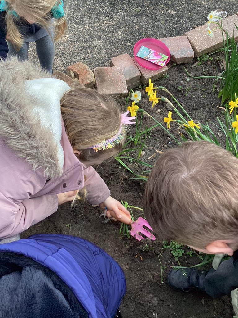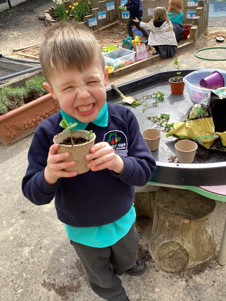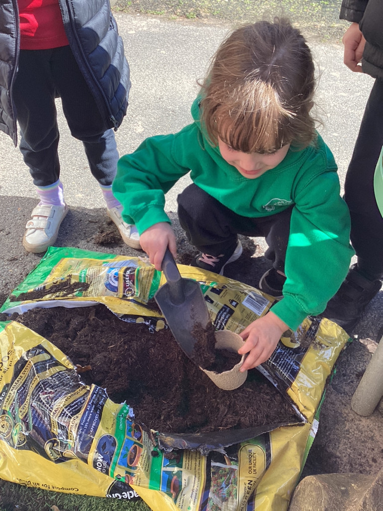 Of course, we all also got planting and every child planted their own bean in an individual pot which we shall look after as it (hopefully) grows. The children all started their own ‘bean diary’ too, to record the changes in their plant as it grows. Some children also helped out with preparing out outdoor garden by helping to remove stones and weeds before helping to sow some radish seeds in three neat little rows. We shall be keeping an eye on these in the coming weeks, and watering them as needed (should it ever go thirty minutes without raining in Cookridge, that is!). There was also a curiosity station, where children were invited to explore different fruit and vegetables to look at the different types of seeds they could find.