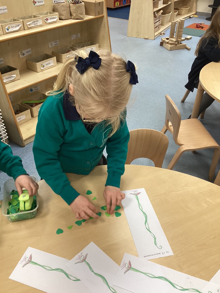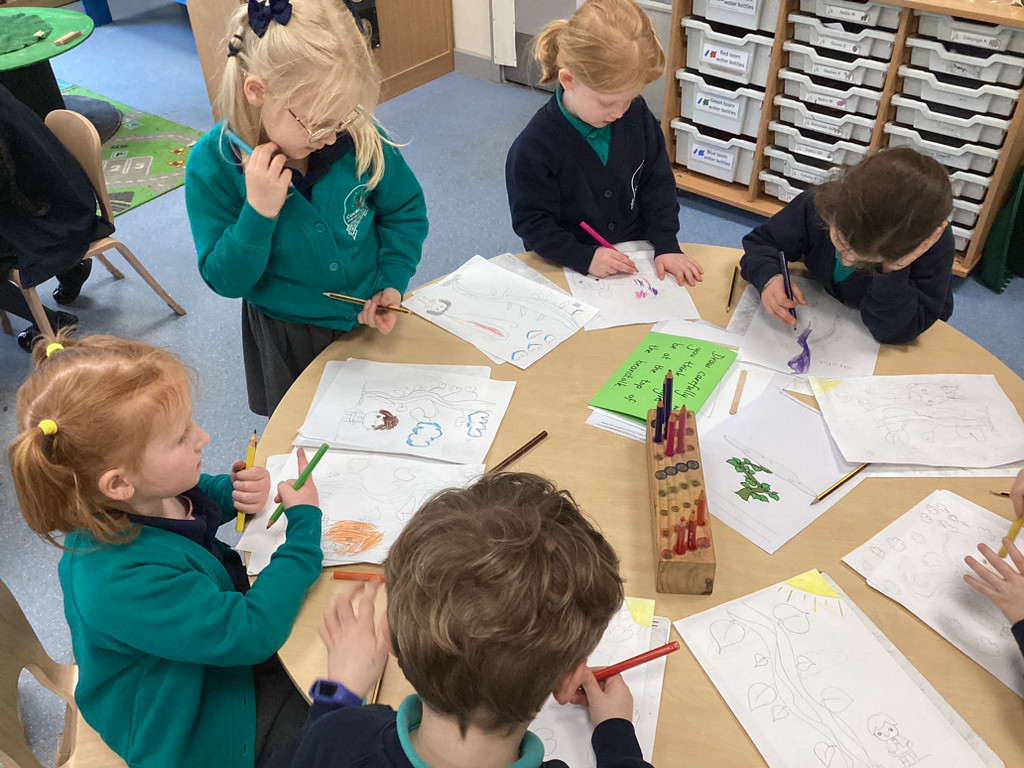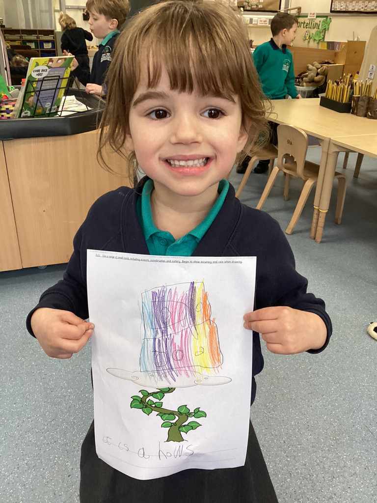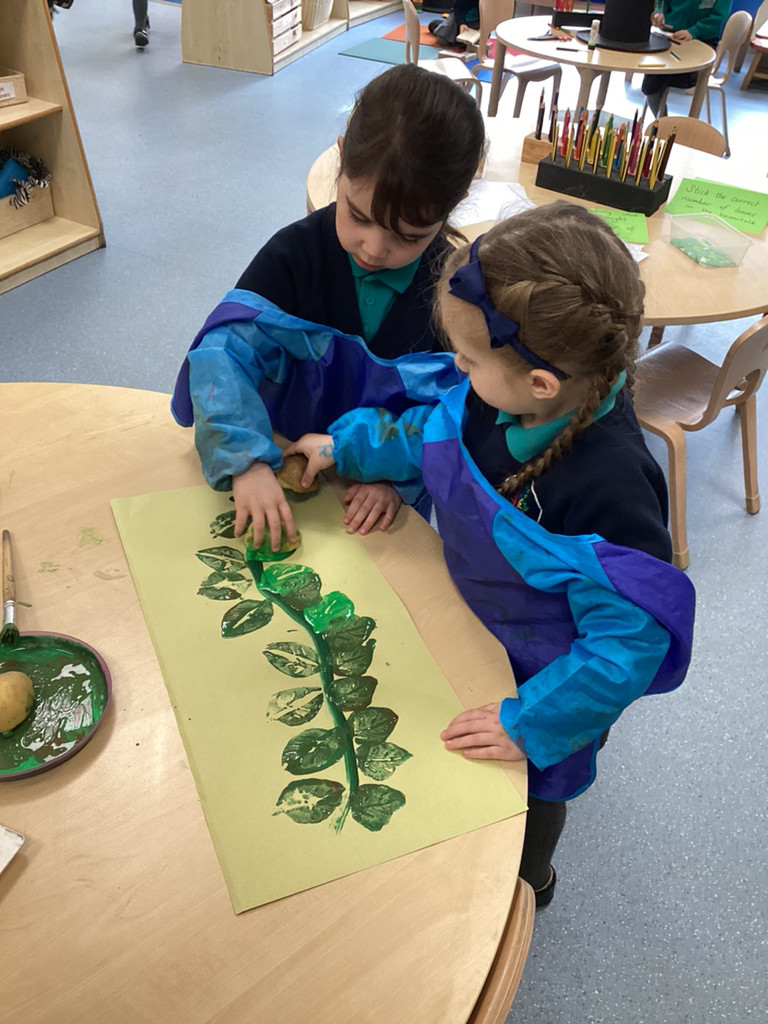What a great start to the new term we’ve had in Reception this week! The children have returned from the break with lots of energy and enthusiasm for the term ahead and we have dived straight into our latest topic ‘Let it Grow!’ in which we’ll be looking at all kinds of growth in plants and animals alike. To begin this topic we have used ‘Jack and the Beanstalk’ as our focus story. The children enjoyed hearing a couple of different versions of this traditional tale and got stuck into a range of related activities around Reception. There were props available for the children to use to retell the story; we had story maps where children were challenged to put the parts of the story in the correct order; we had some fantastic beanstalk artworks and even a Jack and the Beanstalk boardgame!