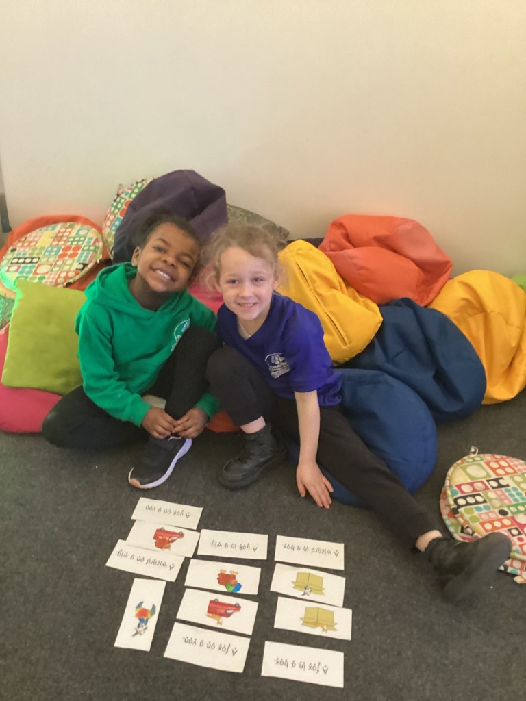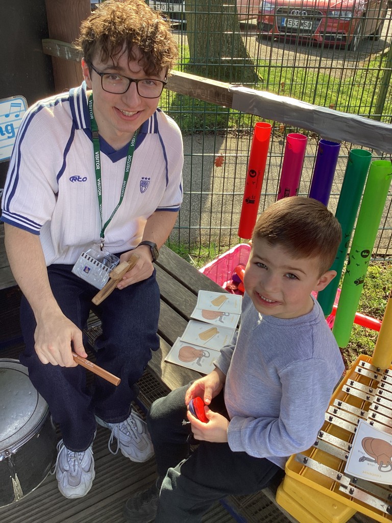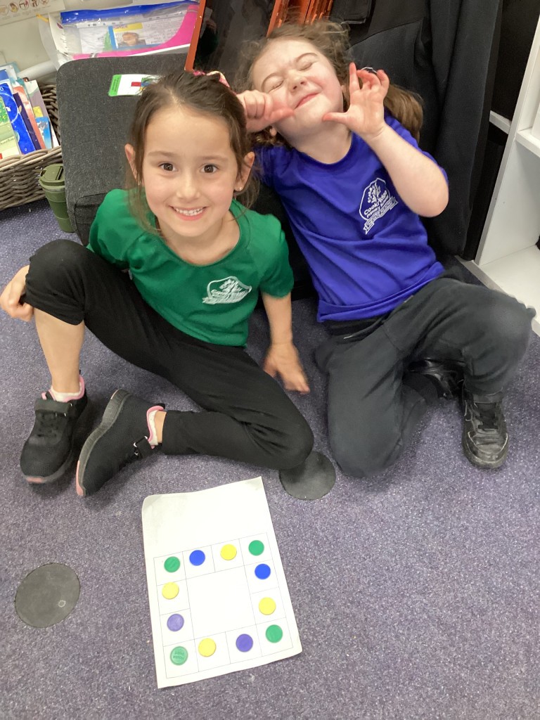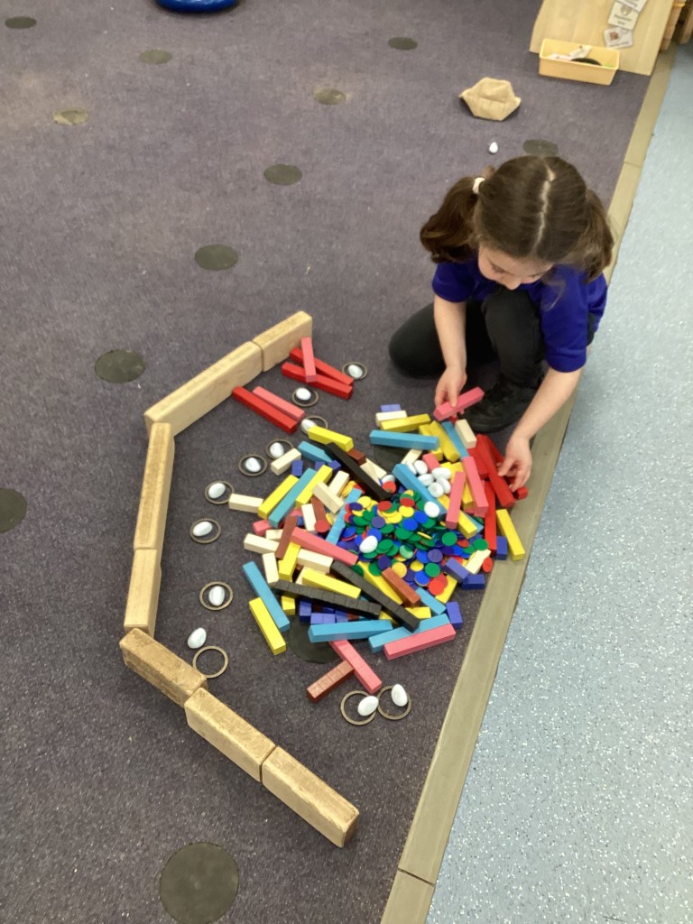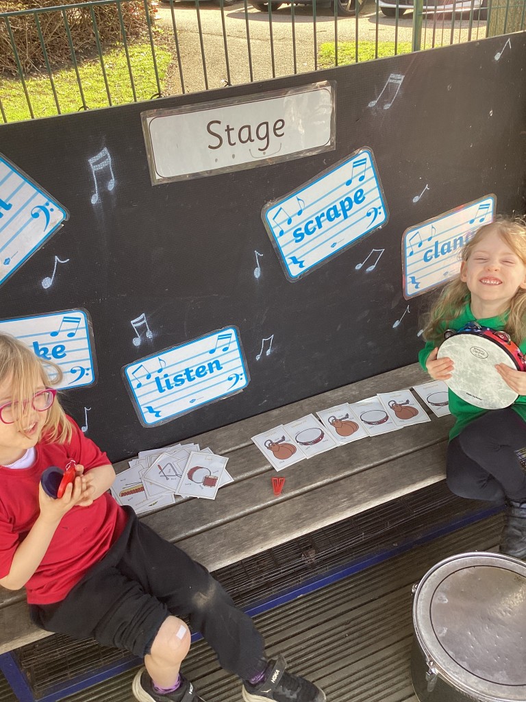 Our Maths sessions this week have been lots of fun as we’ve been thinking about patterns! The children have had a great time making repeating patterns with cubes and counters, or by looking closely at the rotation of familiar 3D shapes. Most fun of all has been using the musical instruments outside to make repeating patterns with different sounds!