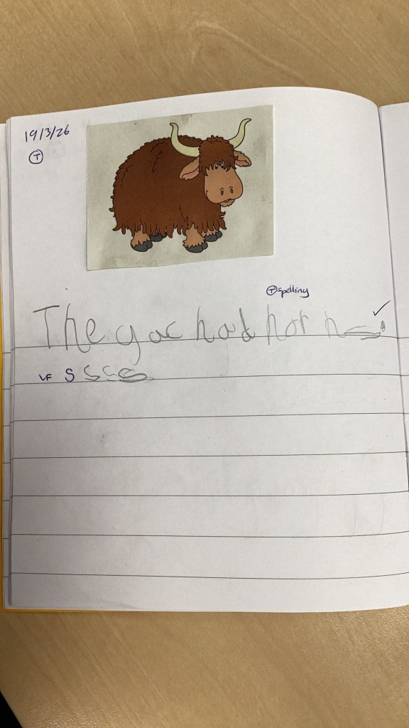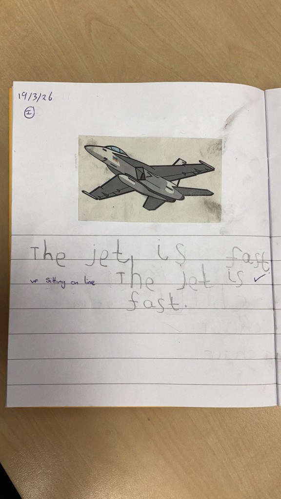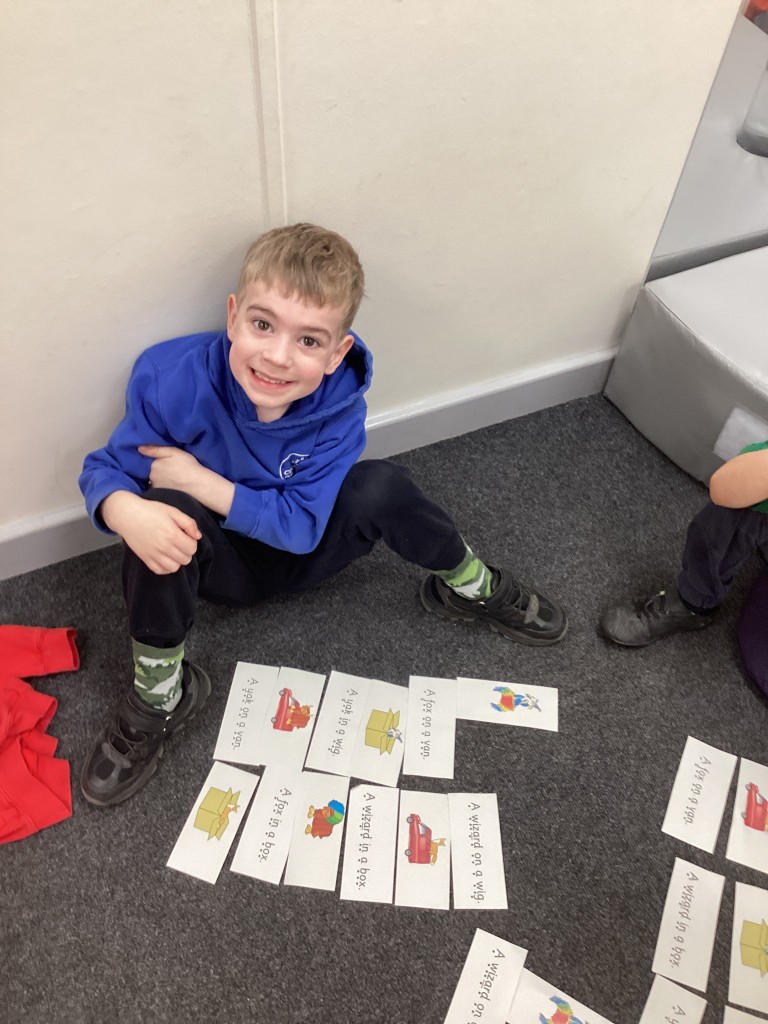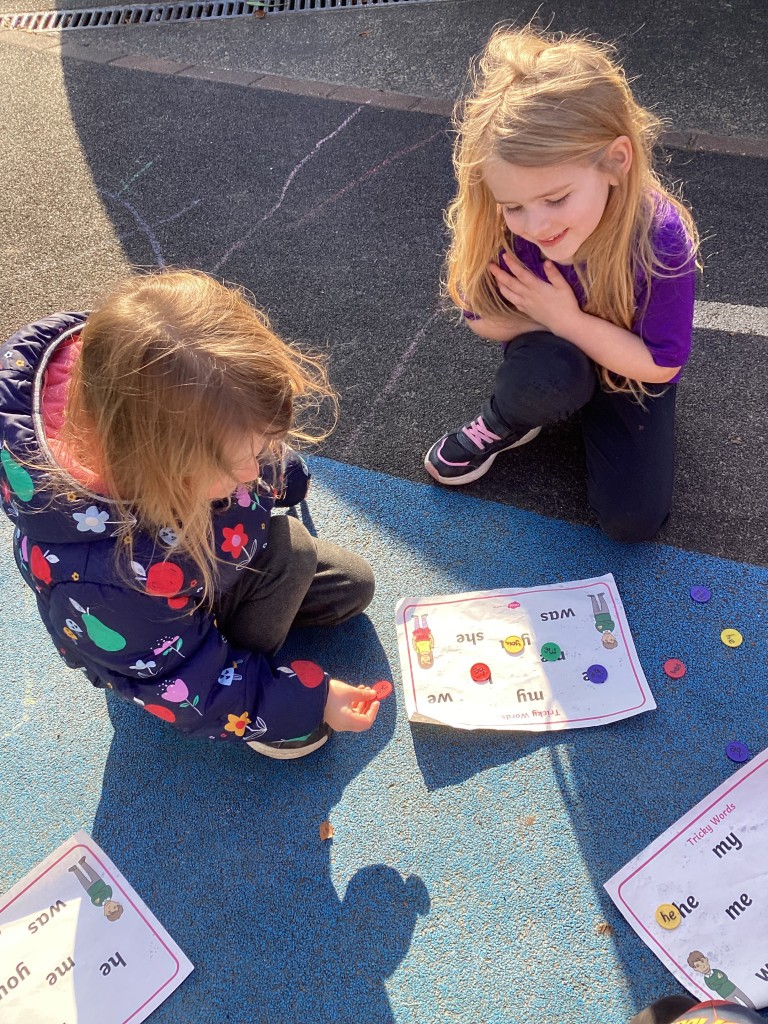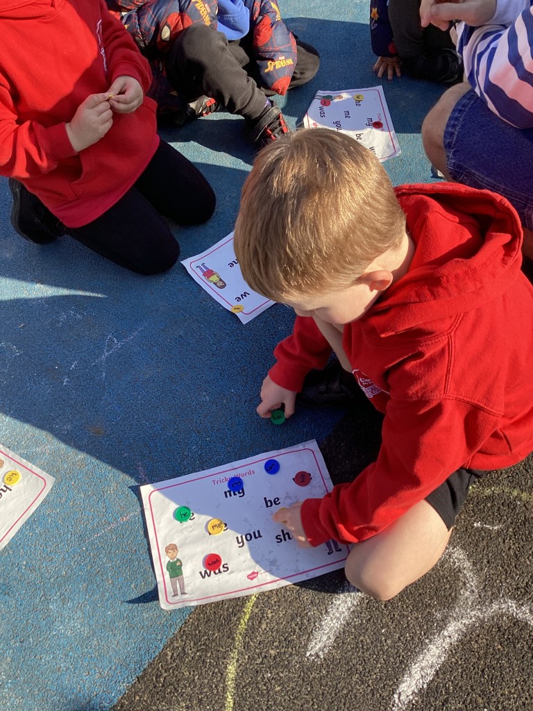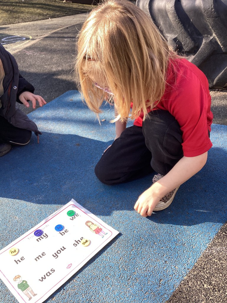 As we finished learning new sounds in our Phonics sessions this week, we have spent this week revisiting some of the phase 3 sounds. The children have been rehearsing recognising the single letter phonemes in phase 3 to read words and phrases. We have also taken a step further in our independent sentence writing journey, with the children encouraged to use the sounds in words when writing their own simple sentences. To help with reading and writing fluency we have also spent time becoming more familiar with the high frequency ‘tricky’ words that cannot be phonically decoded (words such as we,he, was and you). The children enjoyed hunting for ‘pebbles’ in the ‘river’ with the words on and some even hunted for the letters to help them spell out these words!