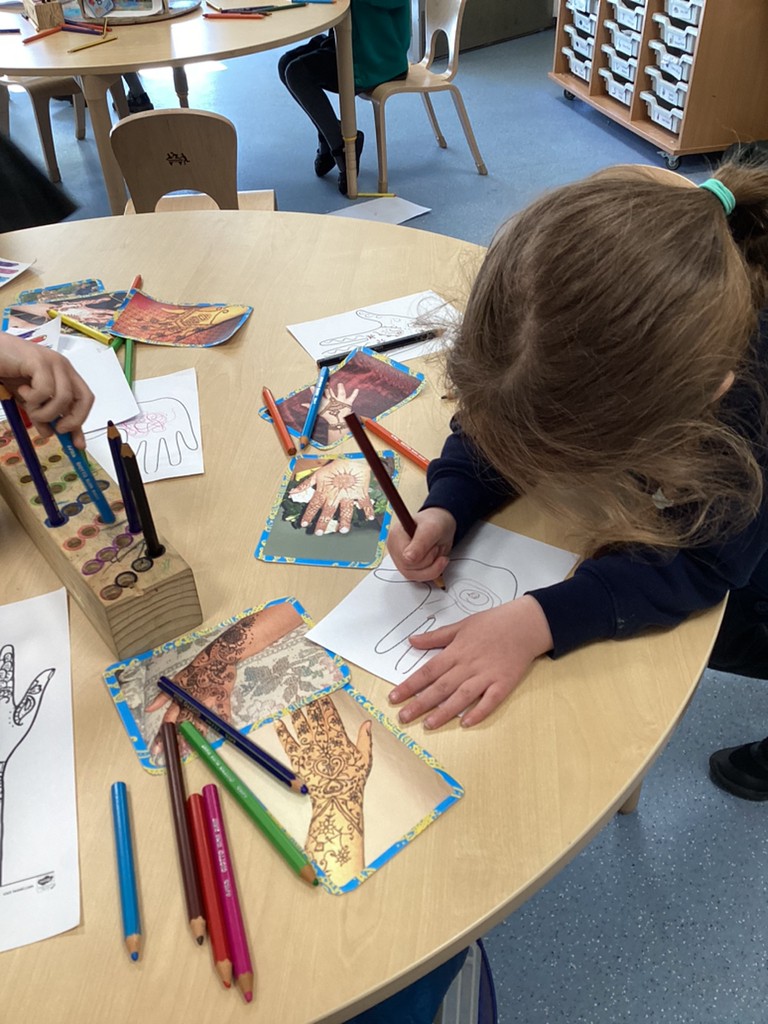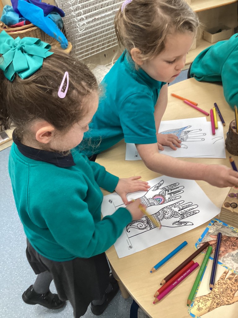 We spent time on Thursday discussing the end of  Ramadan and the upcoming celebration of Eid-al-Fitr. The children had remembered so much of our previous learning on this subject and were very interested to see how children and their families celebrate Eid as part of their Muslim faith.  The children took part in a range of activities related to Eid celebrations, with the design and colouring of mehndi patterns proving very popular. Eid Mubarak to all our families celebrating Eid this weekend!
