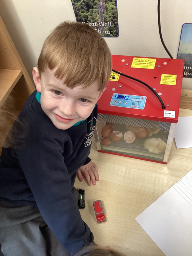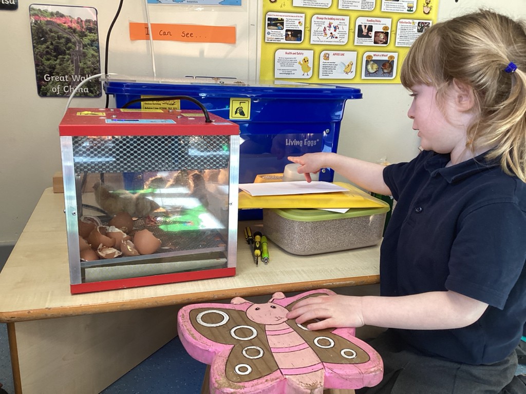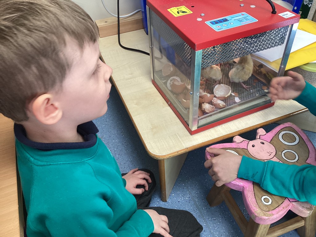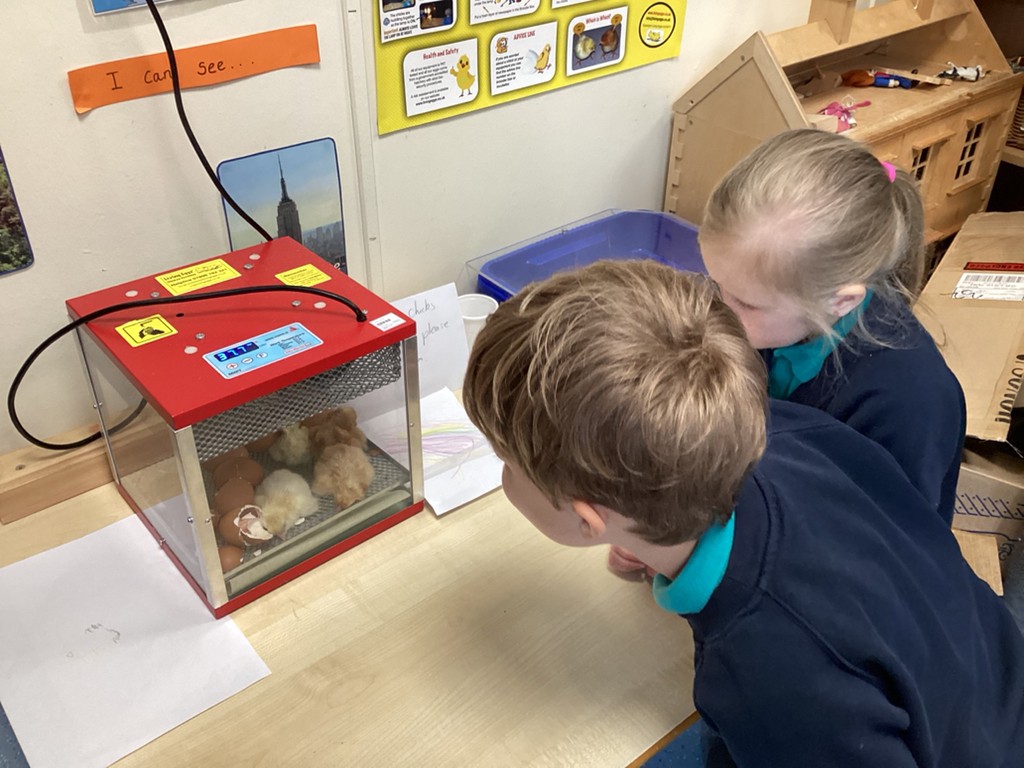 Monday saw the very special delivery to our classroom of ten hen’s eggs in an incubator. Over the course of the week the children have watched with much excitement as the ten eggs hatched into ten fluffy chicks! It has been wonderful to see the children take such interest in observing this process and in their care and consideration for the brand new chicks as they emerged. We shall be looking after the chicks over the coming weeks and the children will be working to complete their own ‘chick diary’ to show their observations as the chicks grow.