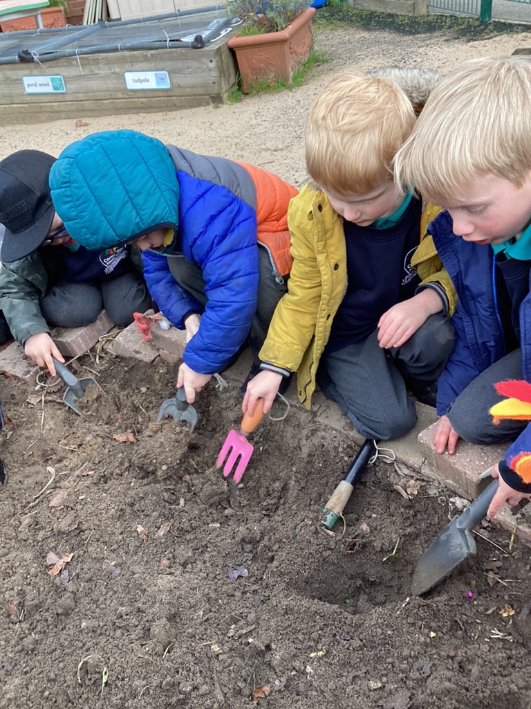 The chicks are obviously playing a central role in our new class topic of ‘Let it Grow!’, which will see us looking at the many joys of spring. Aside from watching the chicks grow, we have planted our own seeds in the playground and will be watching carefully to see what grows. Our seed planting was inspired by a spirited reading of the traditional tale The Enormous Turnip. Hopefully we won’t have to heave so much to harvest our radishes once they grow! We have also brought in tadpoles to the class pond, so we can observe the wonders of nature as they morph into froglets and (hopefully!) into frogs. The children will be learning all about how plants and animals grow this term; about life cycles; the water cycle; and much more. It’s sure to be lots of fun!