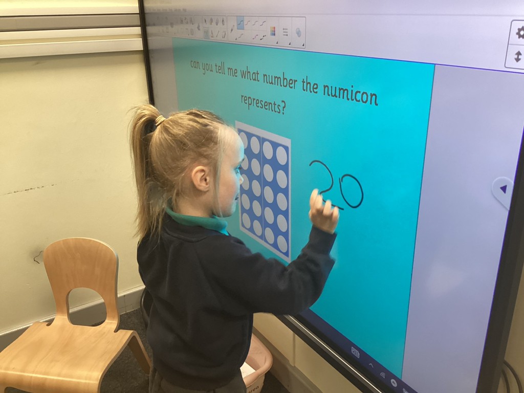 In Maths this week, we have spent time exploring numbers from 11-20. By investigating the composition of these numbers as a tens and ones it helps to build a strong foundation for understanding the entire number system as they go through school. By using a range of resources, inside and out, the children have been able to play around with representing these numbers in different ways and become more familiar with how numbers build on the repetition of numbers 0-9.