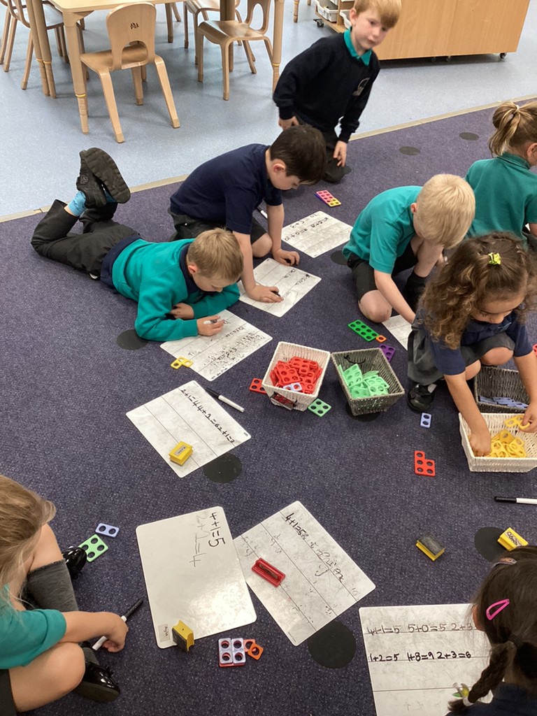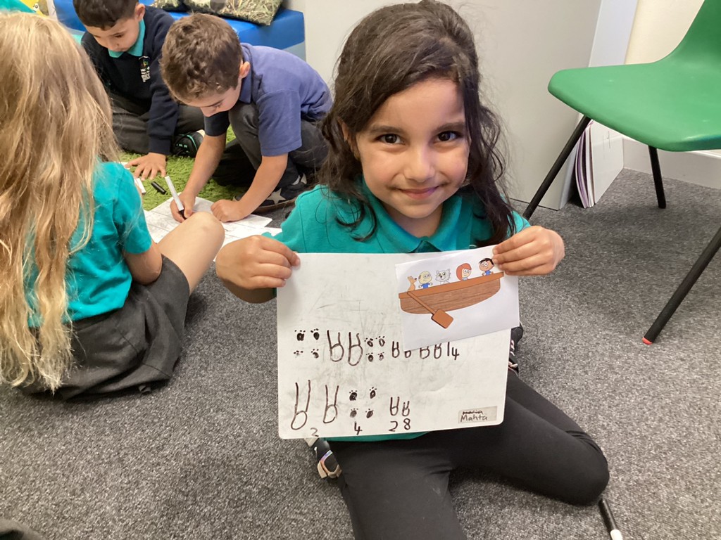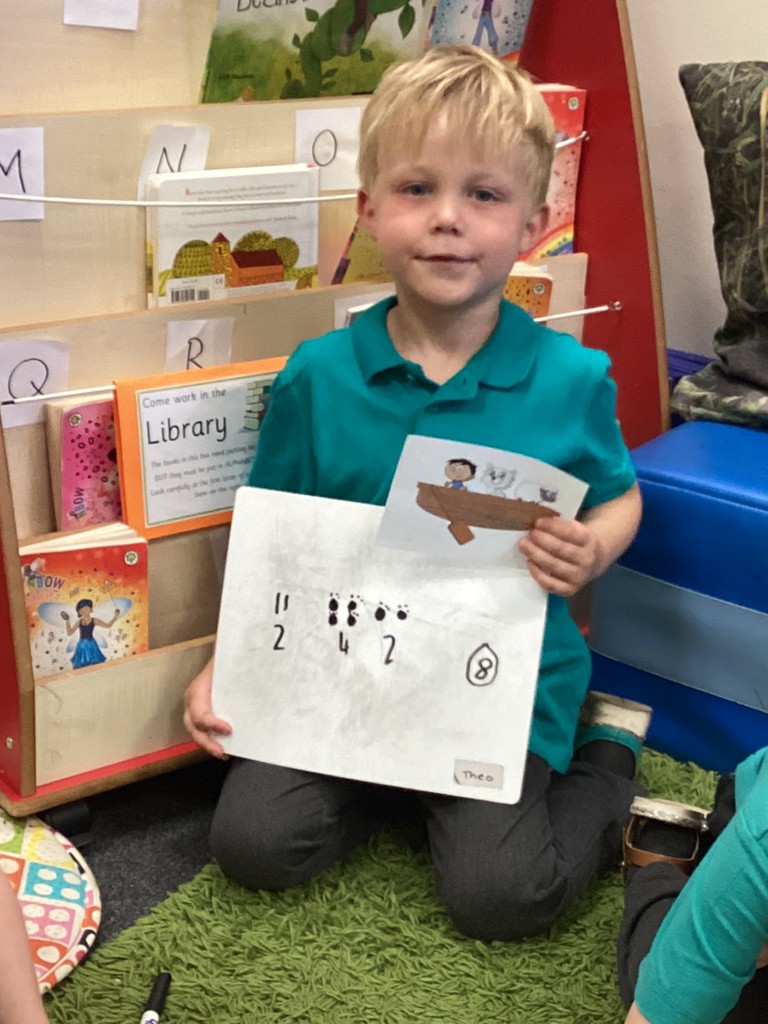 Maths sessions have seen the children practising addition and subtraction, as well as developing problem solving skills. By asking children to visualise people and animals in a boat and adding up how many legs are in the boat, the children are developing skills to help them solve more complex narrative maths problems.
