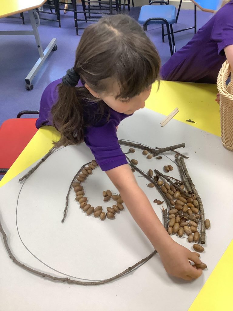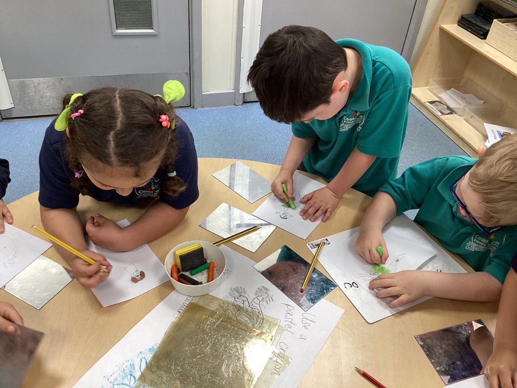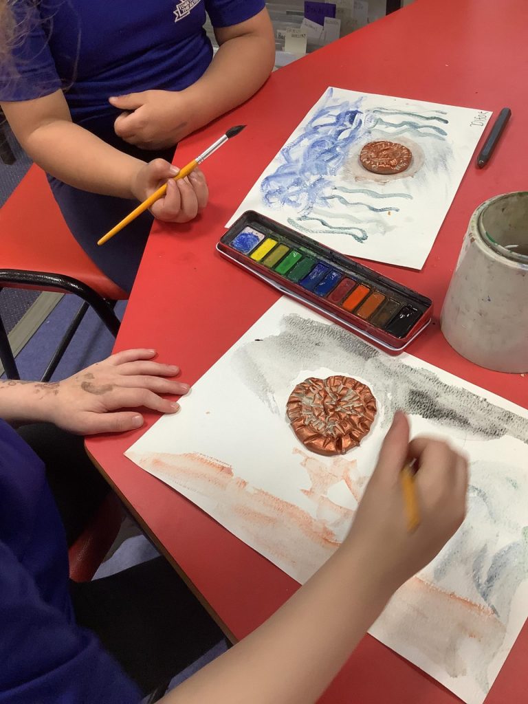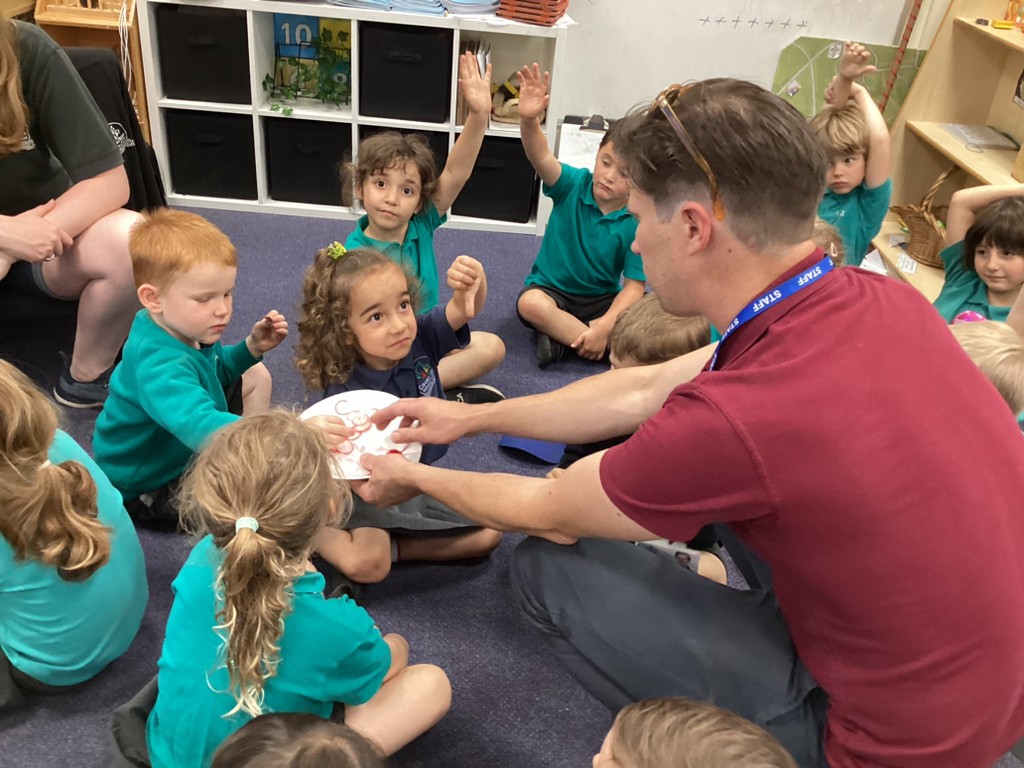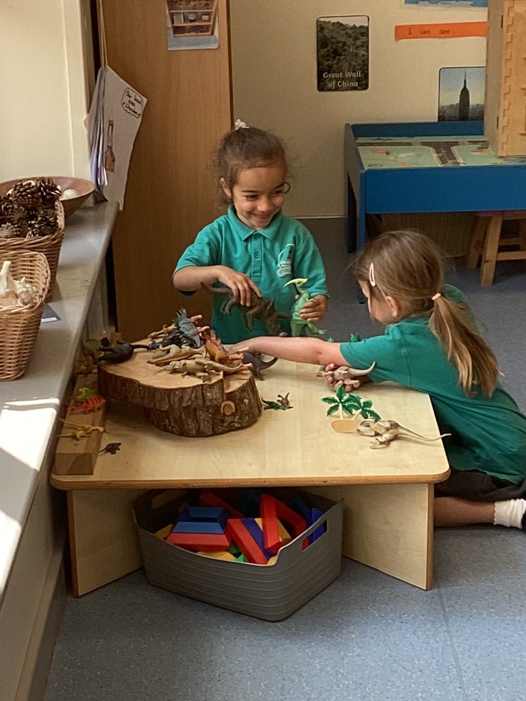 Our Dinosaurs topic has continued to inspire lots of excitement and activity. After the thrills of our dino egg hatching out, we’ve been left with a surprisingly still and quiet baby T-Rex in our class. The children have been tasked with coming up with a name for the young dinosaur and we saw some great sentence writing as a result. There have been plenty of other dino-themed activities to interest and engage the children this week, from dinosaur pastel rubbings; a dinosaur actions trail outside; and labelling different parts of a dinosaur. We also spent time reading the story Tyrannosaurus Drip by Julia Donaldson and this led us to talking about the terms carnivore and herbivore, so we got together in groups to sort animals by their diets and decide if they were carnivore, herbivore or omnivore. Also, with Mrs Ledda in Tuesday’s art sessions, the children explored how to represent ammonite fossils with clay, collage and paint.