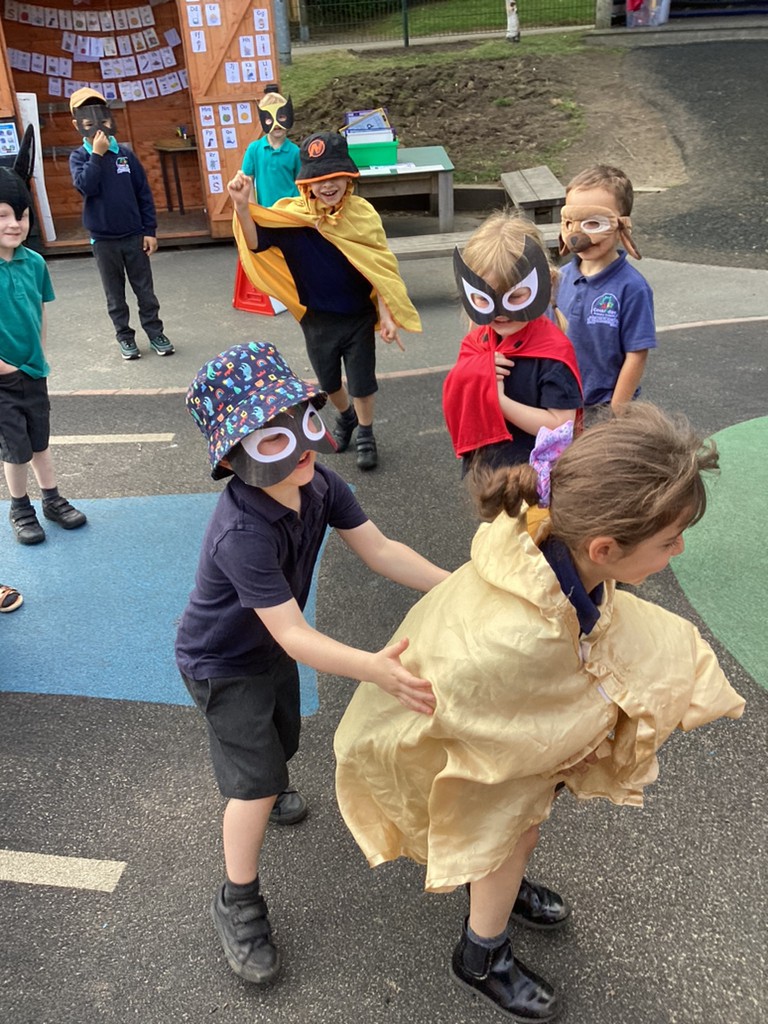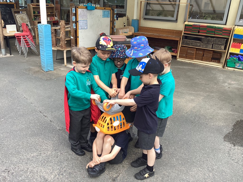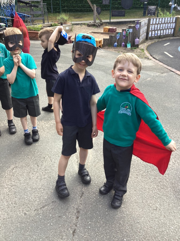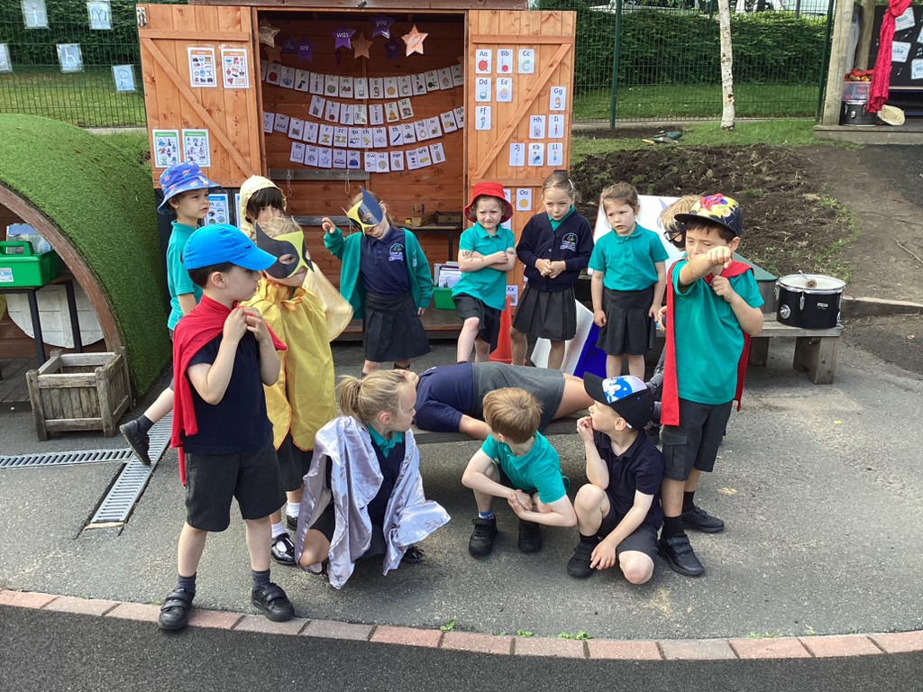 In phonics sessions this week, we’ve continued refining our already brilliant reading and writing skills as well as further developing our comprehension skills through role-play. The story chosen for this week was ‘Supertato’ with children taking it in turns to act out the story in different roles. Much fun was had saving the vegetables from The Evil Pea!