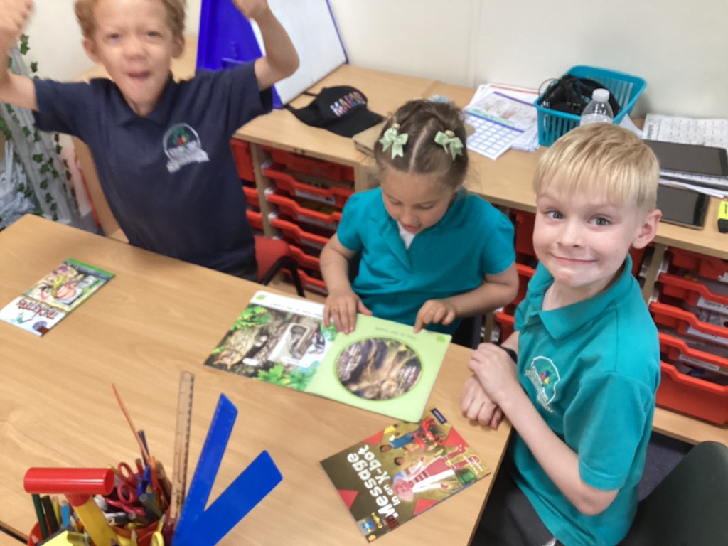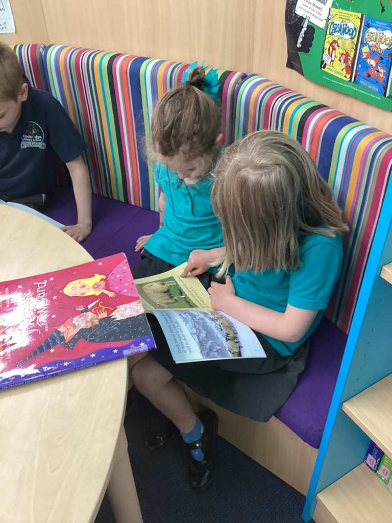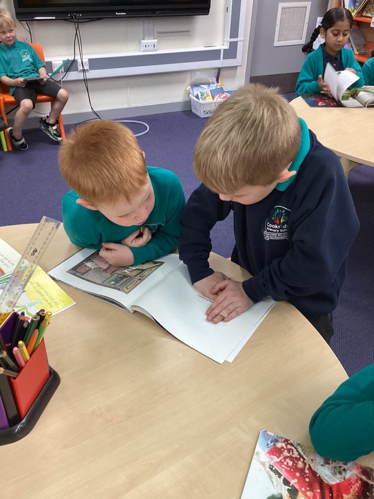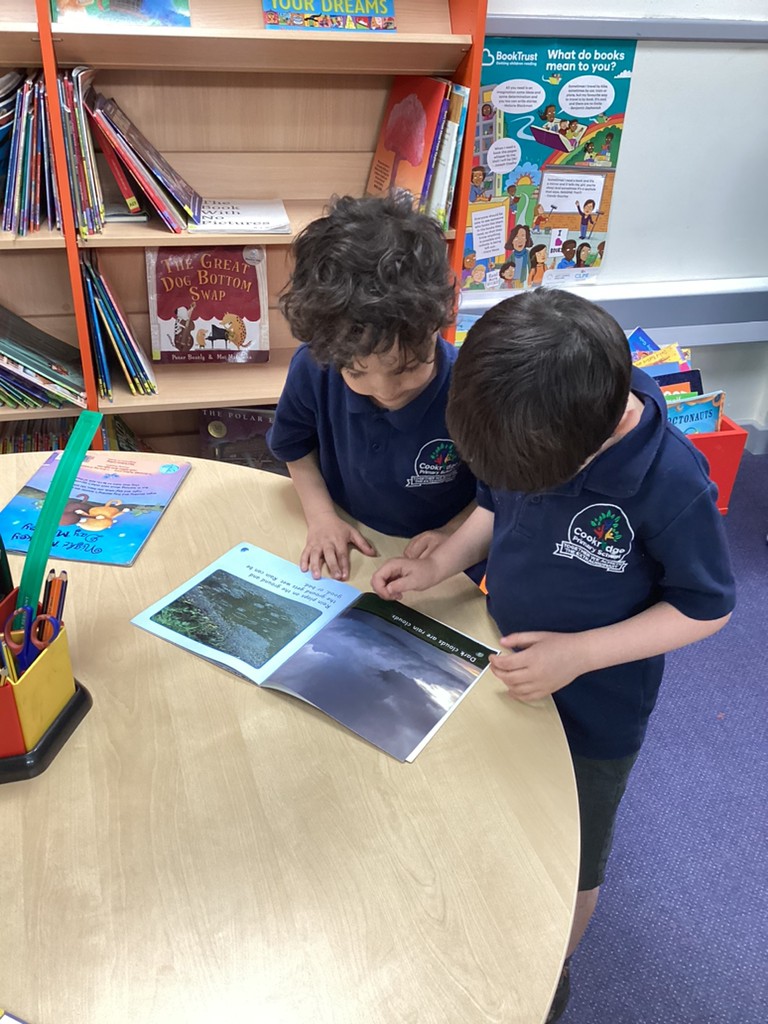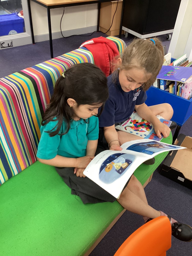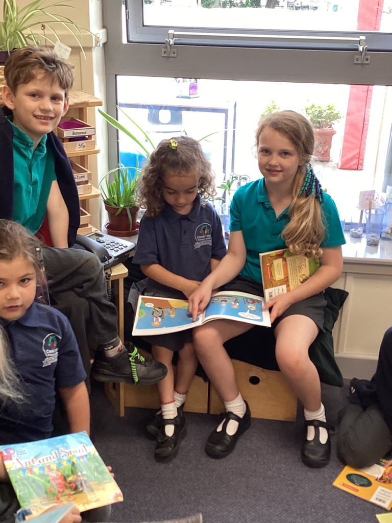 Wednesday saw Reception going downstairs to visit the Key Stage 1 children, where they buddied up to share books together and practise their reading with support from the older children.