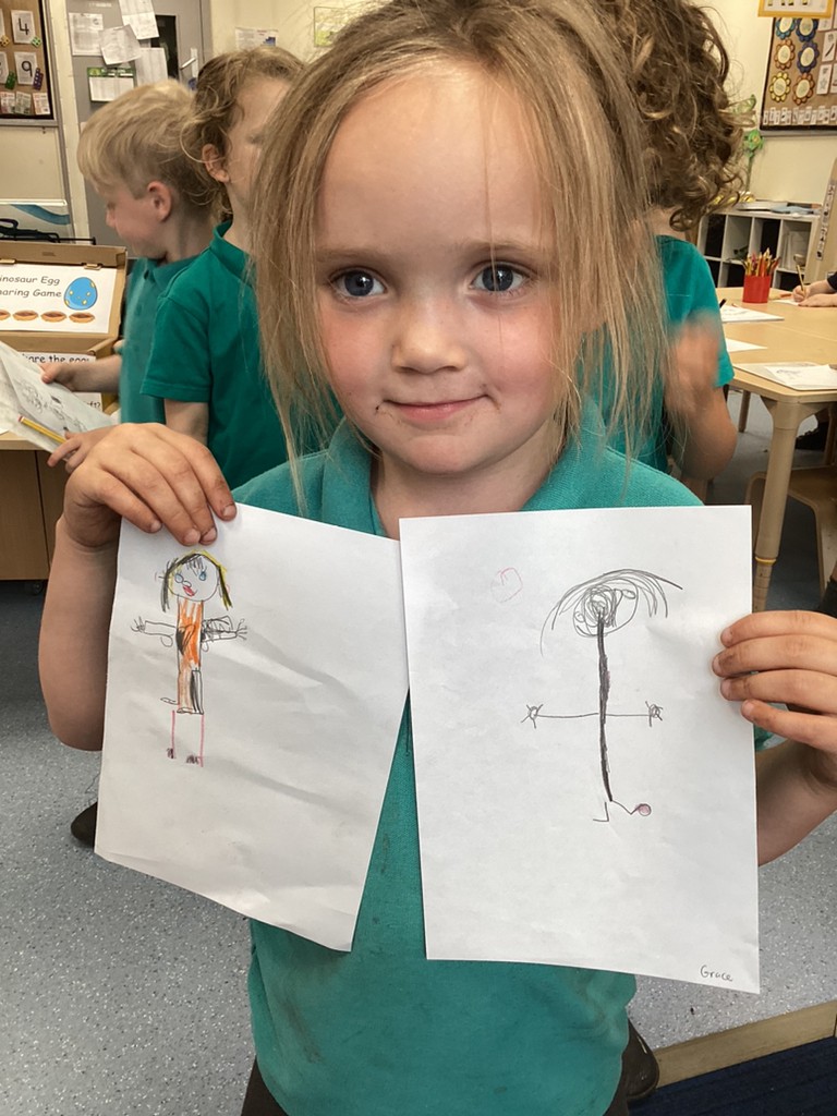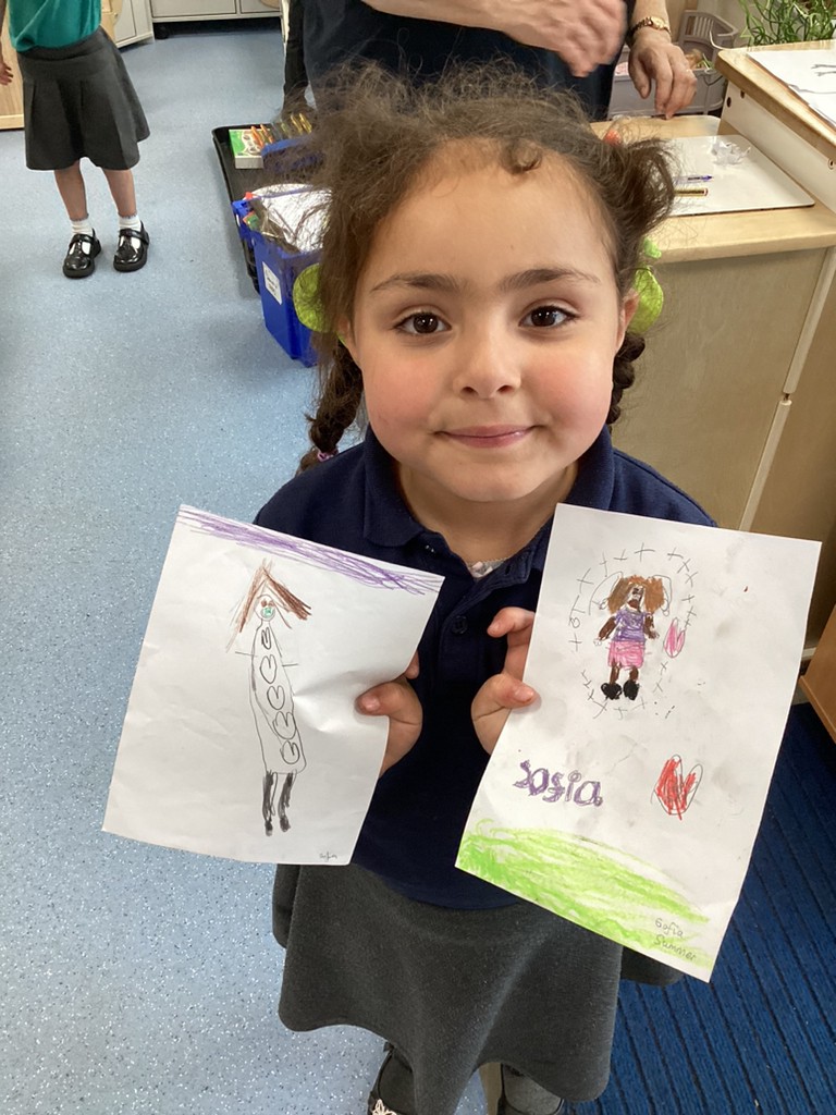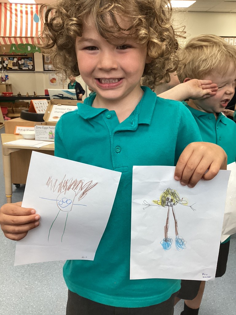 Also this week, the children used mirrors to carefully draw a self-portrait. It was wonderful to compare these to the self-portraits that the children drew at the start of their Reception journey and see how far their drawing skills have developed.