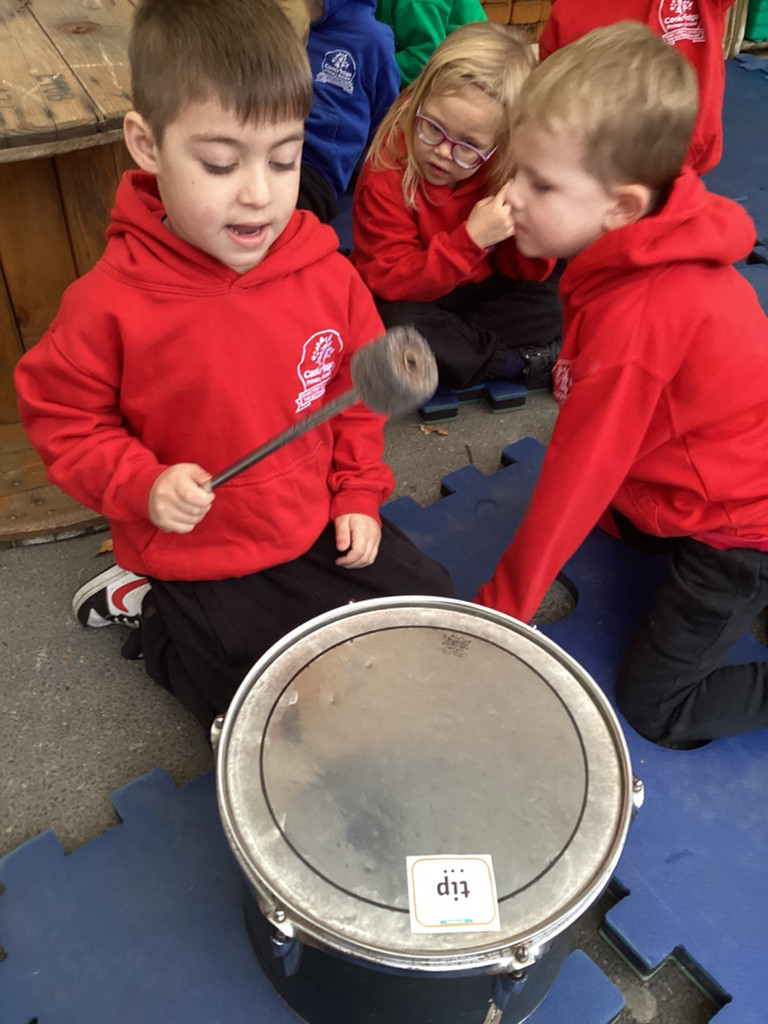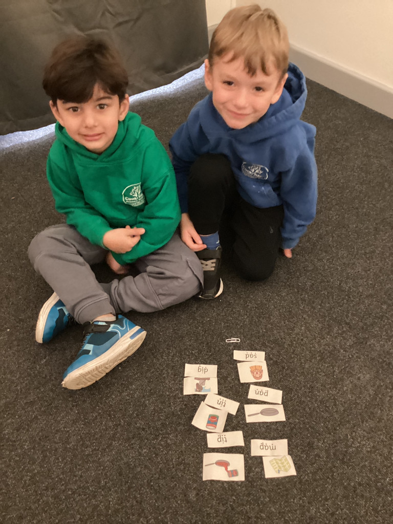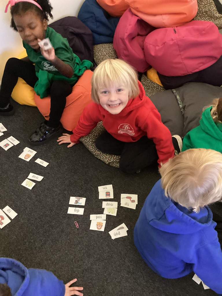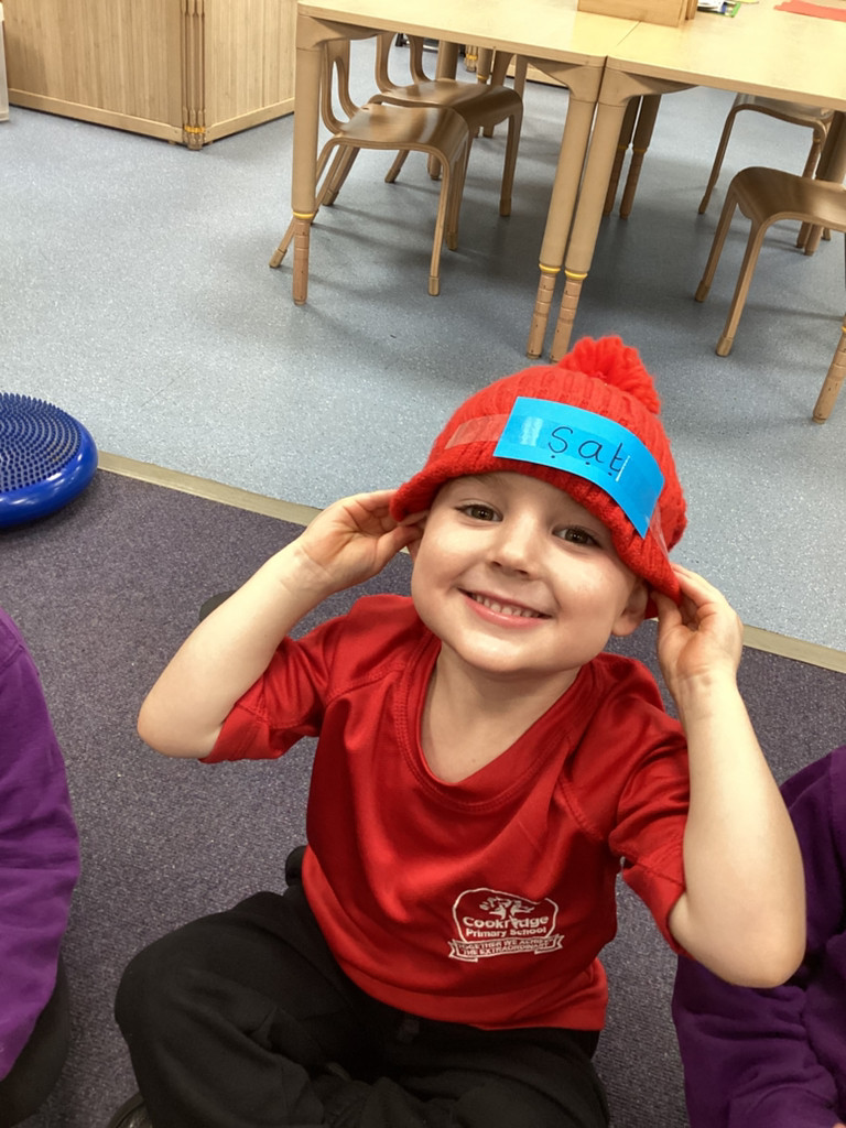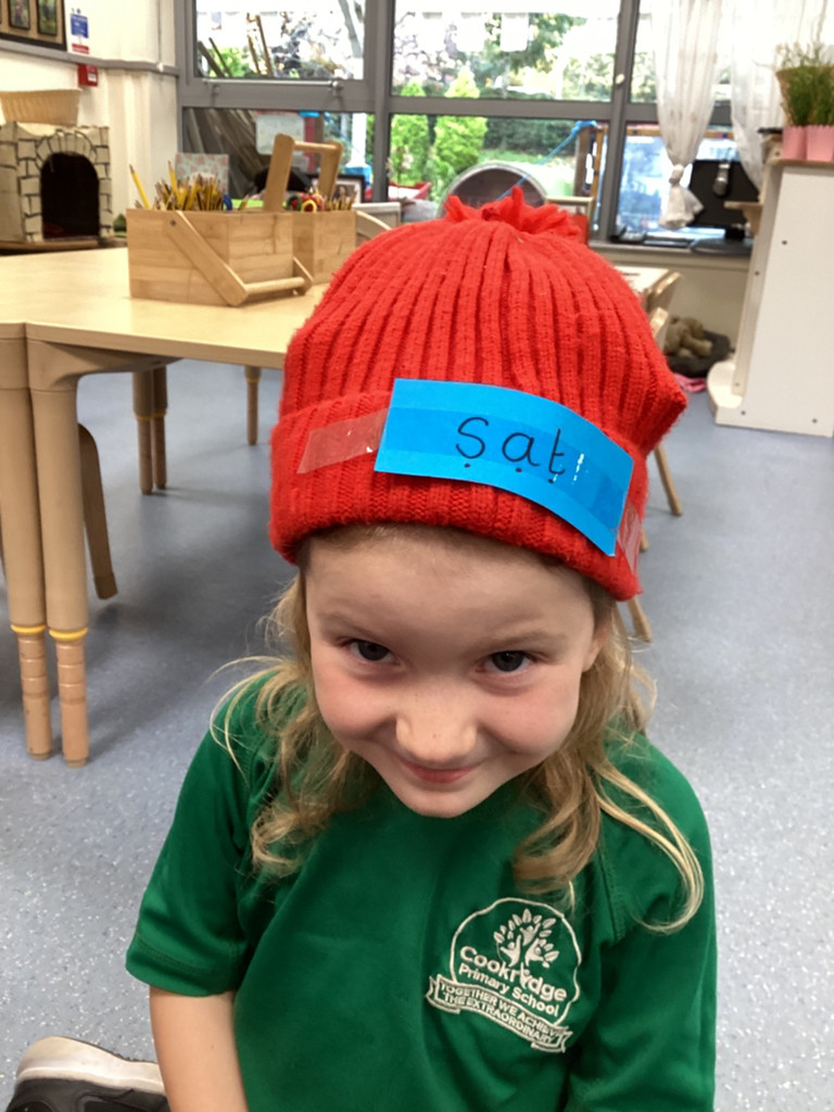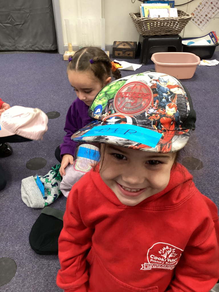 In Phonics this week, we introduced the children to three new sounds – ‘m’ (as in meatball), ‘d’ (as in drum) and ‘g’ (as in girl). We enjoyed fun activities like getting dressed in funny hats, beating a drum to help rehearse how to blend sounds to read words and also read and then match labels and pictures.