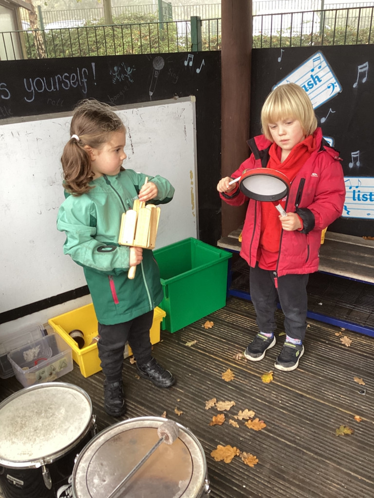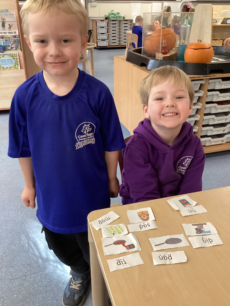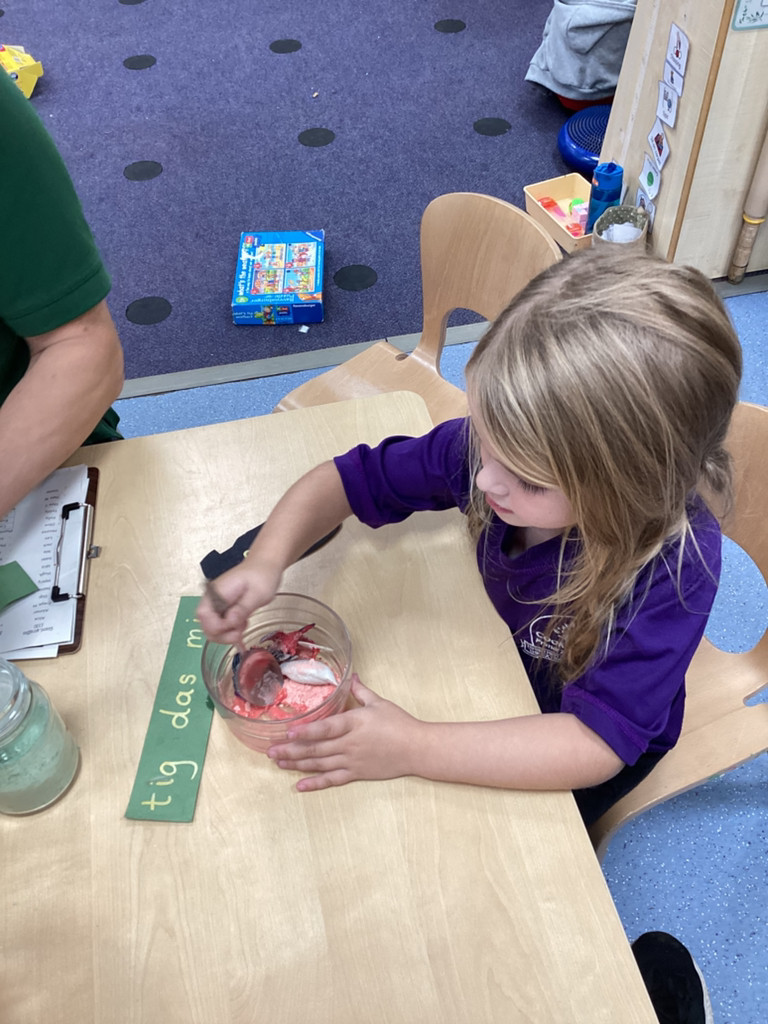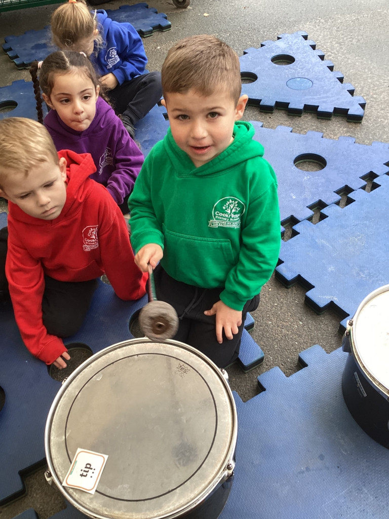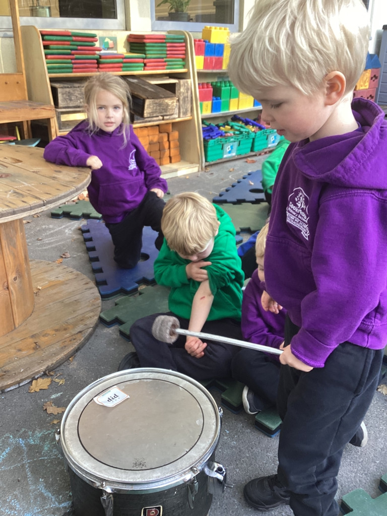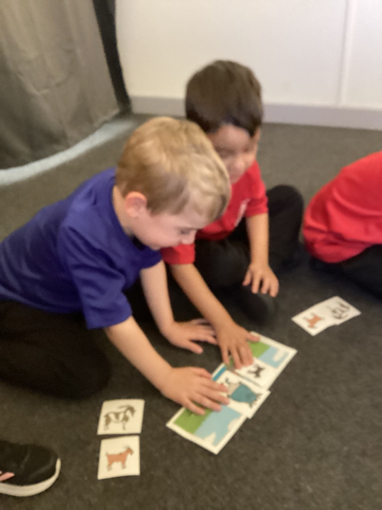 In Phonics this week, we introduced the children to three new sounds – ‘m’ (as in meatball), ‘d’ (as in drum) and ‘g’ (as in girl). We enjoyed fun activities like getting dressed in funny hats, beating a drum to help rehearse how to blend sounds to read words and also read and then match labels and pictures.