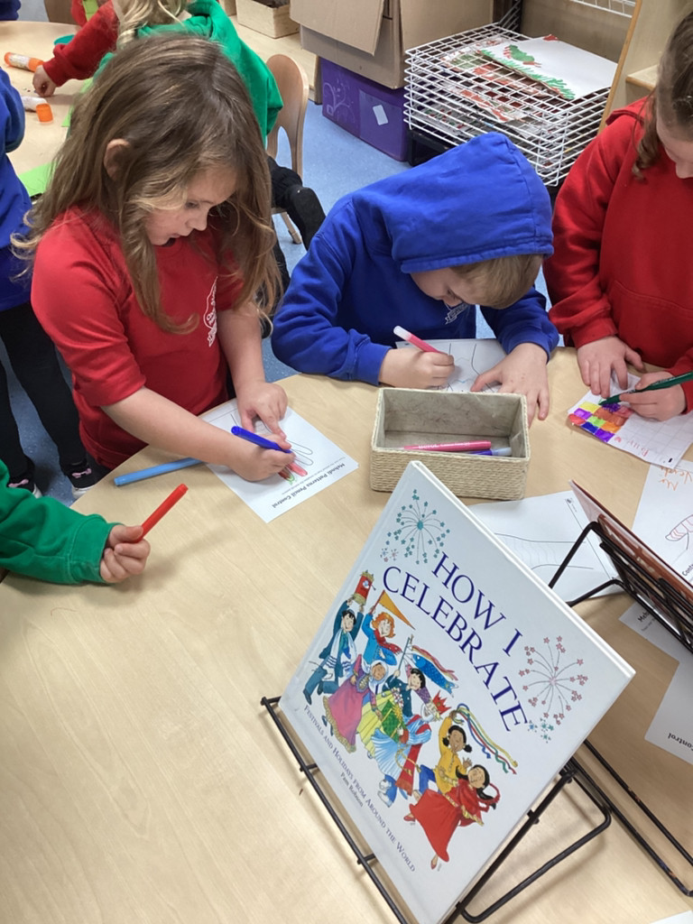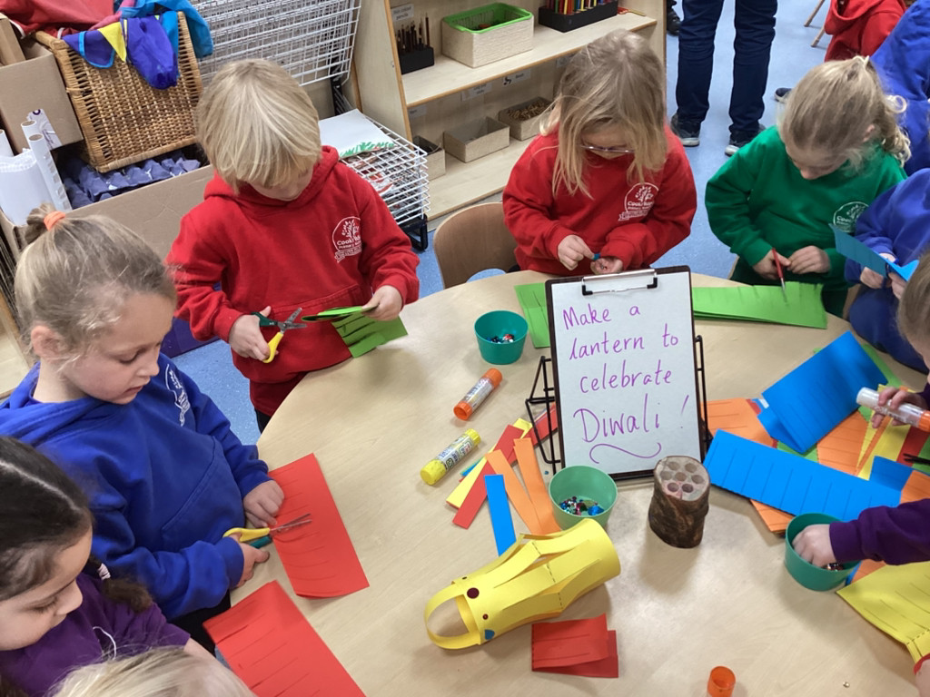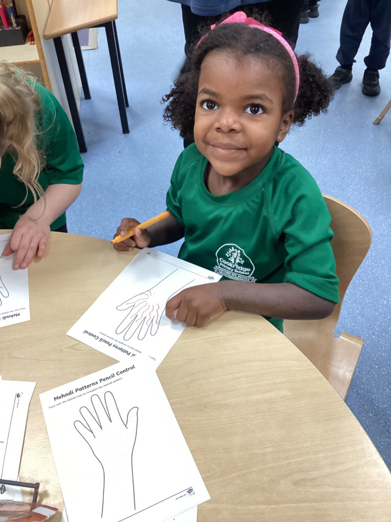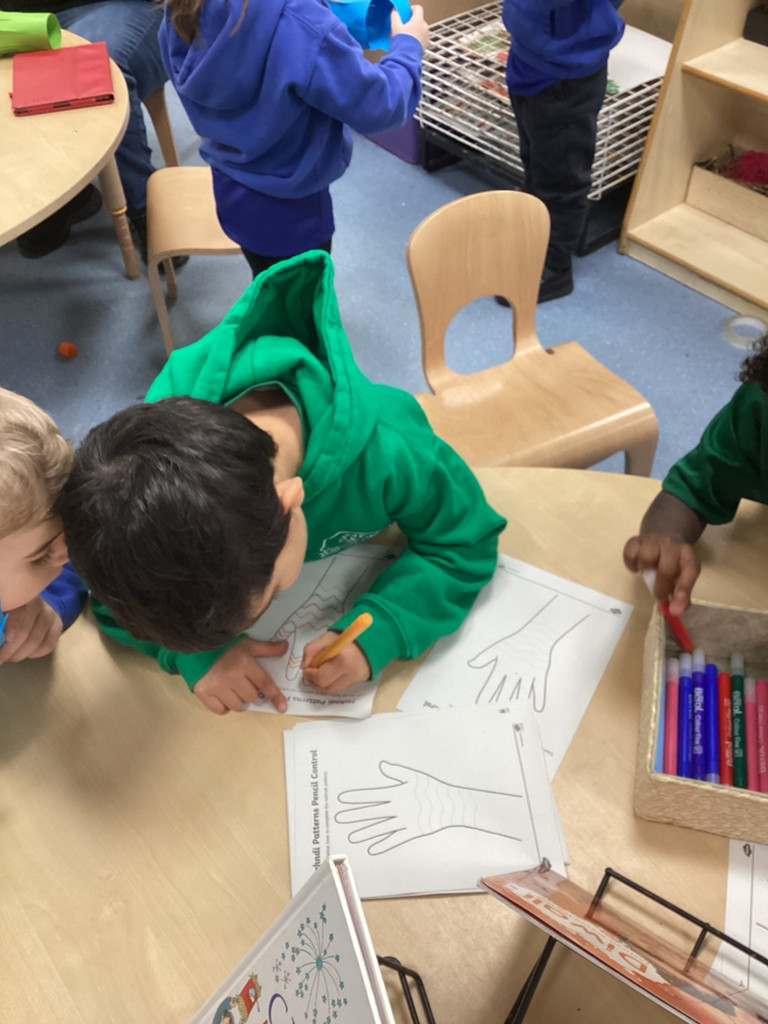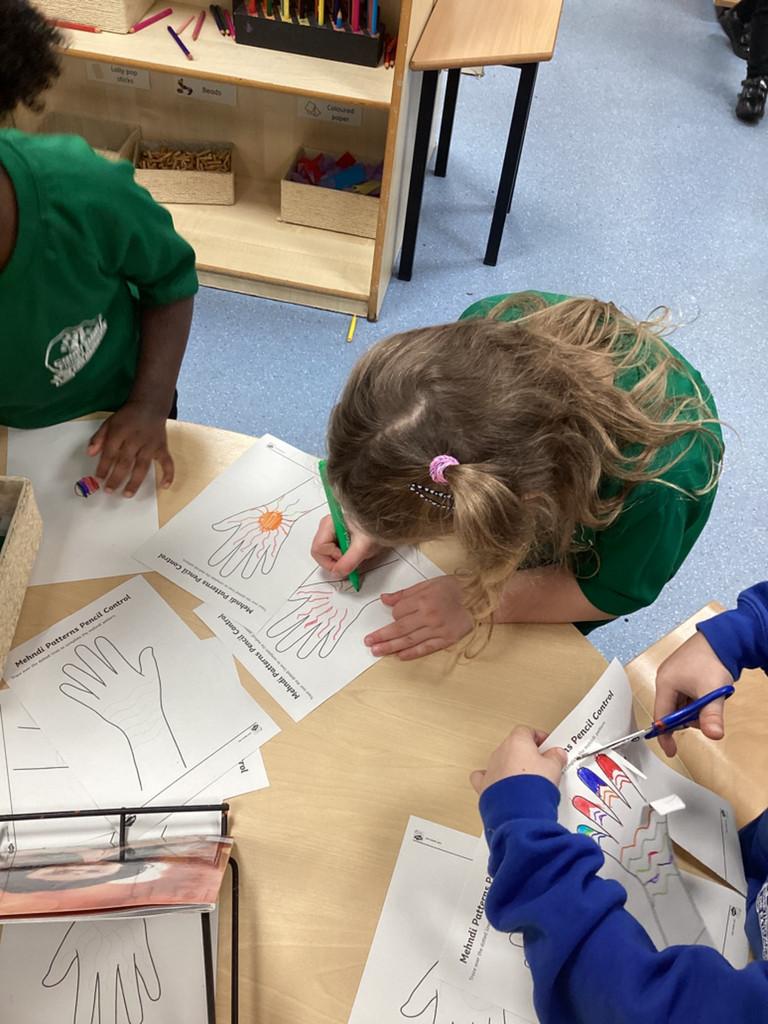 On Monday we celebrated the Hindu festival of Diwali. After learning a bit about what Diwali is and why it is celebrated, we watched a video to see how a young girl celebrated with her family. The children were then encouraged to celebrate this Festival of Light by making a paper lantern, or by using carefully penmanship to make mehndi patterns on hands. Outdoors, some children chose to use some beautiful coloured leaves to make rangoli-inspired patterns to welcome in the goddess of wealth during Diwali. Mr Verdi has put two lines on the Euromillions in anticipation!