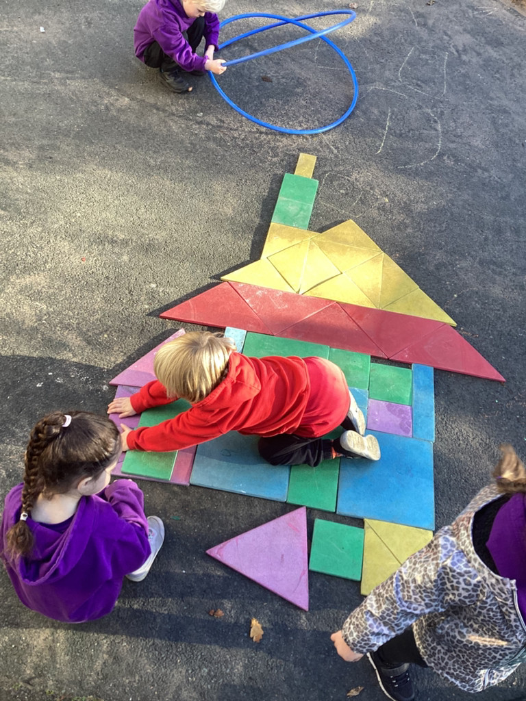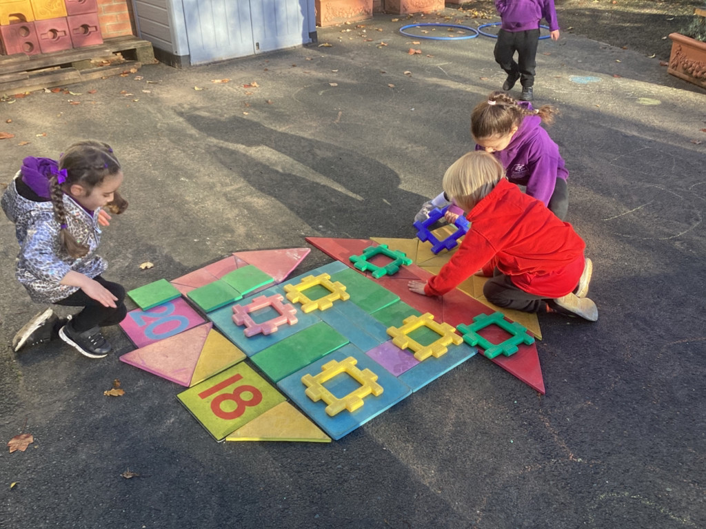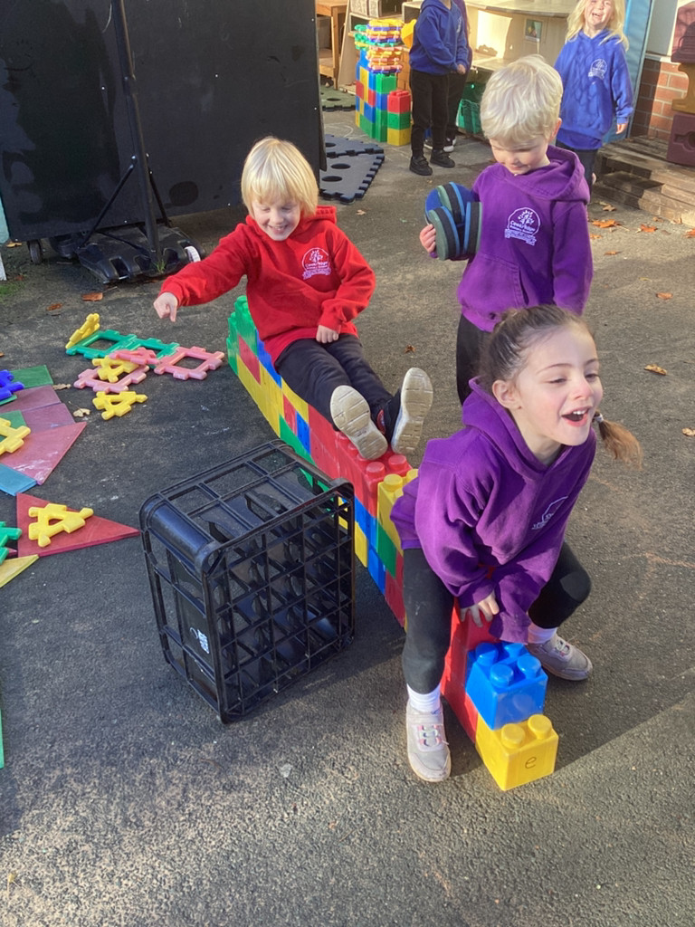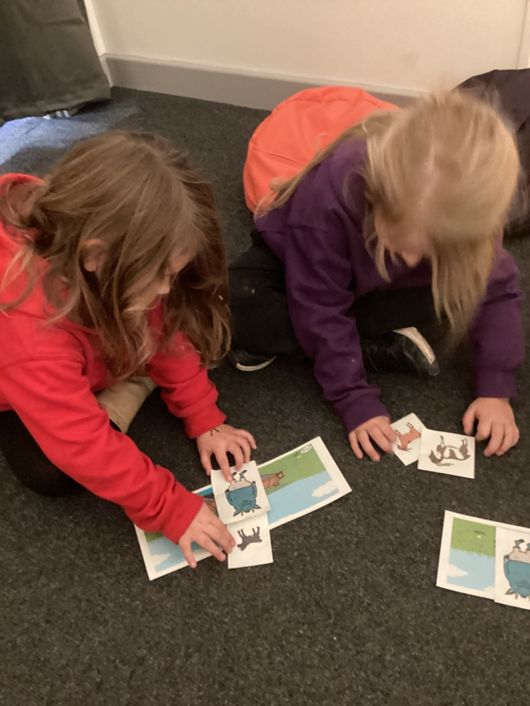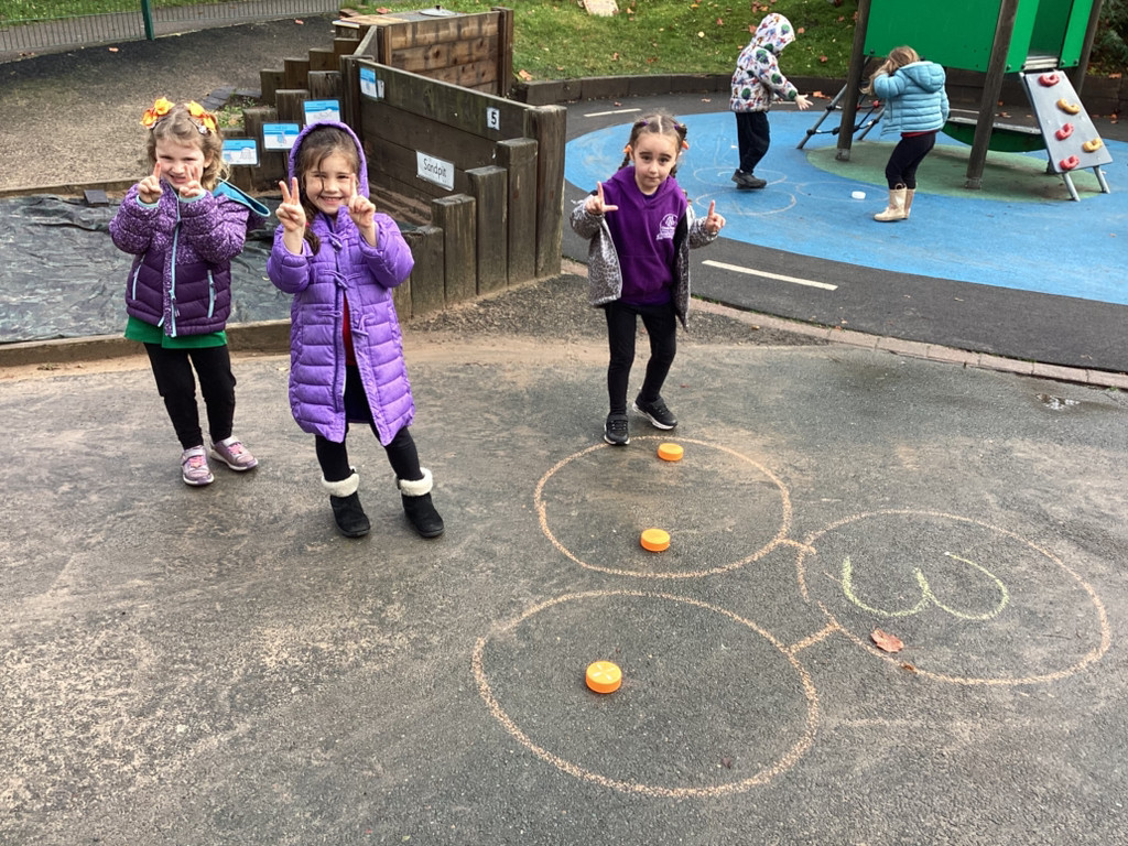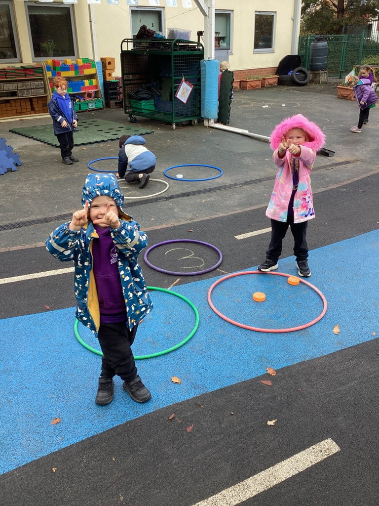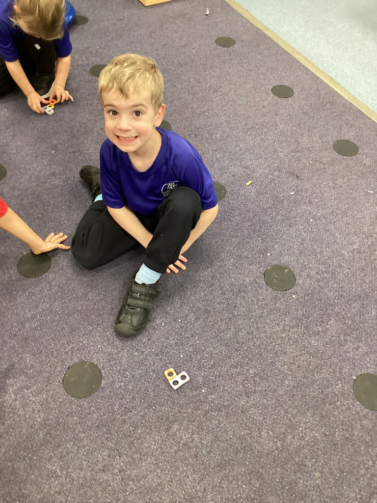 Our maths sessions have been focused on exploring numbers 1, 2 and 3. The children have used part part-whole models to investigate the make up of these numbers with numicon and bean bags, as well as retelling the story of the Three Billy Goats Gruff and discussing how many goats are on each side of the bridge at different points in the story.