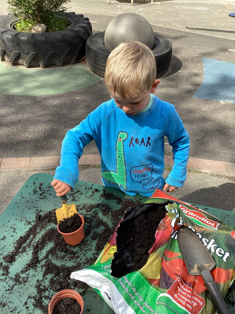 Spring has well and truly sprung and officially we’ve now started the Summer Term, so quite rightly the sun has had his hat on this week! As ever, when the weather is good the children love spending time in our outdoor areas – sand, water, mud… all good!