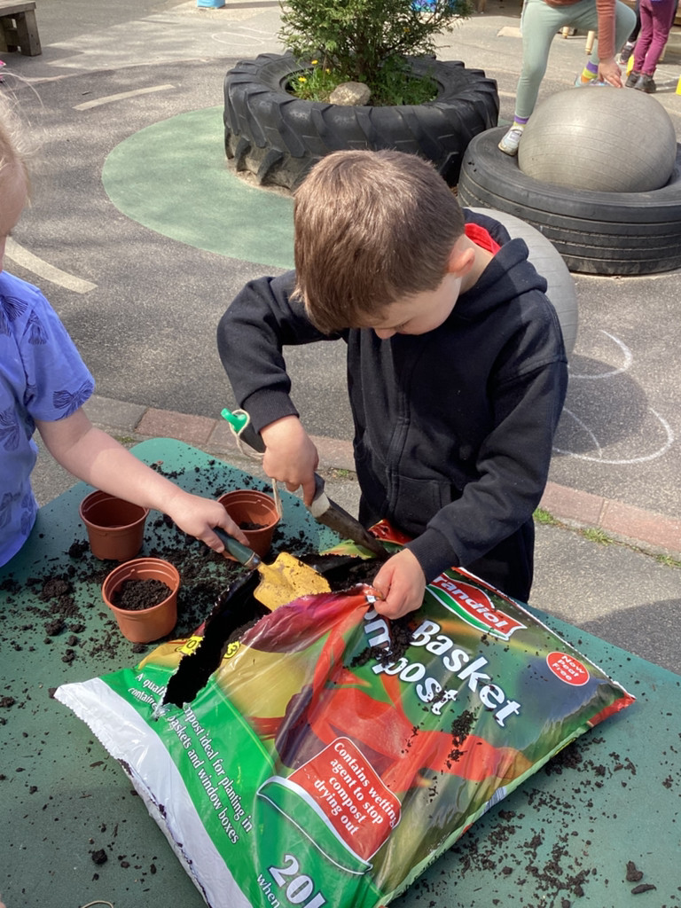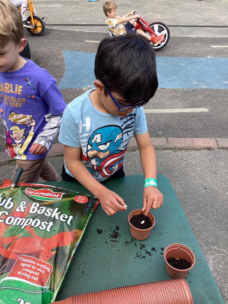 Welcome back! We hope everyone had a great Easter break – it has been lovely to see all the children back and ready for a new term. Our new topic is ‘Let It Grow!’ and we’ve dived straight into it with a week of beans! We read Jack and the Beanstalk at the start of the week and the children have enjoyed acting out the story themselves using various props. Many chose to paint their own beanstalks with potato-print leaves, while some took the maths challenge of reading two-digit numbers and counting out the matching number of leaves to stick on a beanstalk.