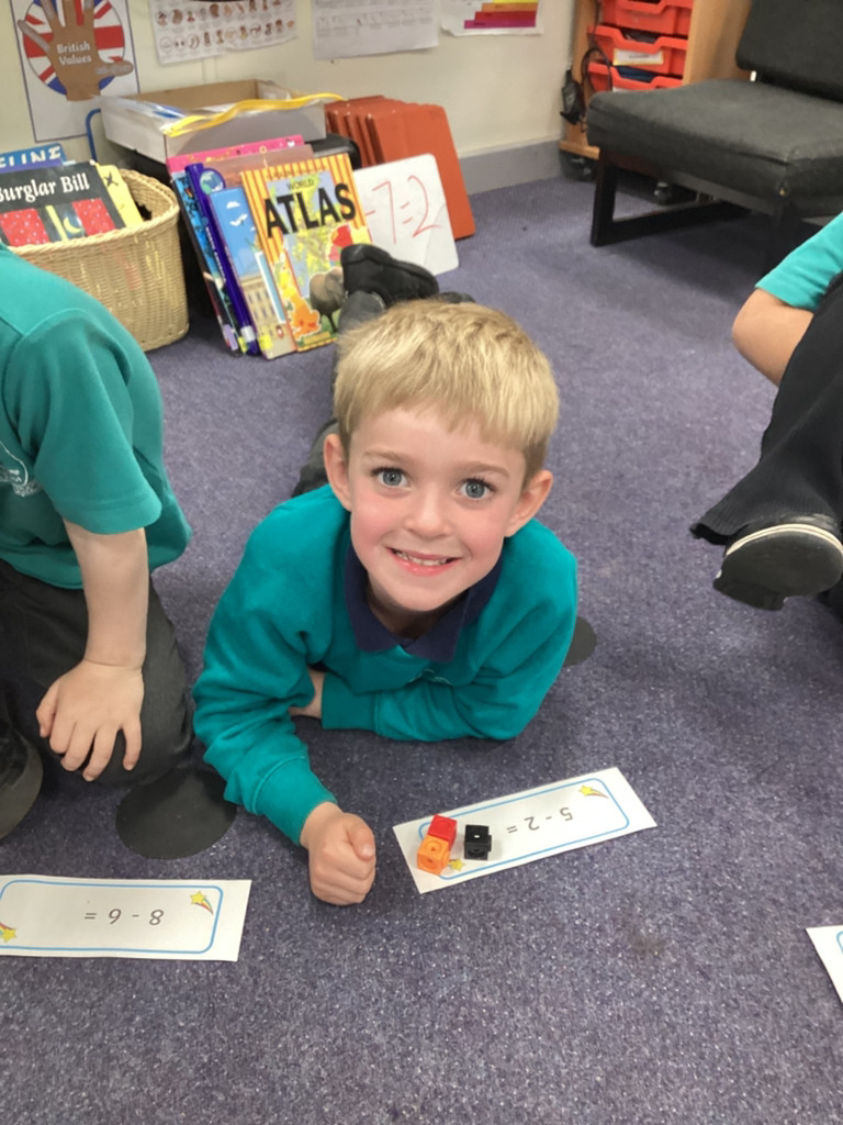 In Maths this week, we have been looking at the concept of subtraction. The children have been investigating this concept practically by ‘taking away’ and counting back on number-lines as well as building towers.