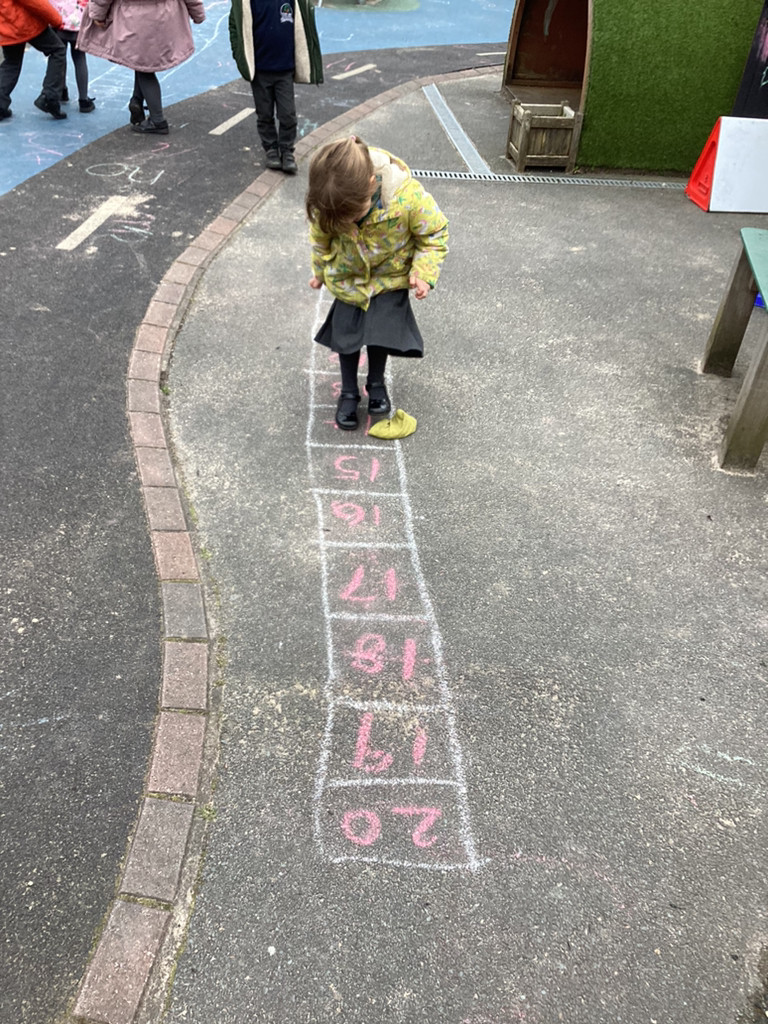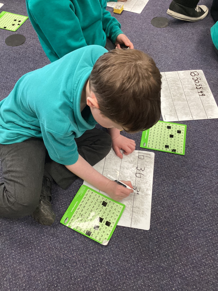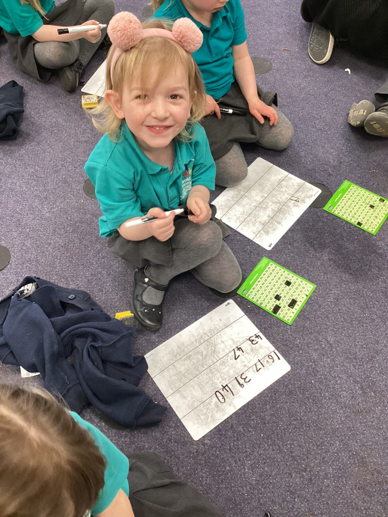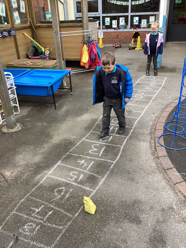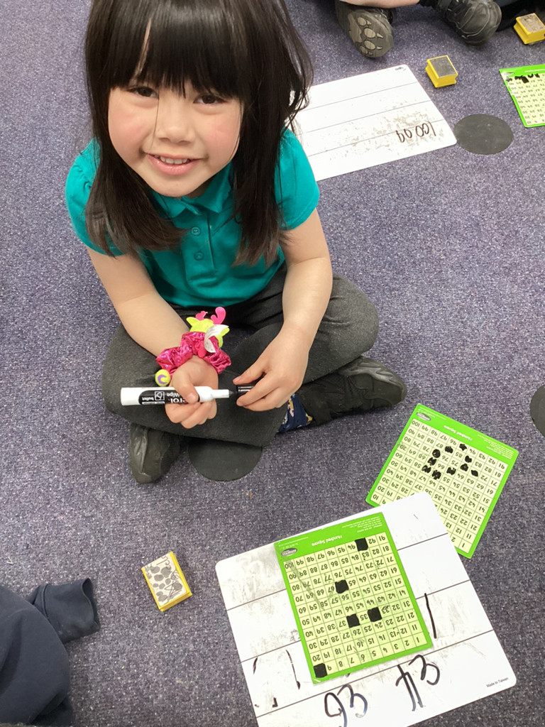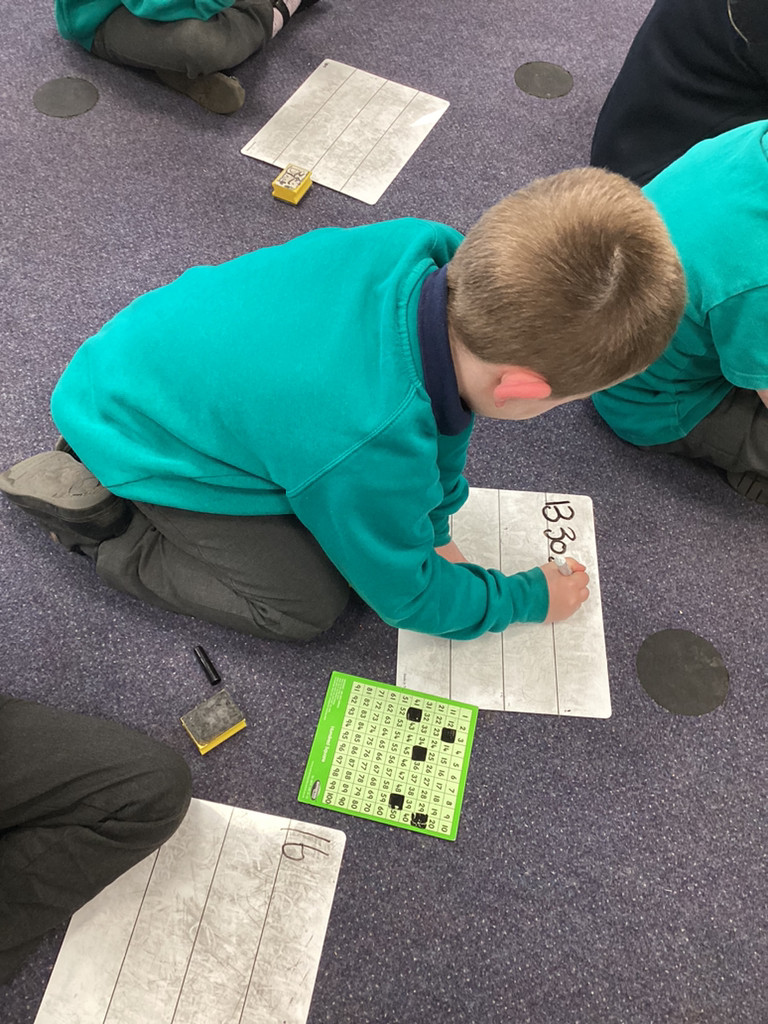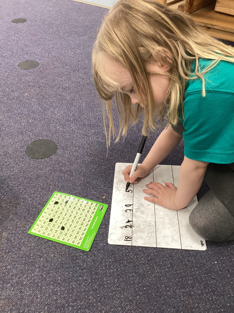 Our maths work this week, has been still focused on counting beyond ten and exploring the make of numbers 11-50. There has been lots of fun activities and opportunities to investigate these numbers, including bean-bag throwing along number-lines and looking at patterns in the number system as we explore larger numbers.