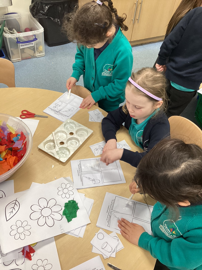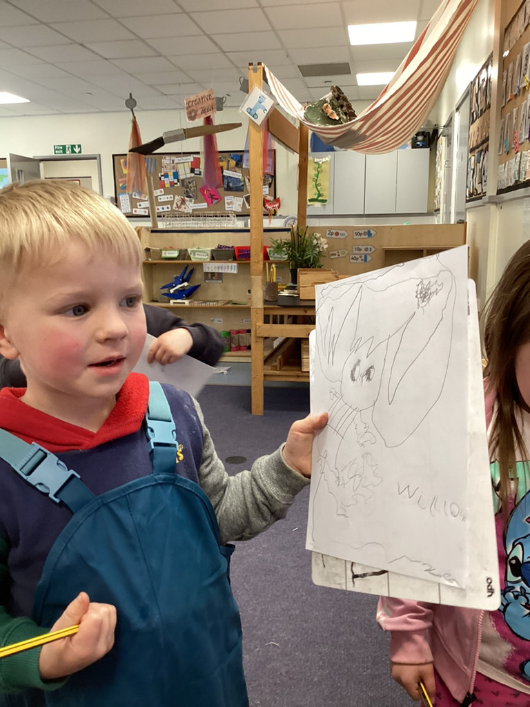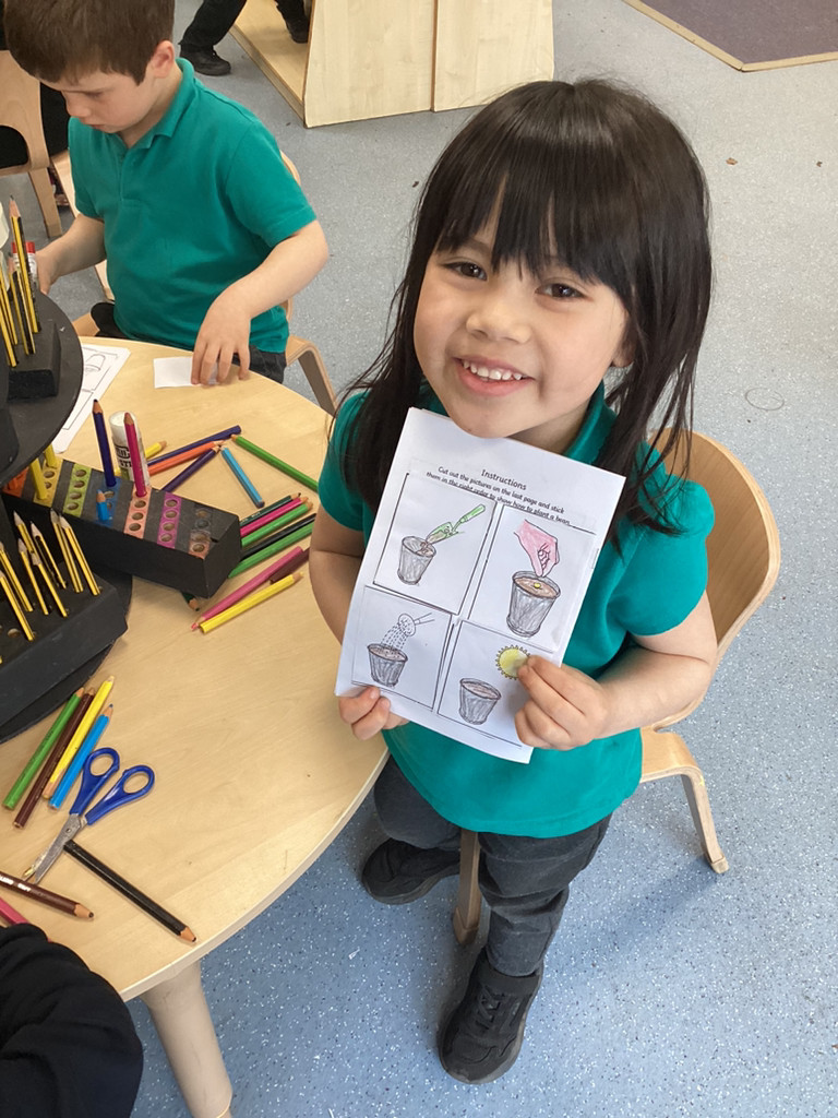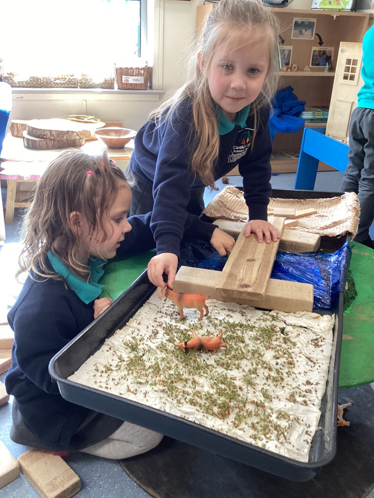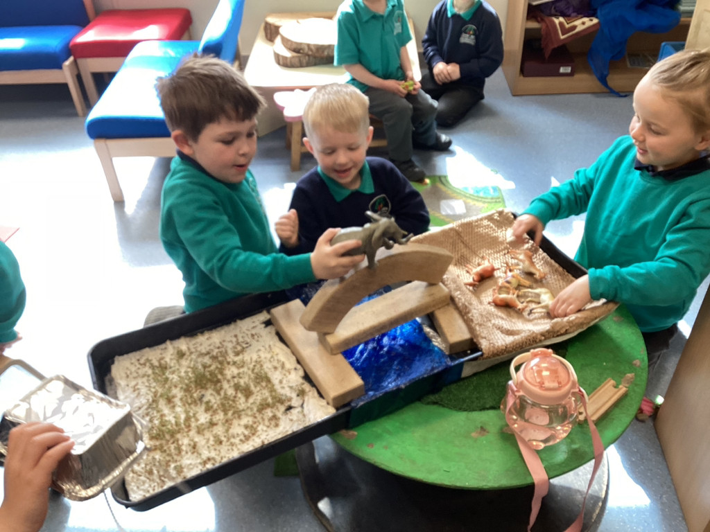 It’s been a full and fun-packed week again in Reception! We have continued our topic of ‘Let it Grow’ by tending to our plants and checking on their progress, despite the Spring weather proving reliably unreliable. The children have added to their bean diary booklets to record the progress since planting their bean last week, and we are starting to see small seedlings from the radish seeds we planted outside too. We also built a small-world play set up to roleplay the story of the Three Billy Goats Gruff. To create a meadow of ‘fresh green grass’ the children all helped to sprinkle cress seeds and helped to keep them watered all week as they sprouted. The children have then been tasked with building a bridge to help the goats cross the river (and avoid the troll!) to reach the new growth! Of course these were toy goats, our Cookridge goats Doughnut and Nigel did make a cameo on our nature walk during Thursday’s Forest Schools session – but more of that later!
