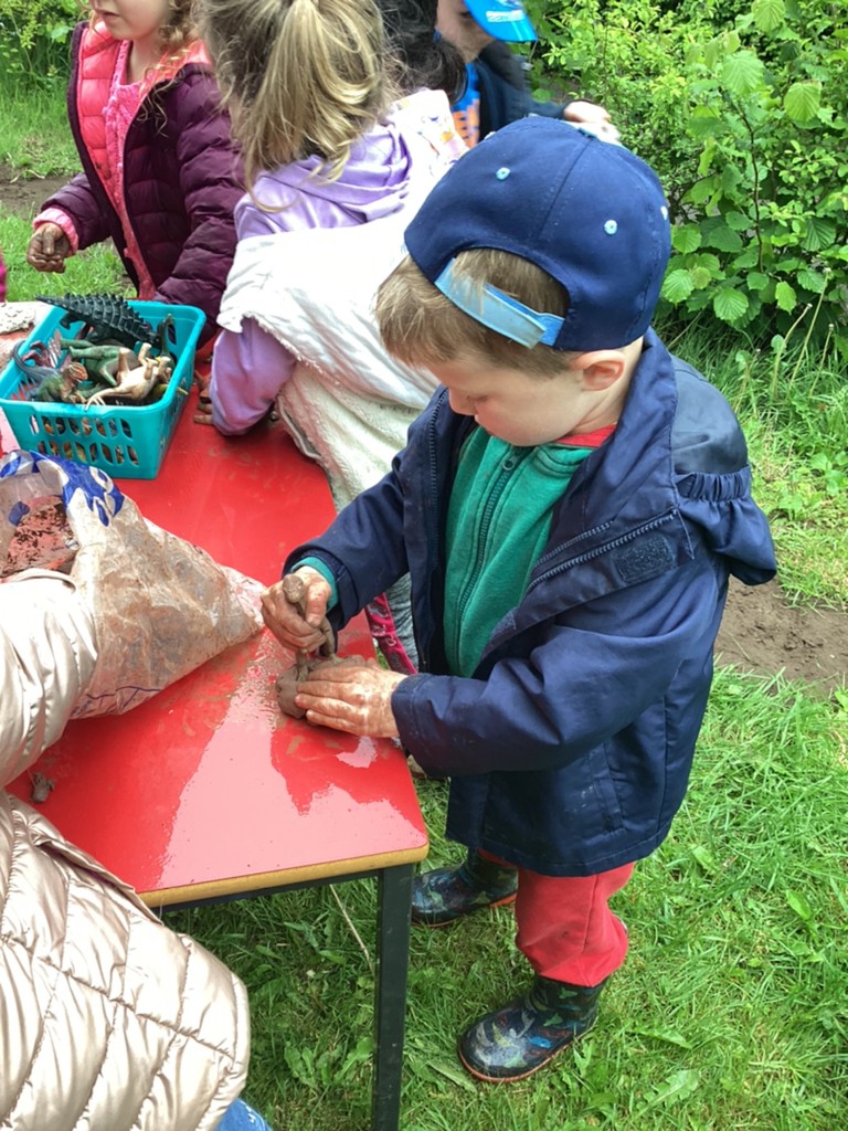 Thursday was a muddy magnificent Dino themed forest school day, with children enjoying a range of dinosaur themed activities.