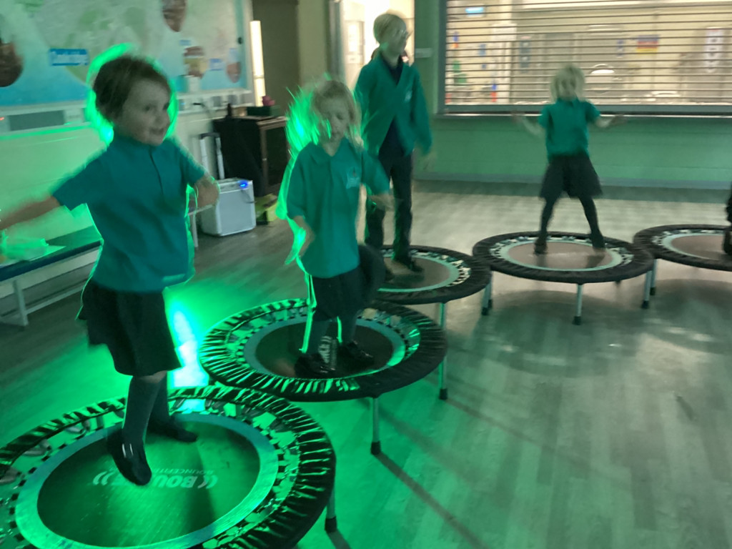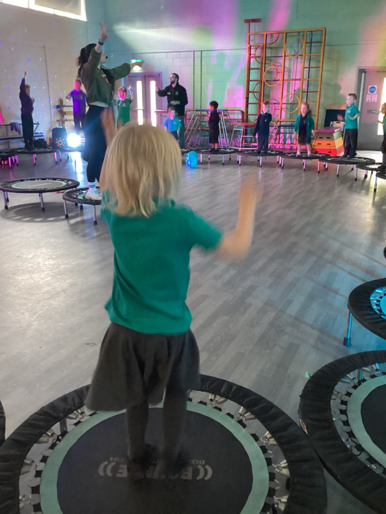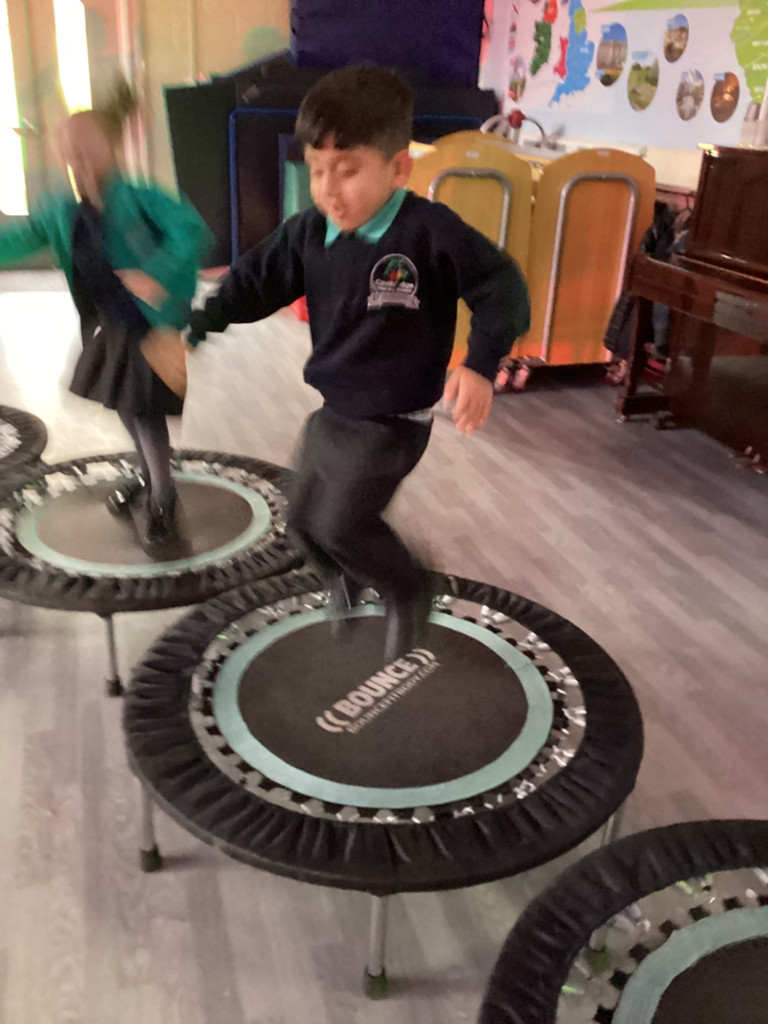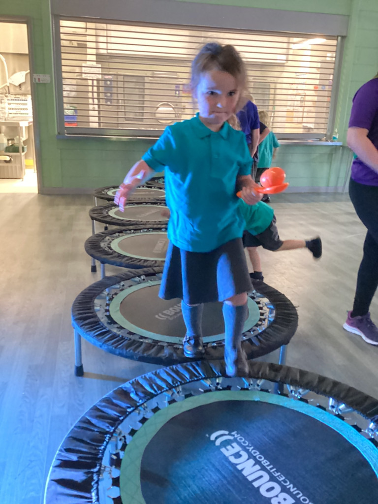 On Friday, the first group of Reception children were invited to join in a ‘Bounce!’ trampoline session in the hall. Children from across school are being offered a time with the ‘Bounce!’ team to engage in some fun exercise on their mini trampolines. Each fortnight a group of Reception children will get a session on the trampolines so if your child hasn’t been today, they shall get a turn soon.