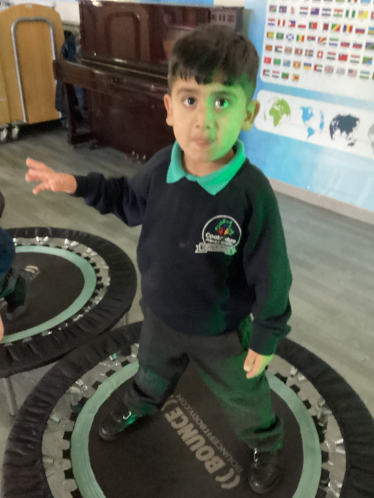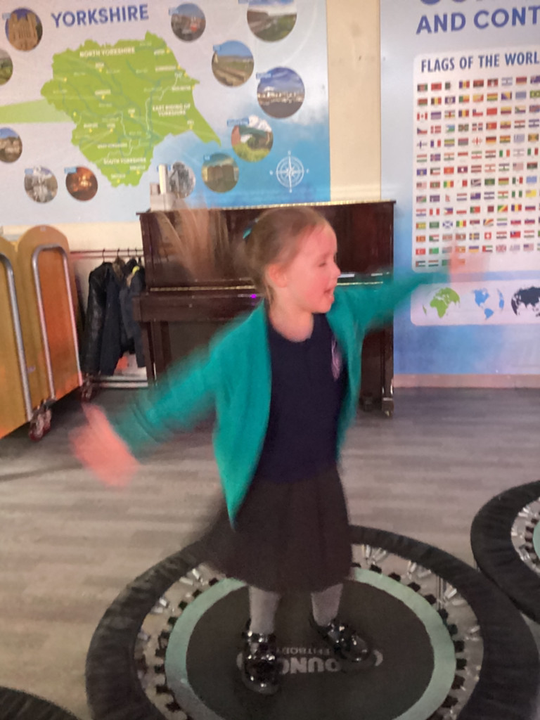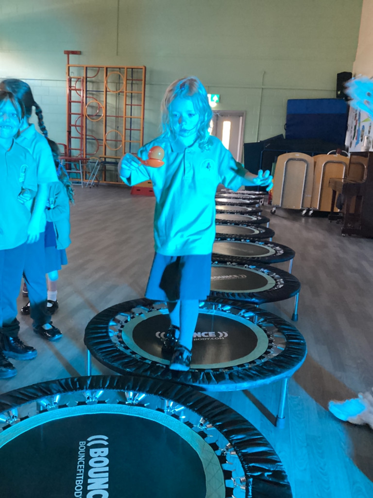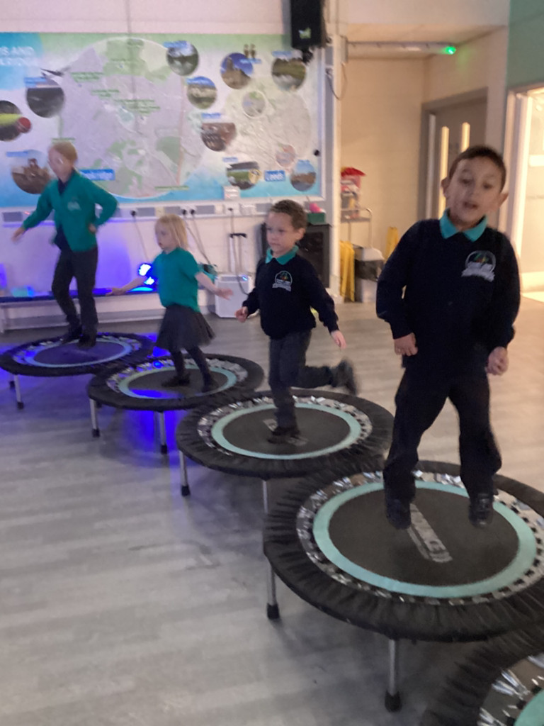 On Friday, the first group of Reception children were invited to join in a ‘Bounce!’ trampoline session in the hall. Children from across school are being offered a time with the ‘Bounce!’ team to engage in some fun exercise on their mini trampolines. Each fortnight a group of Reception children will get a session on the trampolines so if your child hasn’t been today, they shall get a turn soon.