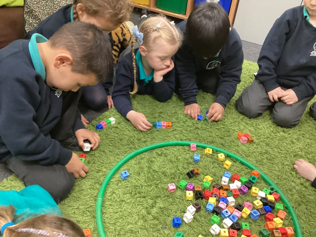 In Maths sessions this week, the children have worked in their family groups to practise thinking about how we compare amounts of objects with language such as more and fewer. To rehearse this in practical ways, the children have been comparing amounts of blocks; building towers of different heights with giant Lego blocks and acting out a story Julia Donaldson’s story ‘A Squash and a Squeeze’ by adding more animals (we had to use our imagination!) to an already crowded group.