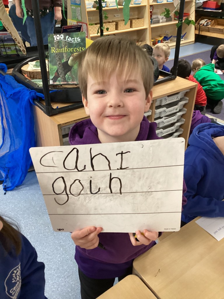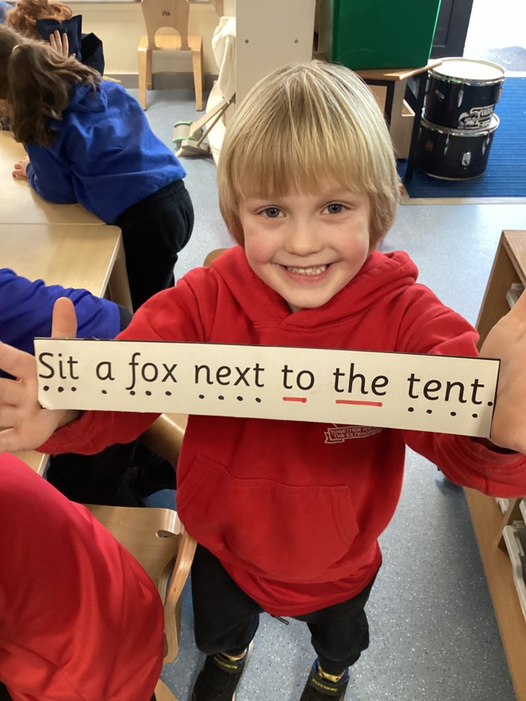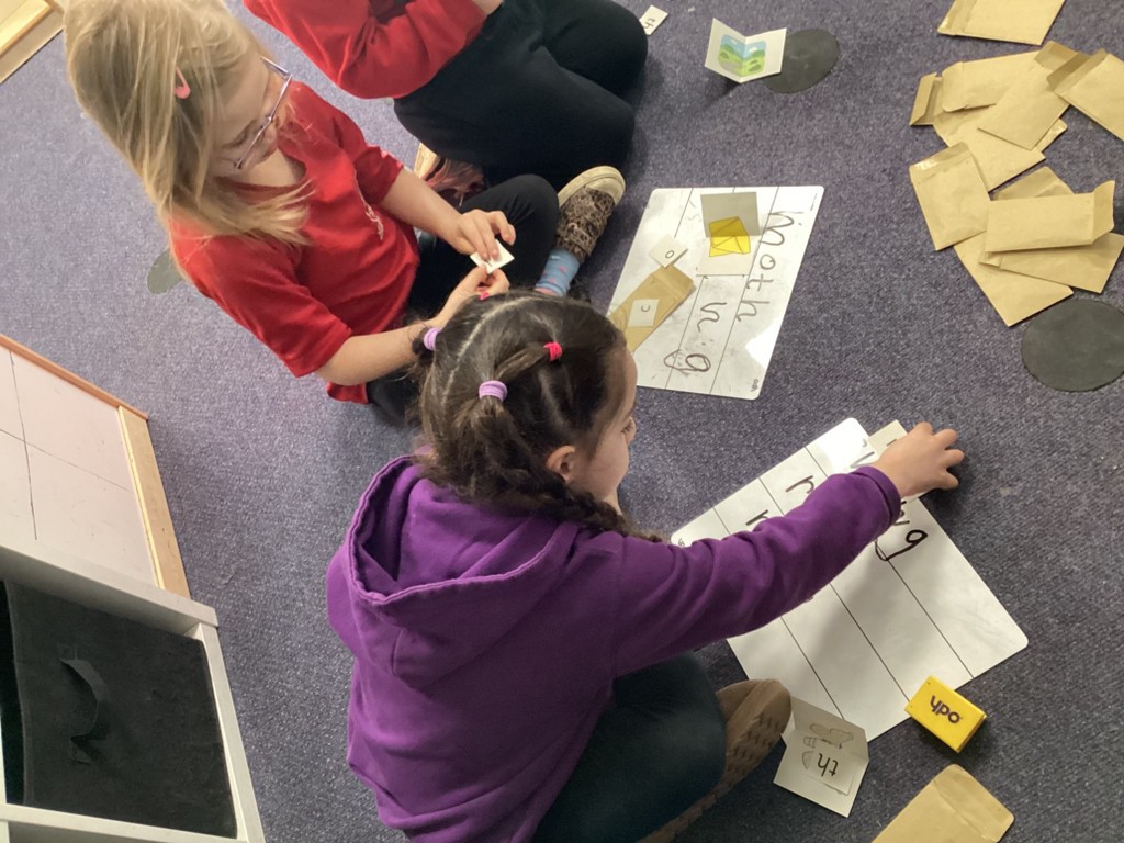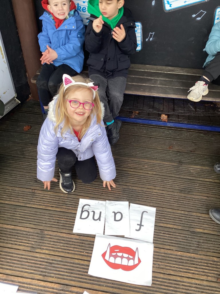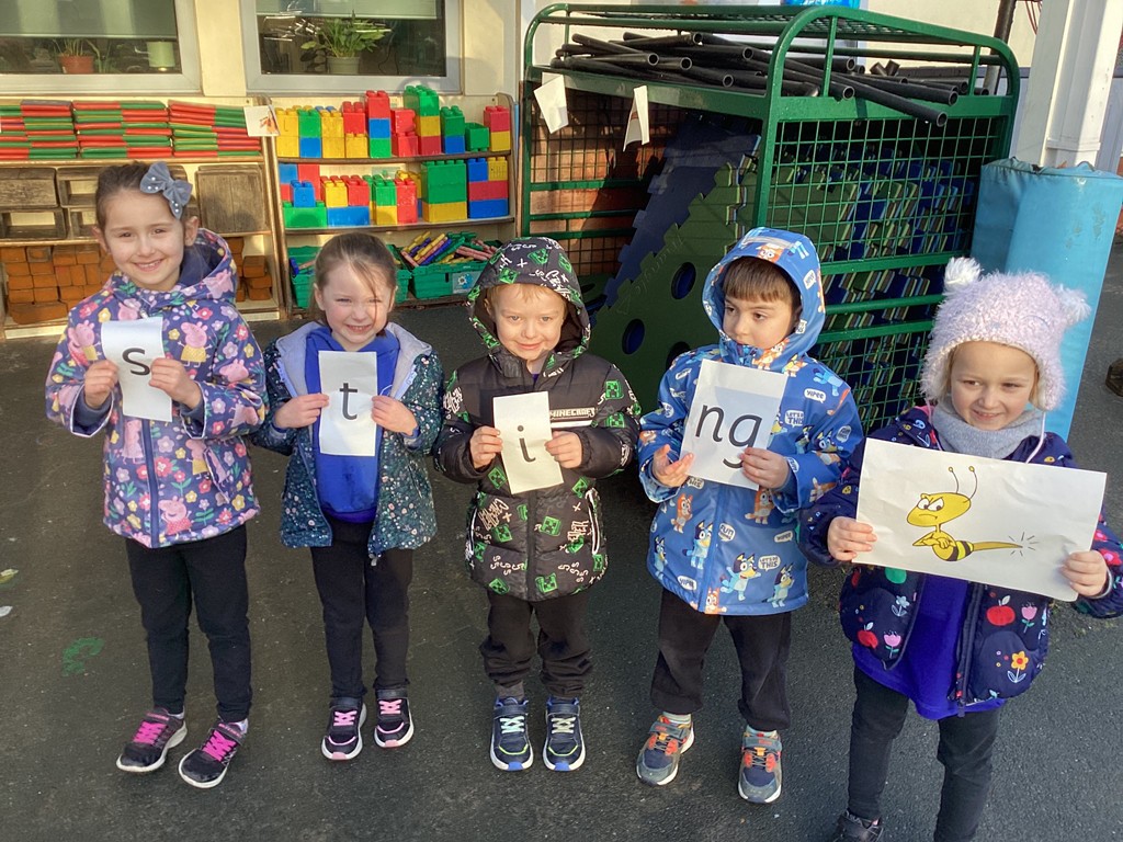 In our phonics sessions this week, we have introduced the Phase 3 digraphs ‘ng’ (ring) th (moth) and th (feather). The digraphs (where two letters together make one sound) can appear at the beginning, in the middle or at the end of words, so the children need to be able to recognise them and the sounds they make. For each of these digraphs the children have rehearsed recognising them, writing them accurately and reading them within words and sentences. The children read words carefully and matched the to corresponding pictures and took to their writing books to practise spelling out words featuring the new digraphs. Most fun of all however was the game of ‘Thing in a Ring’ where players were tasked to throw a ‘thing’ into a ring in order to win letters for their team. When they had gathered enough letters the team had to arrange them to make words featuring the ‘ng’ digraph and then find the matching picture.