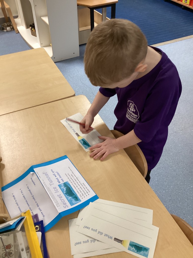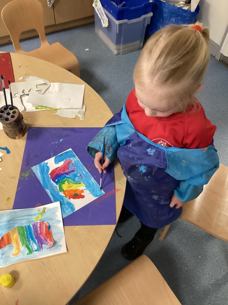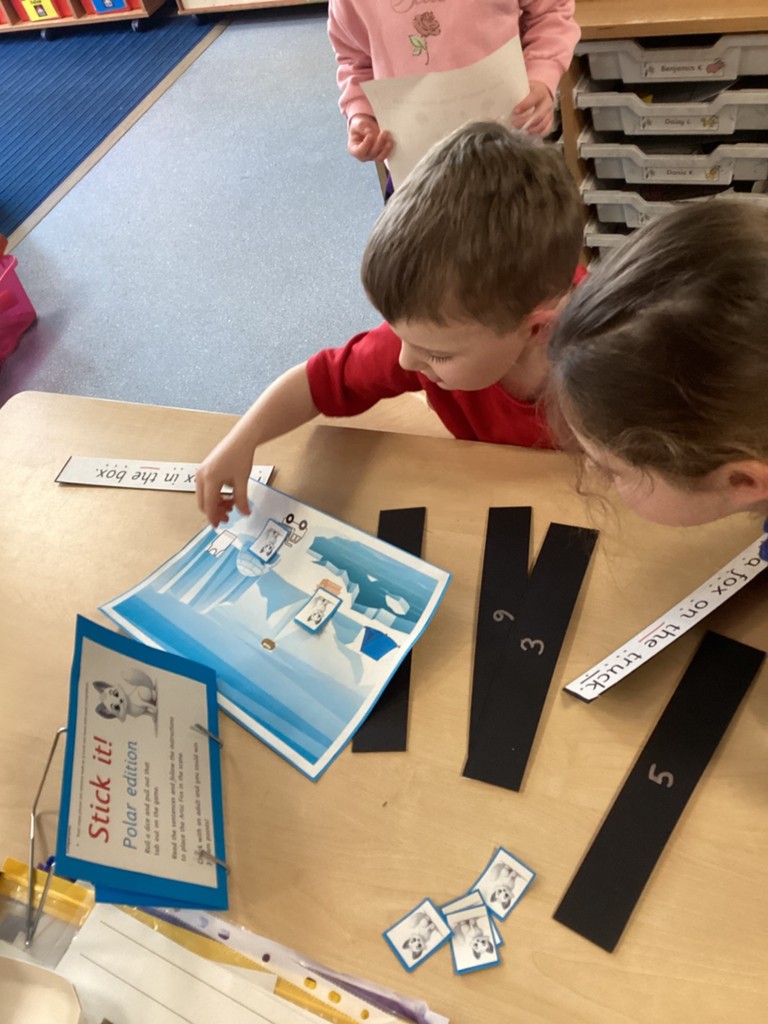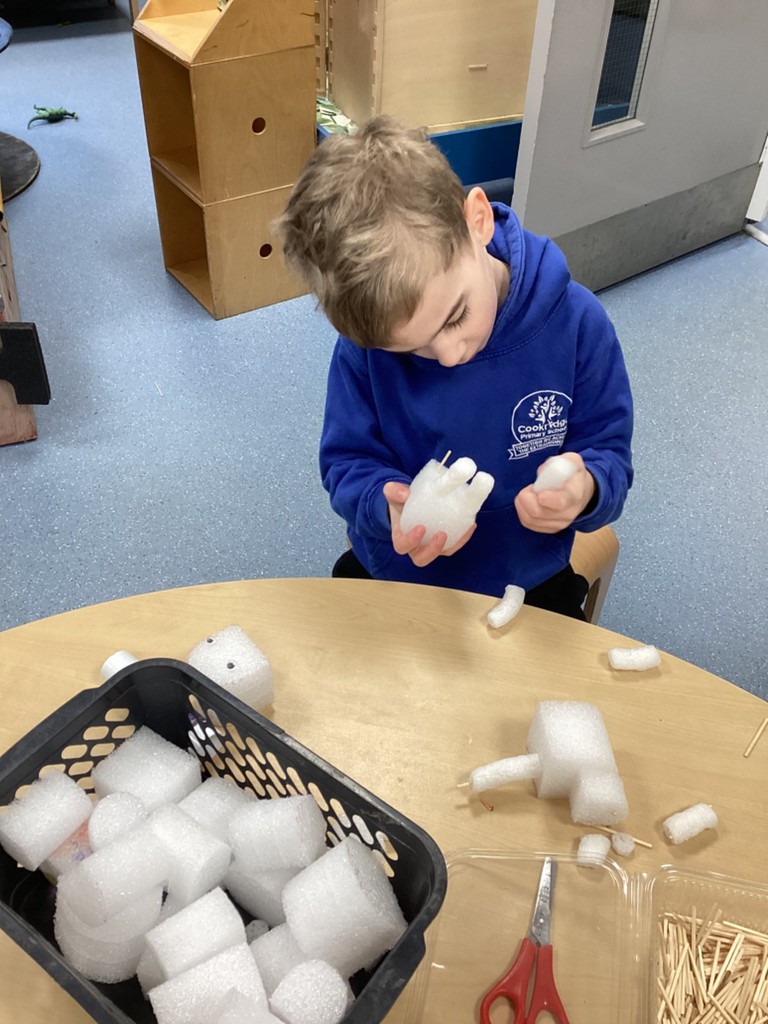 Brrrrr! It’s been a suitably chilly week for our Amazing Animals topic to take in the polar regions. We spent time exploring the north and south pole on Google Earth to see how the landscapes contrast with our own. We took a look at some of the animals that live in the Arctic circle, such as polar bears, walruses, huskies and Arctic foxes and how they are adapted to living in such harsh freezing conditions. We also explored the idea of camouflage and how it helps both predator and prey as we enjoyed sharing the story ‘Rainbow Bear’ by Michael Morpurgo. Following this the children loved getting to build their own polar bears and paint their own Rainbow bears in the creative area. Many children enjoyed a game of placing Arctic foxes within a polar scene by following instruction they read. We encouraged the children to practice their writing this week with an enticing ice tunnel in the middle of our central display. To go within and find out which mystery animals could be found on its walls, the children had to first write a request on their whiteboards and then if they could write down what they saw in the tunnel they could earn points for their colour team.