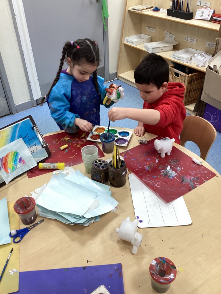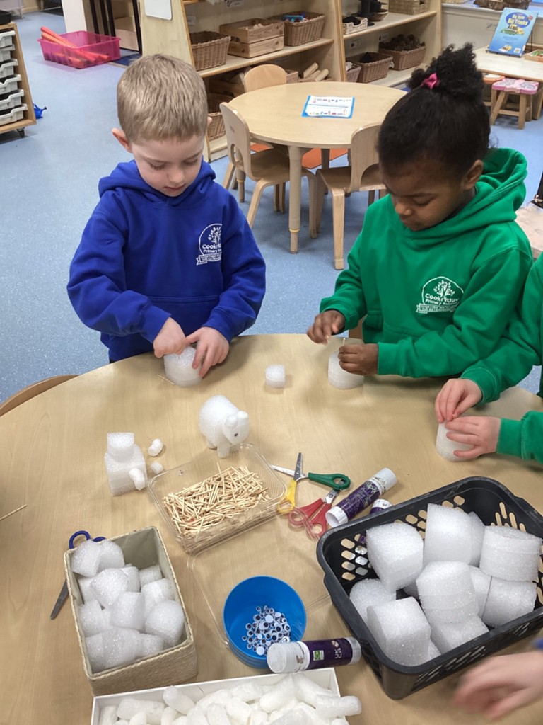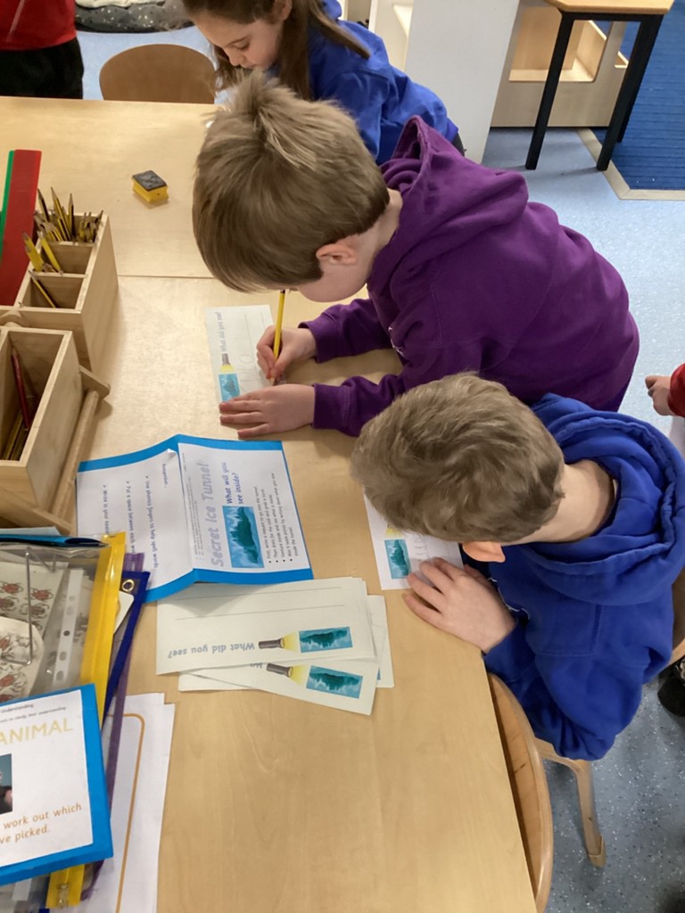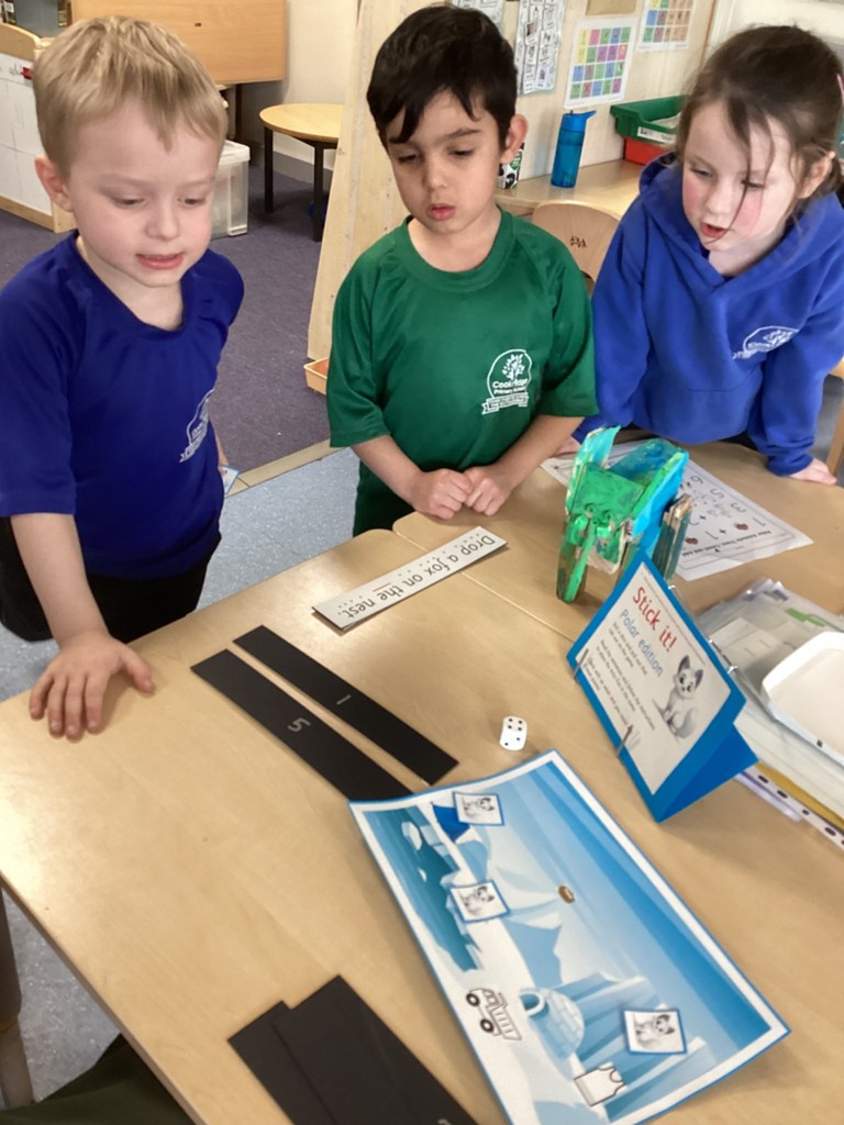 Brrrrr! It’s been a suitably chilly week for our Amazing Animals topic to take in the polar regions. We spent time exploring the north and south pole on Google Earth to see how the landscapes contrast with our own. We took a look at some of the animals that live in the Arctic circle, such as polar bears, walruses, huskies and Arctic foxes and how they are adapted to living in such harsh freezing conditions. We also explored the idea of camouflage and how it helps both predator and prey as we enjoyed sharing the story ‘Rainbow Bear’ by Michael Morpurgo. Following this the children loved getting to build their own polar bears and paint their own Rainbow bears in the creative area. Many children enjoyed a game of placing Arctic foxes within a polar scene by following instruction they read. We encouraged the children to practice their writing this week with an enticing ice tunnel in the middle of our central display. To go within and find out which mystery animals could be found on its walls, the children had to first write a request on their whiteboards and then if they could write down what they saw in the tunnel they could earn points for their colour team.