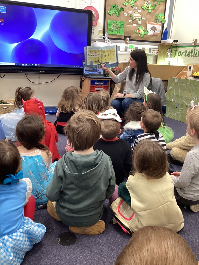 After finishing our kebabs, we went down to the hall to browse the different books available and chose a special new book to take home. When we came back upstairs we had our final surprise of the day, a mystery reader! The children loved hearing a story from someone new so thank you very much to our special guest.