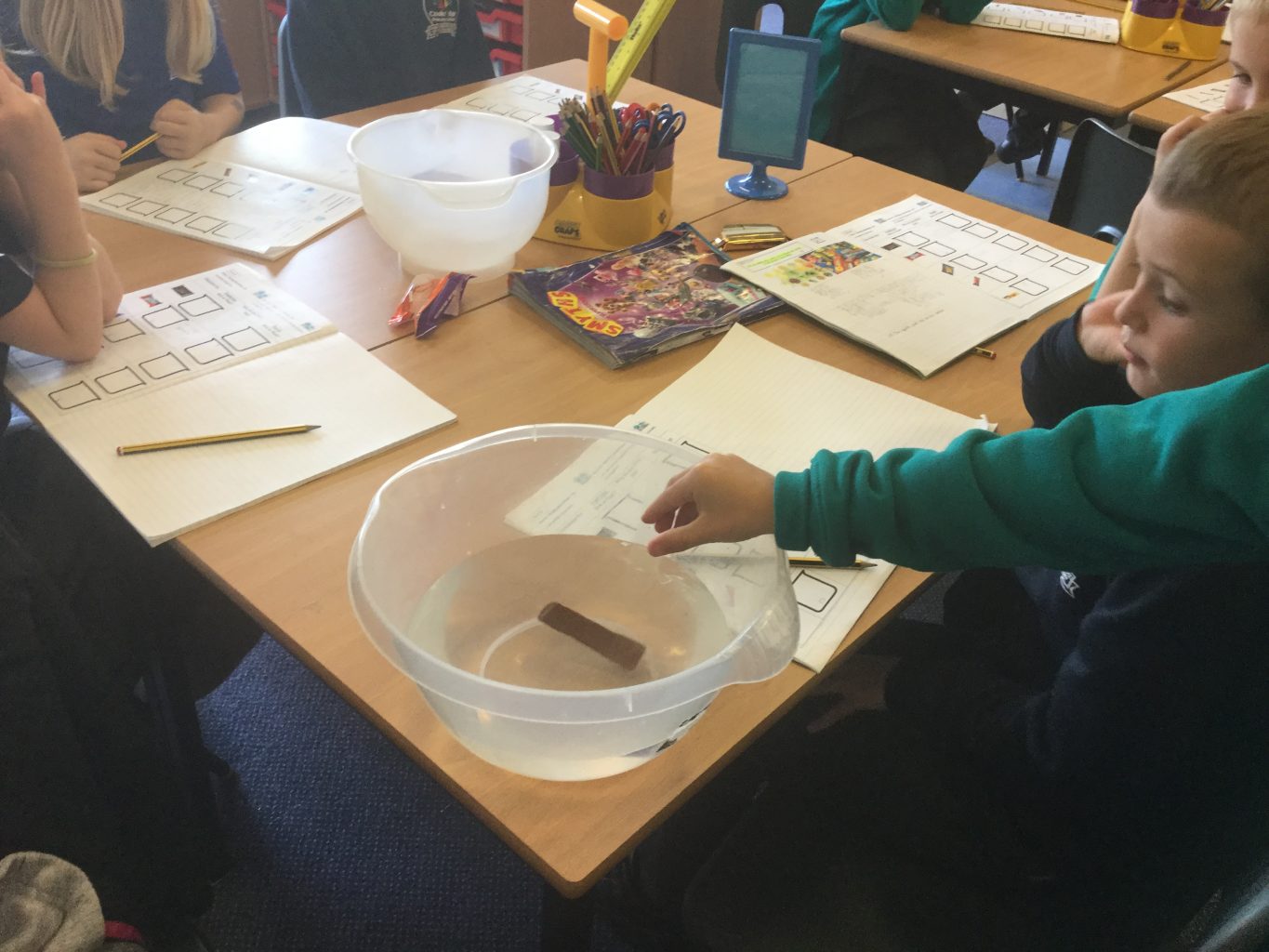 Year 2 have been experimenting with floating and sinking – wondering which chocolate bars float and which ones sink! They made their own predictions, thought about how to make it a fair test and then used their results to verbally give a conclusion.