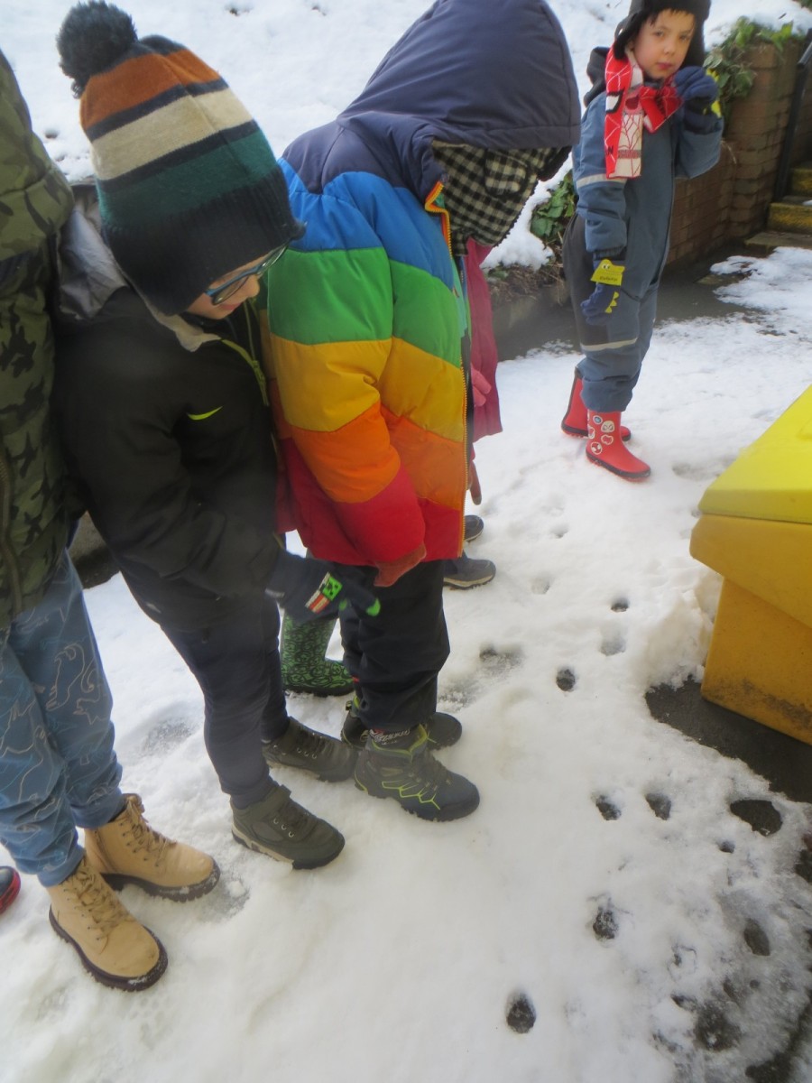 Key Stage One pupils took advantage of the icy and snowy conditions to go on a winter walk around the school grounds. They quickly discovered lots of animal footprints so instantly turned into detectives! We found and tracked footprints, counting their toes, movement patterns and described the features of the feet. The children could identify when an animal had jumped, or where a bird had landed and had taken off again as well as spotting animal entry and exit points around the school field. We worked out we had foxes, rats and squirrels as well as a host of birds. Well done KS1!