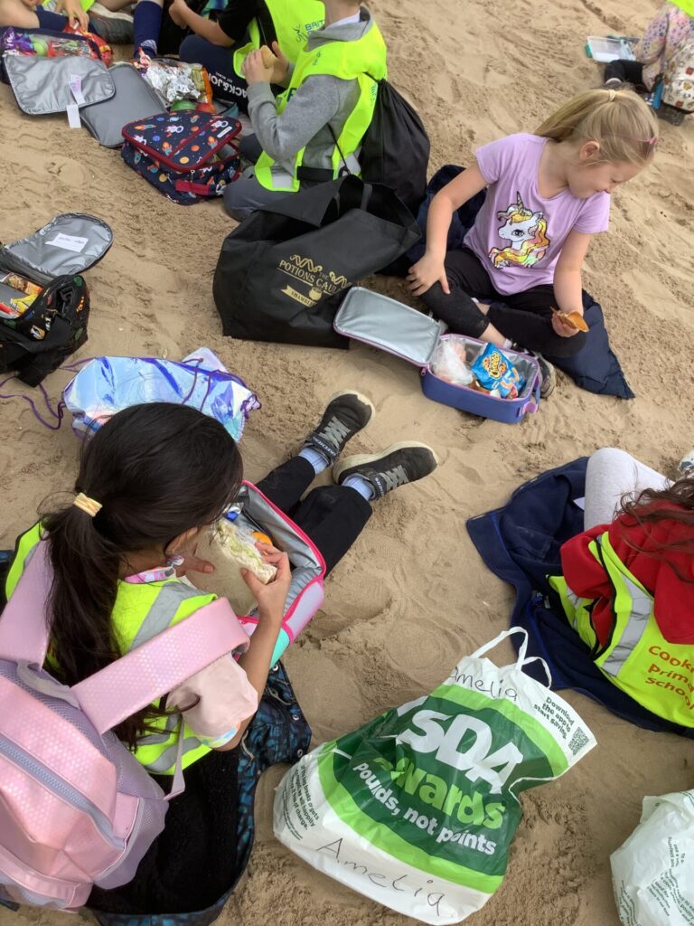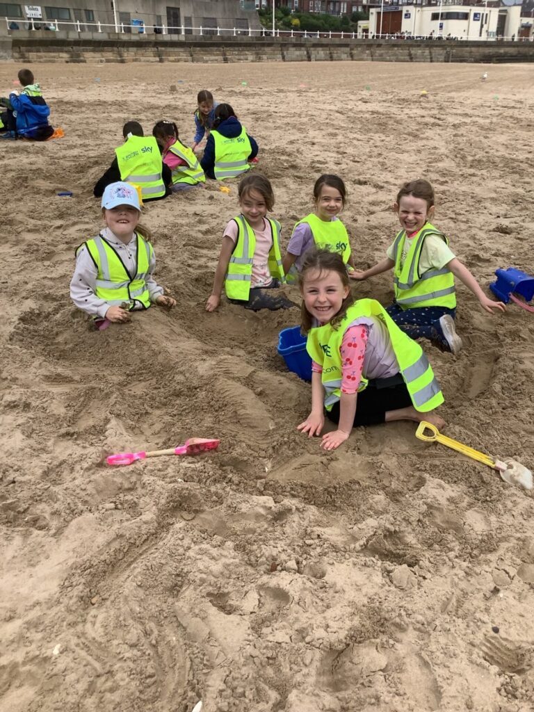 As soon as we arrived in Bridlington, we were already hungry so we immediately had some lunch whilst sitting on the golden sand, enjoying the view of the sea. Then, we played in the sand, burying our friends and becoming mermaids.