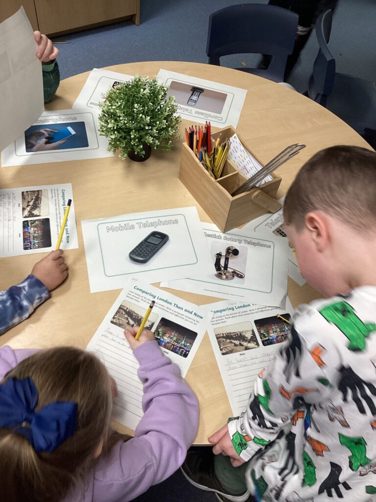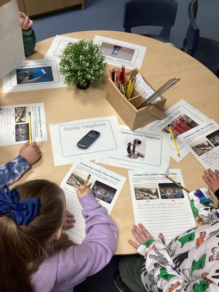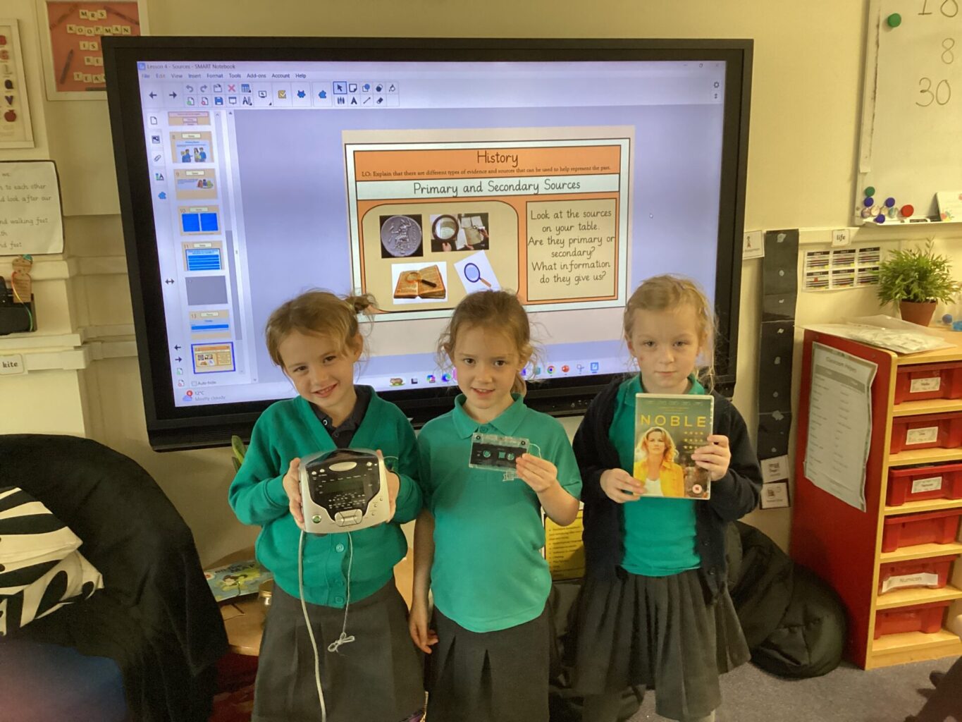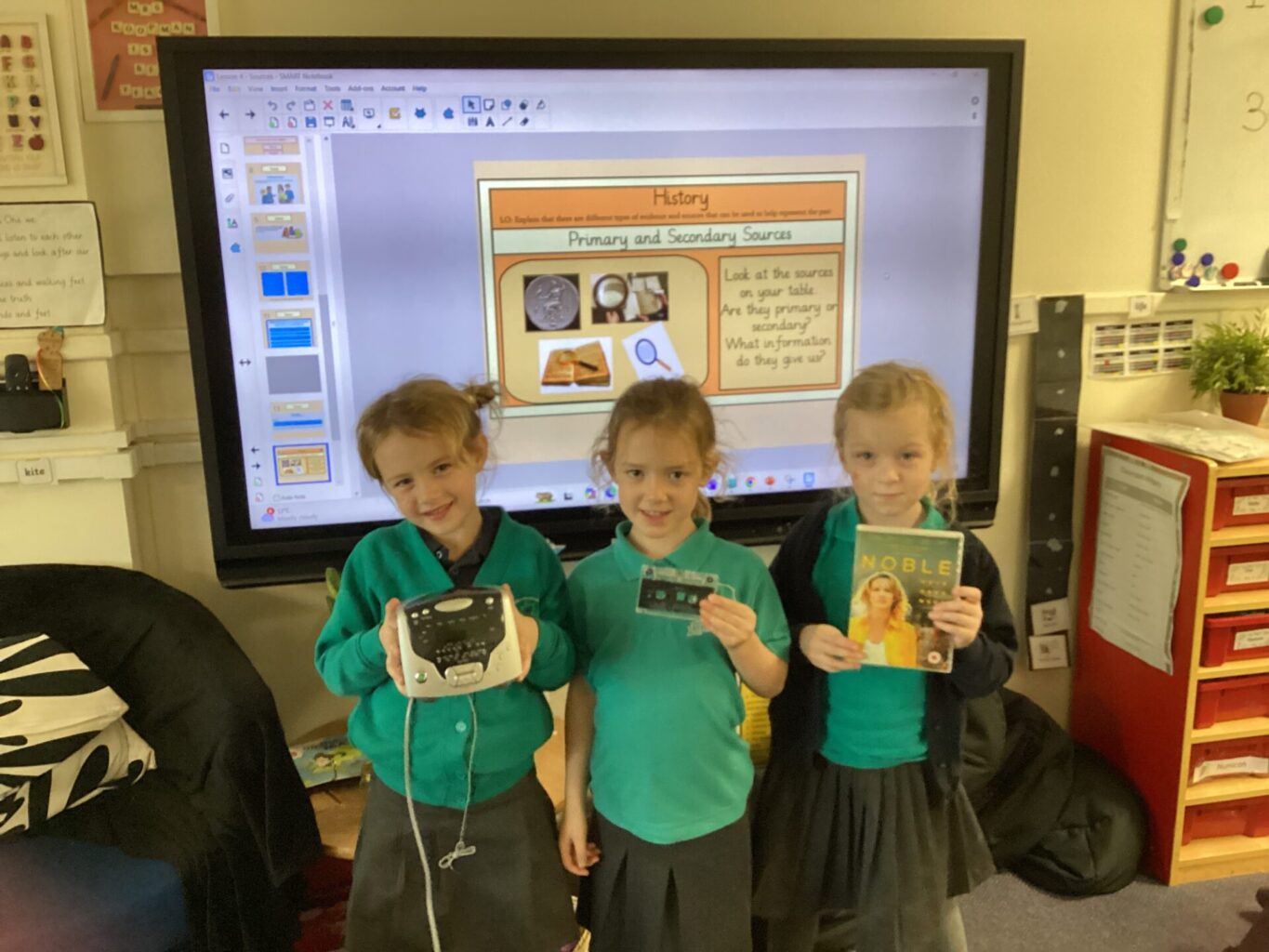 We had an exciting history lesson this week in KS1! We learnt all about primary and secondary sources that can teach us all about the past. Our teachers brought in some very special objects such as typewriters, keyrings from the 1960s and even tape recorders! We were very fascinated by these items as many of us had not seen them before. We also looked at some photographs from the past that allowed us to see how much telephones had changed over the years!