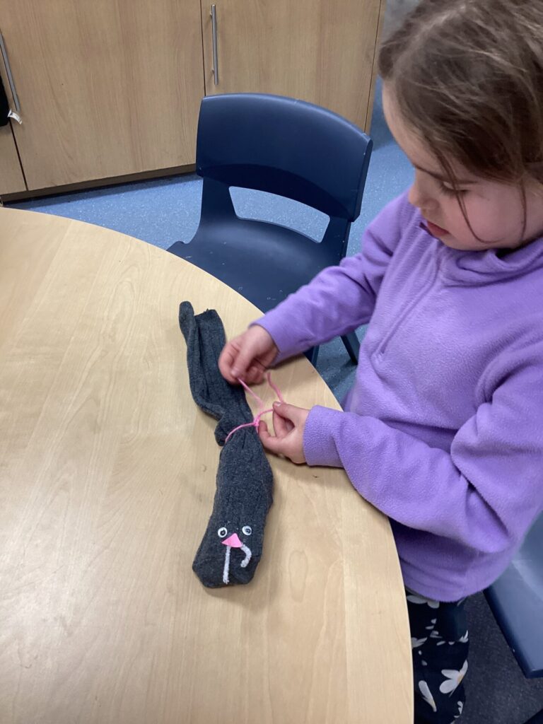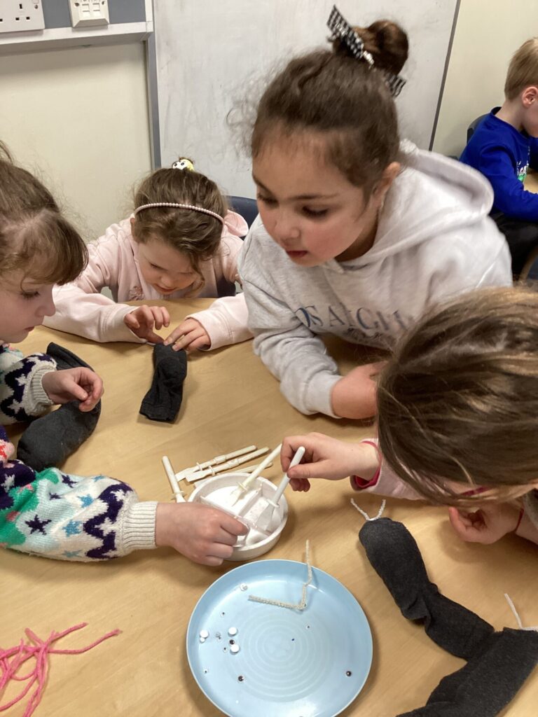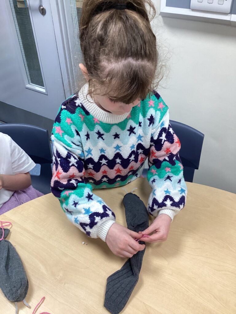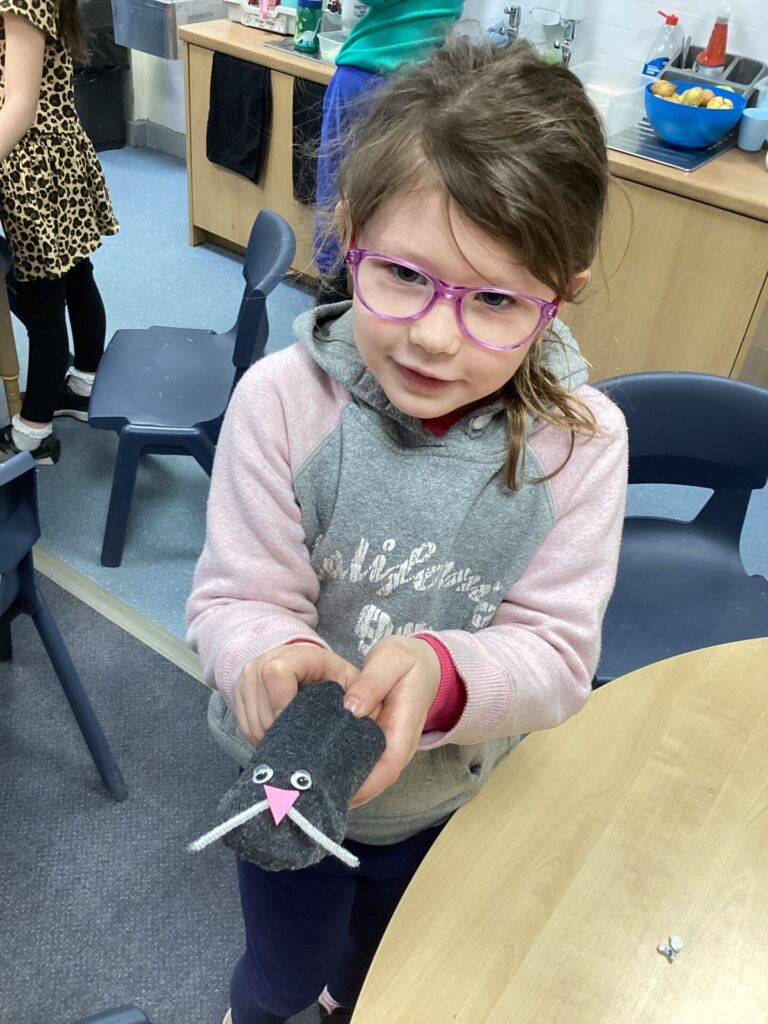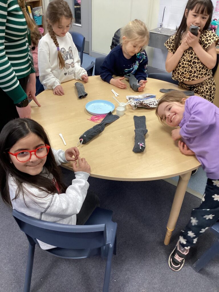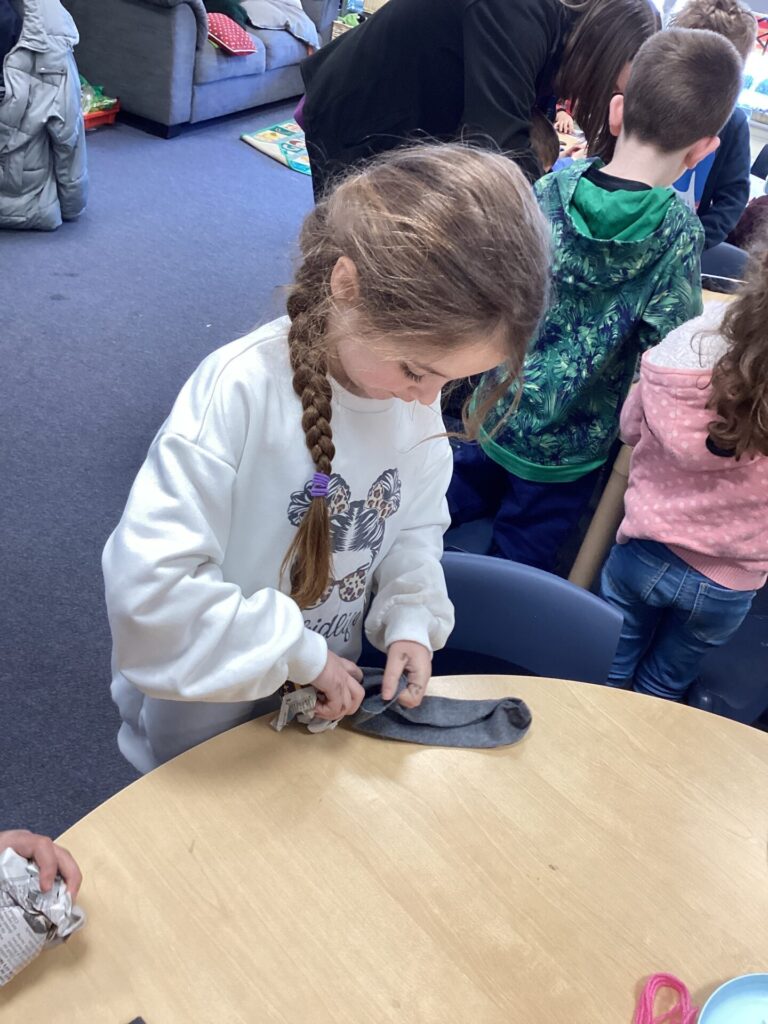 We decided to craft our own rats! We did this by creating 3D bodies using socks and newspaper and then adding whiskers, eyes and a tail. To put the tail on, we all learnt how to tie a knot!