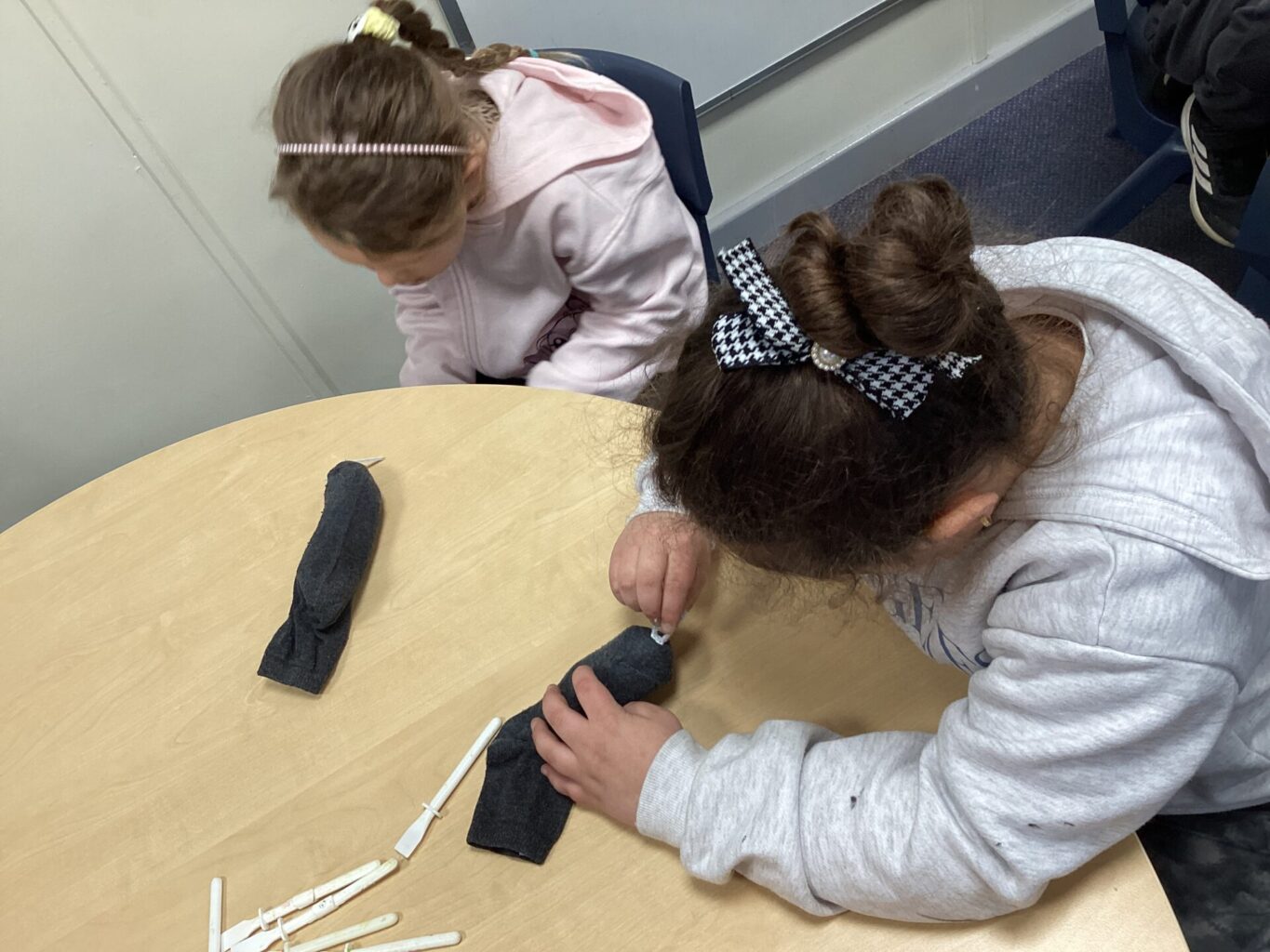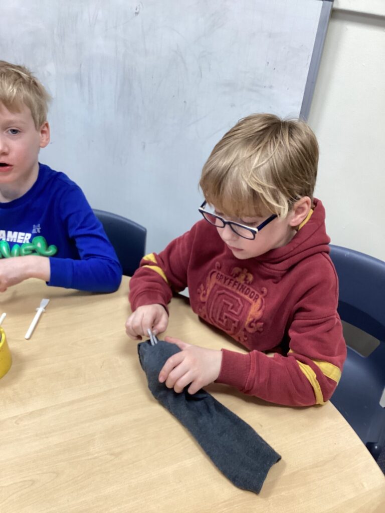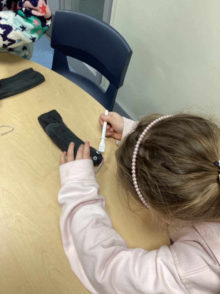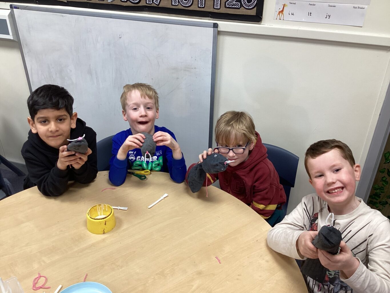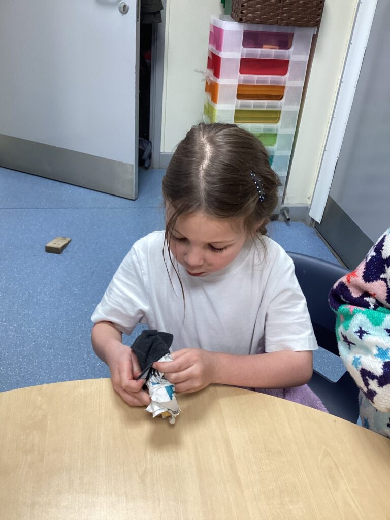 We decided to craft our own rats! We did this by creating 3D bodies using socks and newspaper and then adding whiskers, eyes and a tail. To put the tail on, we all learnt how to tie a knot!