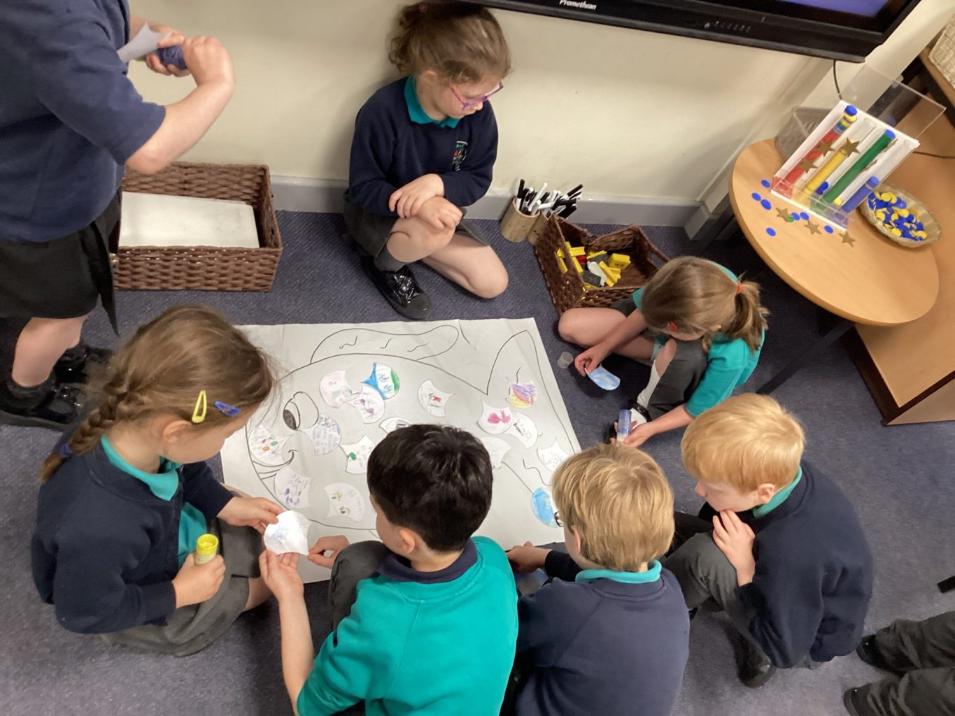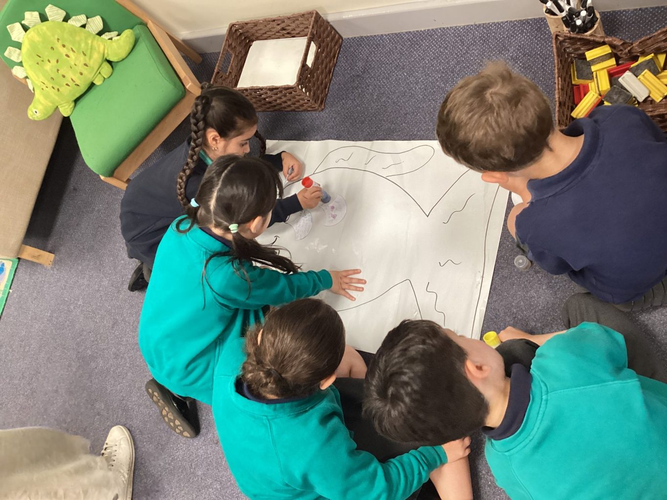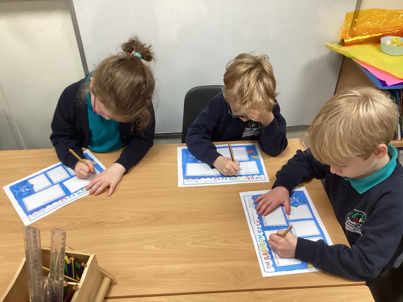We played lots of team games and completed some team challenges. Miss Devine read us lots of stories but we especially looked at ‘The Rainbow Fish’. We crafted our own special fish, re-told the story and listened to an under the sea ‘Now > Press > Play’.